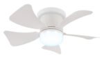 Stropni ventilator HINES kombinuje moderan dizajn s praktičnom funkcionalnošću i unosi dašak svježine u vaš dom. Sa svojim elegantnim, zaobljenim dizajnom i pet bijelih lopatica, ventilator osigurava ravnomjernu cirkulaciju zraka i stvara ugodnu temperaturu u prostoriji. Tijelo izrađeno od mat bijelog metala i plastike savršeno se uklapa u svaki enterijer, dok sjenilo od opalne plastike pruža blago i nezasljepljujuće svjetlo. Priloženi daljinski upravljač omogućava praktično upravljanje ventilatorom i prigušivom LED rasvjetom. Ventilator HINES nudi svjetlosni intenzitet od 800 lumena, a temperatura boje može se fleksibilno podesiti od tople 2700 K do hladne 6500 K. Boje svjetla se mogu fiksirati kako bi se postigla željena atmosfera u prostoriji. HINES stropni ventilator objedinjuje stilski dizajn i naprednu tehnologiju za maksimalan komfor.