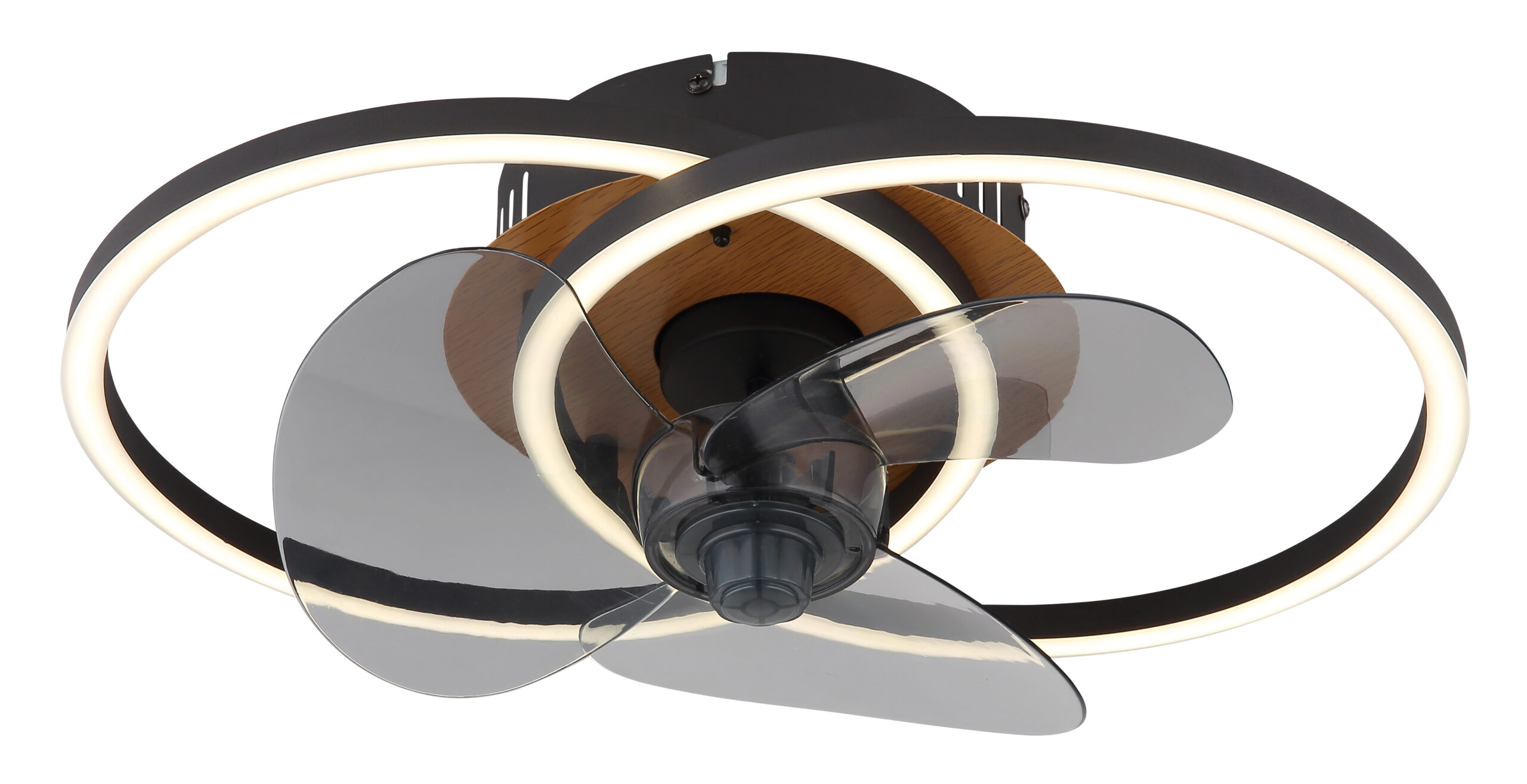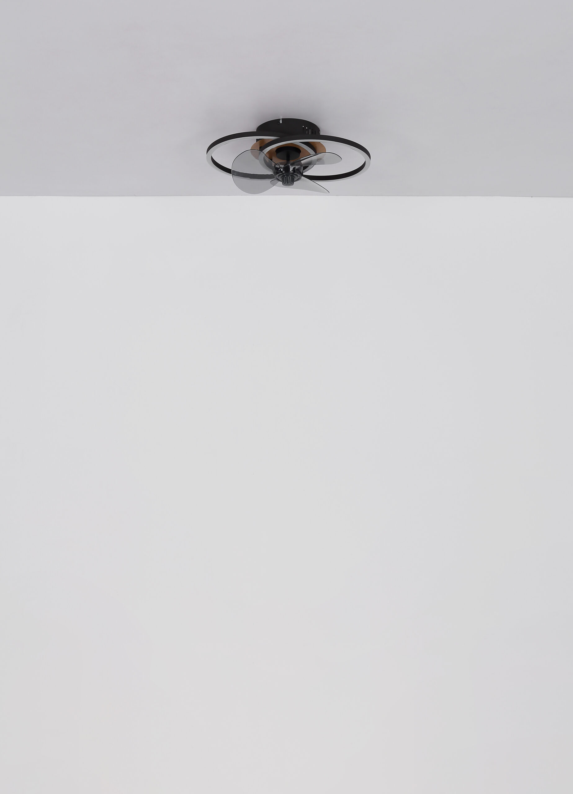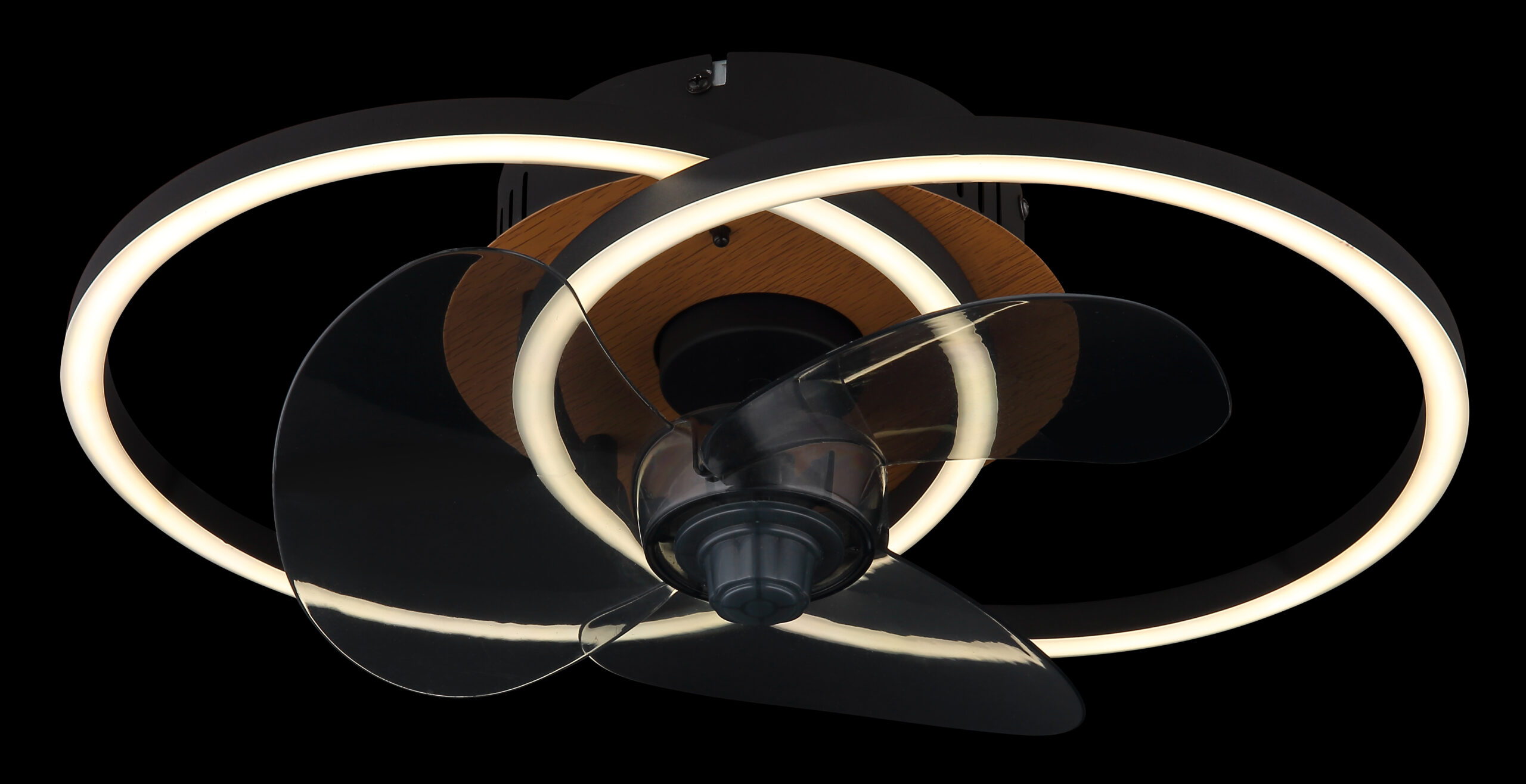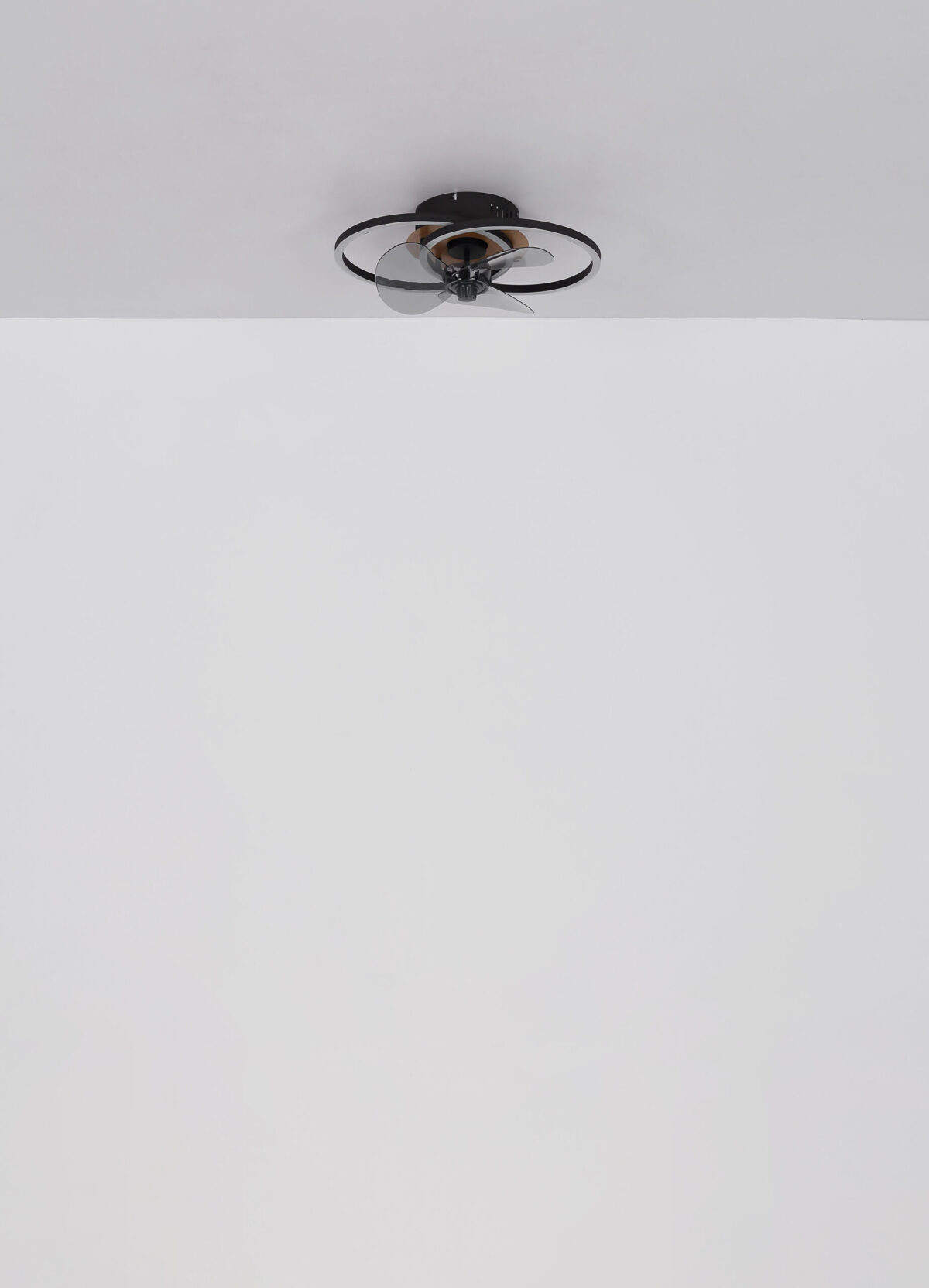 Plafonski ventilator u crnom mat metalu, izgledu tamnog drveta i aluminijuma kombinuje eleganciju s funkcionalnošću. Krila izrađena od opalne plastike i dimljenog ABS materijala osiguravaju optimalnu cirkulaciju vazduha i hlađenje u svakoj prostoriji.