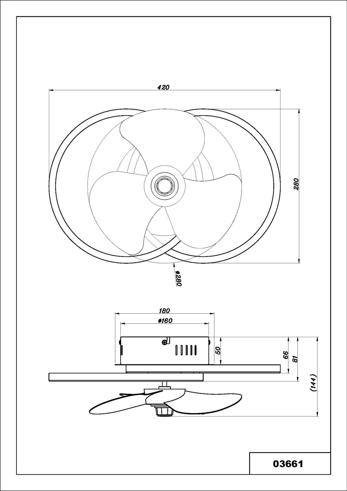 Tajmer i daljinski upravljač s uključenim baterijama (2x AAA) omogućavaju praktično upravljanje. Maksimalna snaga motora iznosi 15W. S dimenzijama od 420x280x144 mm i prečnikom krila od 28 cm, ovaj plafonski ventilator savršeno se uklapa u svaku prostoriju.