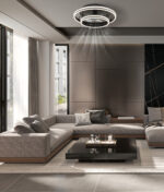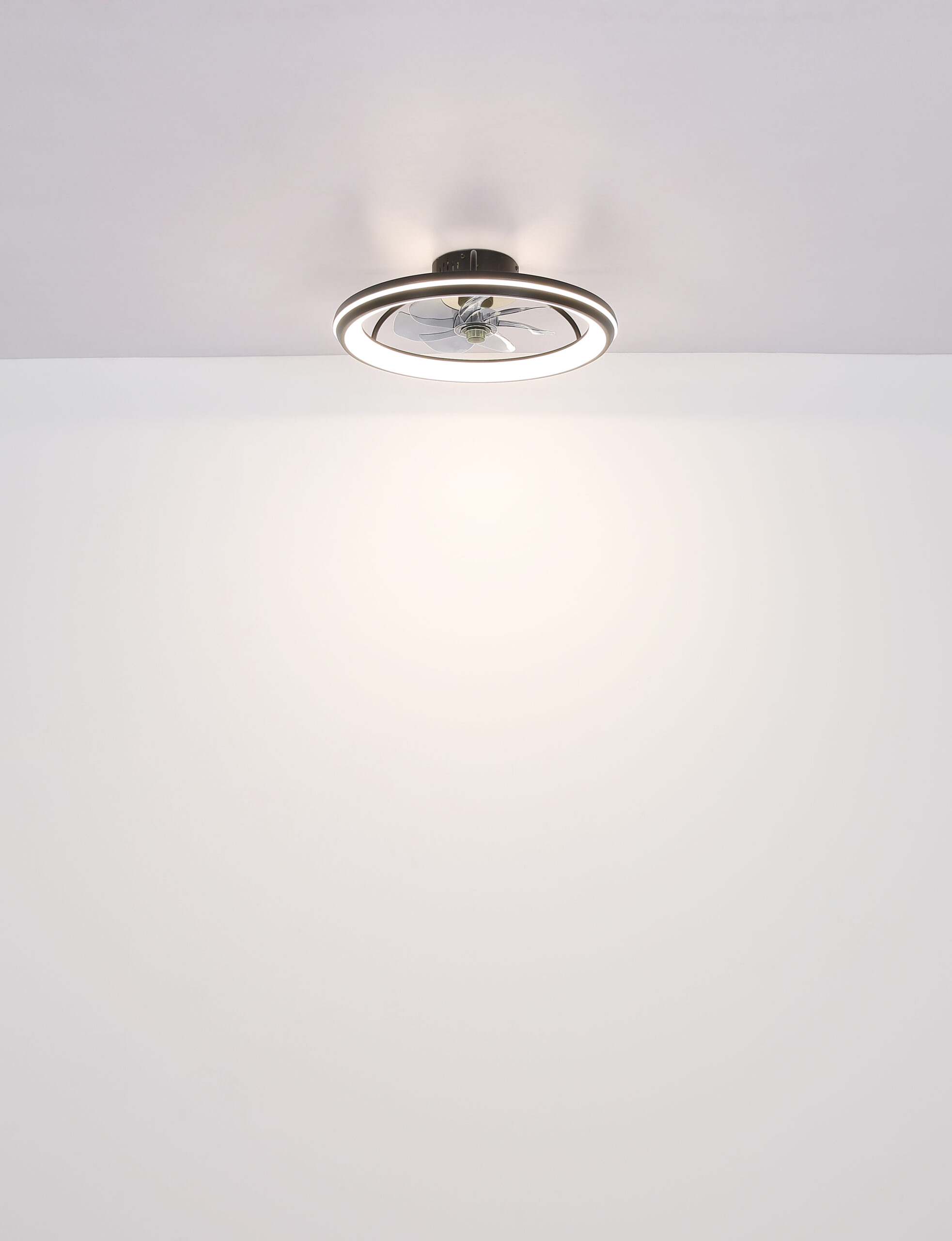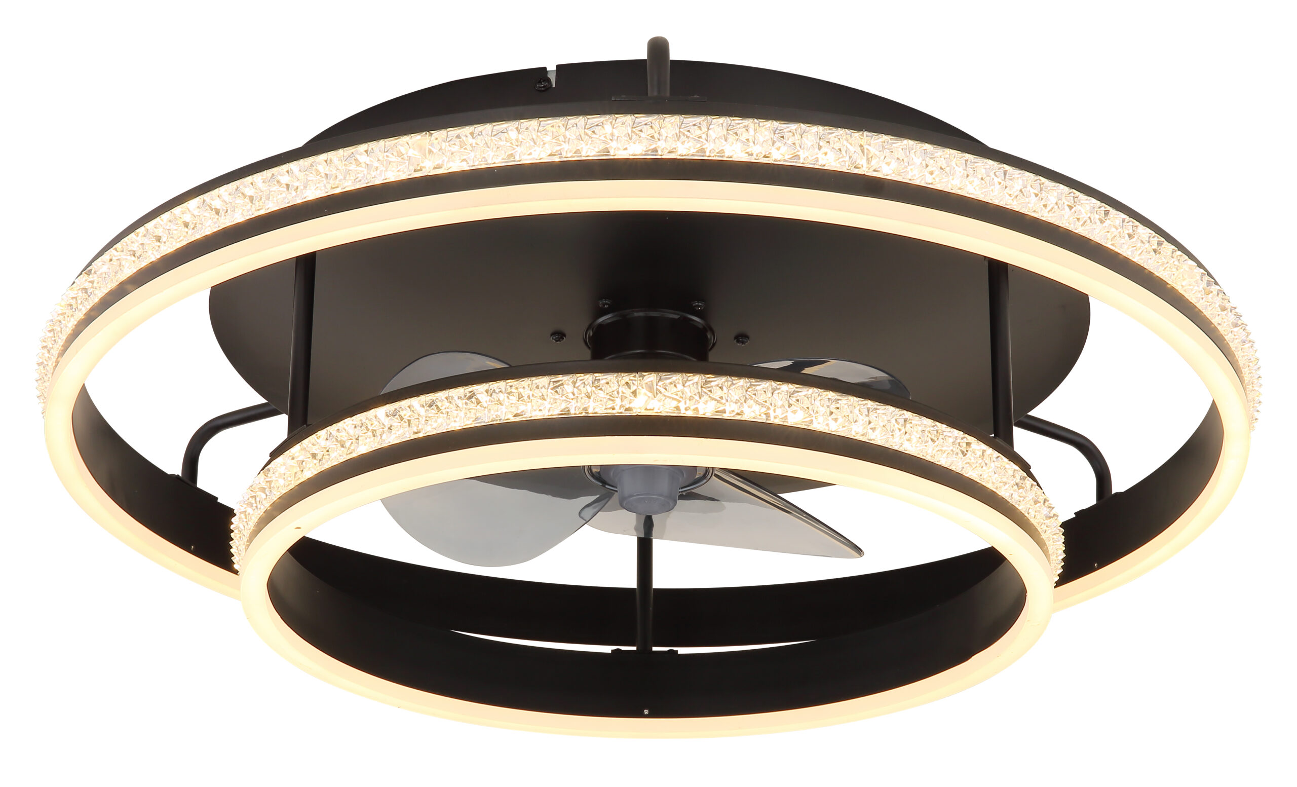 Ventilator KENDALL je luksuzan i sofisticiran plafonski ventilator koji će vašim prostorijama pružiti impresivno osvjetljenje. Sa svojim okruglim tijelom od crno lakiranog metala i dva prstena dekorativnih kristala postavljenih jedan iznad drugog, elegantno grupisanih oko tri krilca, unosi ekstravagantan i glamurozan izgled u prostor. Ventilator KENDALL dolazi s daljinskim upravljačem koji omogućava kontrolu i podešavanje osvjetljenja. Također je prigušiv i nudi razne postavke boje, uključujući mogućnost fiksiranja boja i memorijsku funkciju. Može se koristiti i kao noćno svjetlo pri smanjenom intenzitetu. Sa snagom osvjetljenja od 2000 lumena i temperaturnim rasponom boje svjetla (CCT) od 3000K do 6000K, nudi raznovrsne mogućnosti osvjetljenja.