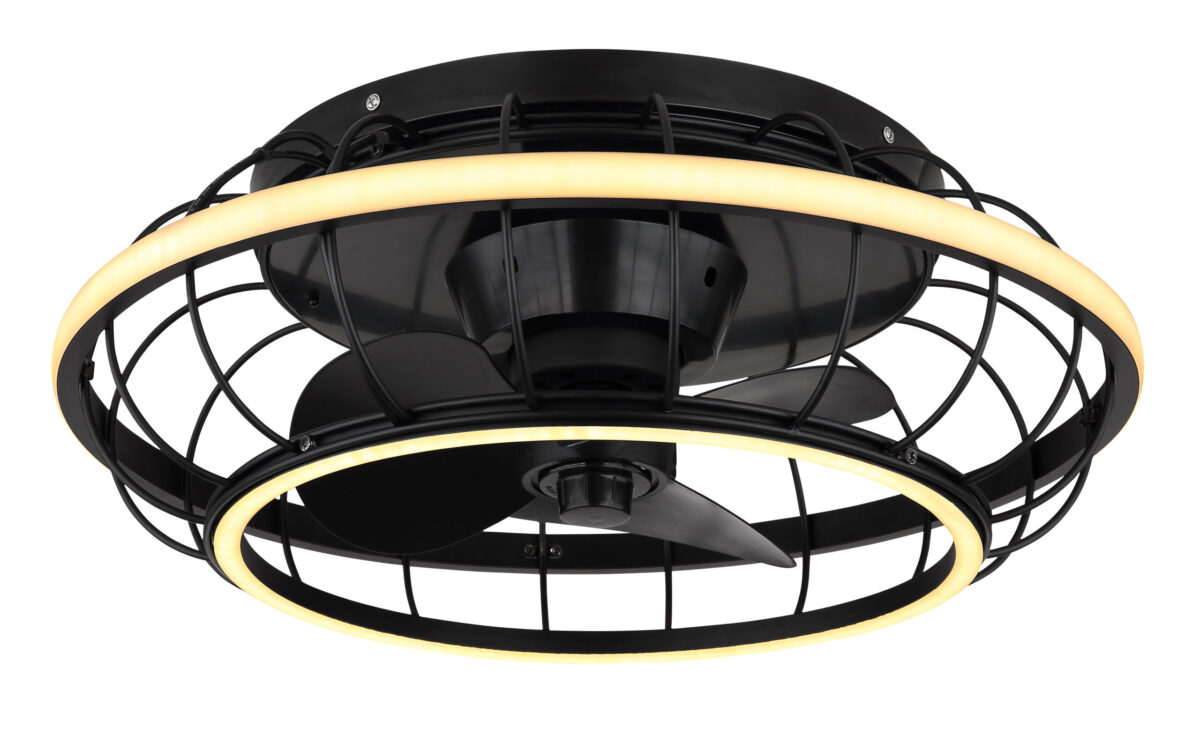 Ovaj odlični stropni ventilator oduševljava svojim lijepim dizajnom i funkcionalnošću. Izrađen od crnog metala i opremljen integrisanim LED panelima, ovaj ventilator pruža svjetlost od toplobijele (2700 Kelvina) do hladnobijele (6500 Kelvina), a moguće ga je prigušiti i fiksirati na željene vrijednosti. U kompletu dolazi daljinski upravljač pomoću kojeg možete koristiti funkcije memorije i tajmera. Osim toga, ventilator se može rotirati radi boljeg efekta hlađenja. Postavite stilske akcente u vašem prostoru.