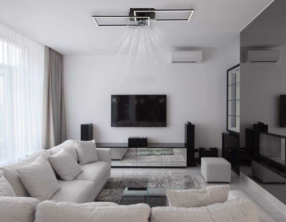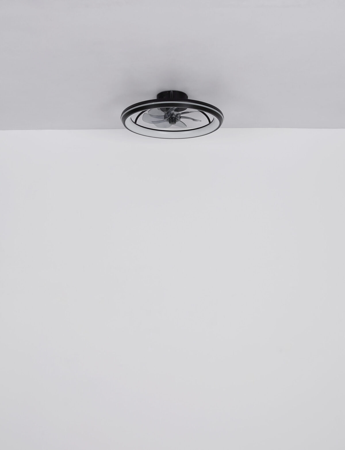 Otkrijte inovativni ventilator za plafon TATJANA, koji vaše prostorije oprema jedinstvenom kombinacijom osvjetljenja i ventilacije. TATJANA se sastoji od pravokutnog tijela izrađenog od crnog, mat laka metala, na koje su poredane dvije druge pravokutne forme jedna pored druge. Ventilator u sredini tijela osigurava ugodan protok zraka. TATJANA je multifunkcionalni uređaj koji ne samo da osvjetljava, već može i ventilirati. Osvjetljenje je podesivo po intenzitetu i može se podešavati u različitim bojama zahvaljujući memorijskoj funkciji. Noćni režim pruža blagu svjetlost tokom noći. Izlaz od 1500 lumena osigurava dovoljnu svjetlinu. Temperatura boje može se birati između 3000K i 6000K kako bi se stvorio odgovarajući ugođaj. TATJANA je idealna za prostorije kojima je potrebna jedinstvena atmosfera i poseban osvjetljenje.
