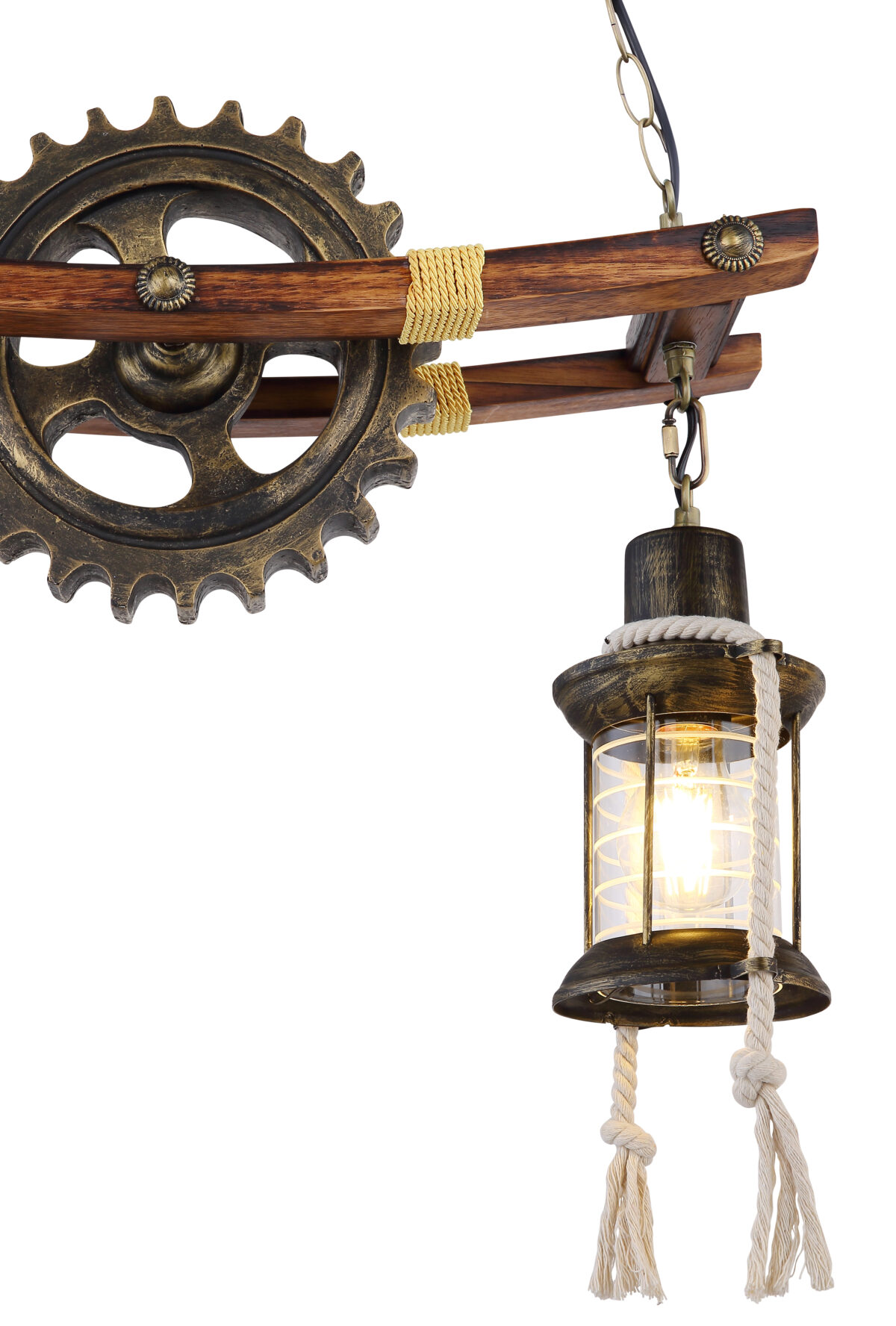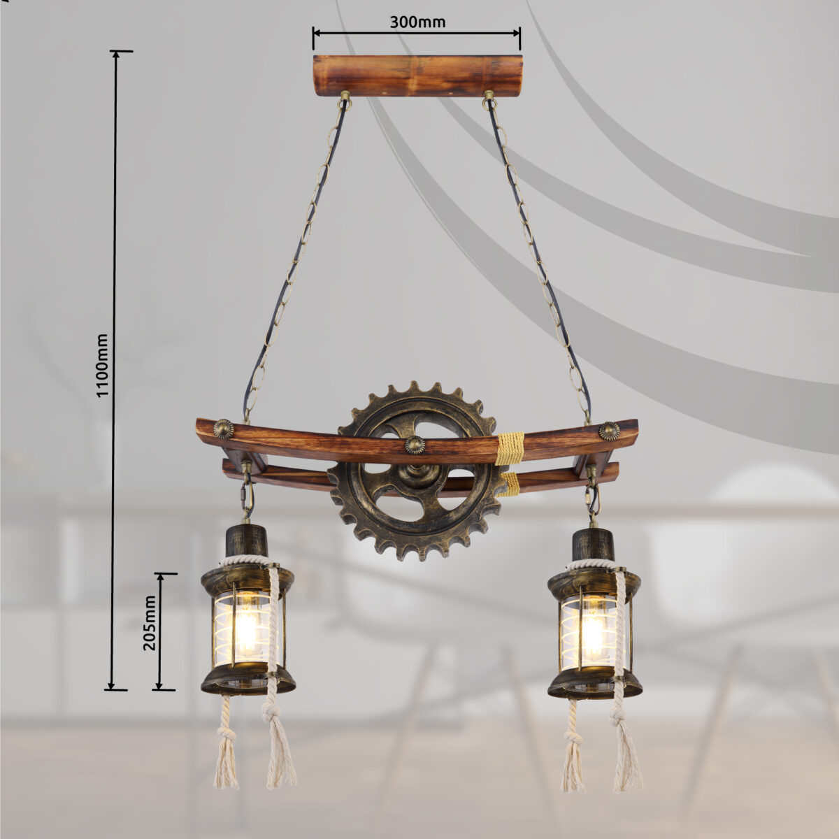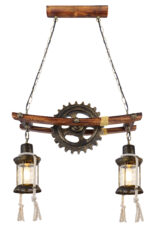 Pirati s Kariba šalju vam pozdrave, ova viseća lampa sa opremom i brodskim fenjerima na zakrivljenom drvenom okviru i originalnim detaljima od konoplje očarava vašu trpezariju ili kućni bar sa karipskim štihom.