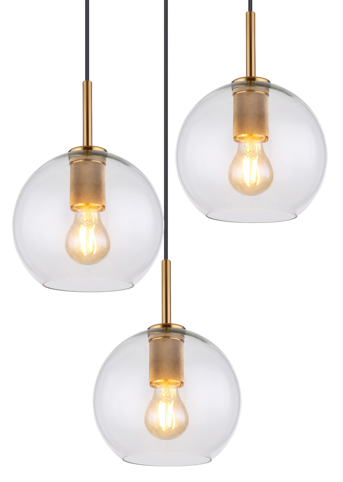 Ova kružna viseća lampa serije Adara (ø 47 cm) od metala u boji mesinga odlična je za vaš dnevni boravak ili trpezariju. Zahvaljujući užadima, tri staklene kugle se mogu podesiti po visini do maksimalno 1,2 m. Osim toga, ove mogu biti opremljene sijalicama E27 po vašem izboru. Ovo vam omogućava da pojedinačno odredite boju i svjetlinu svjetla. Uz više članaka iz serije Adara možete upotpuniti cjelokupnu sliku u vašem zatvorenom prostoru.