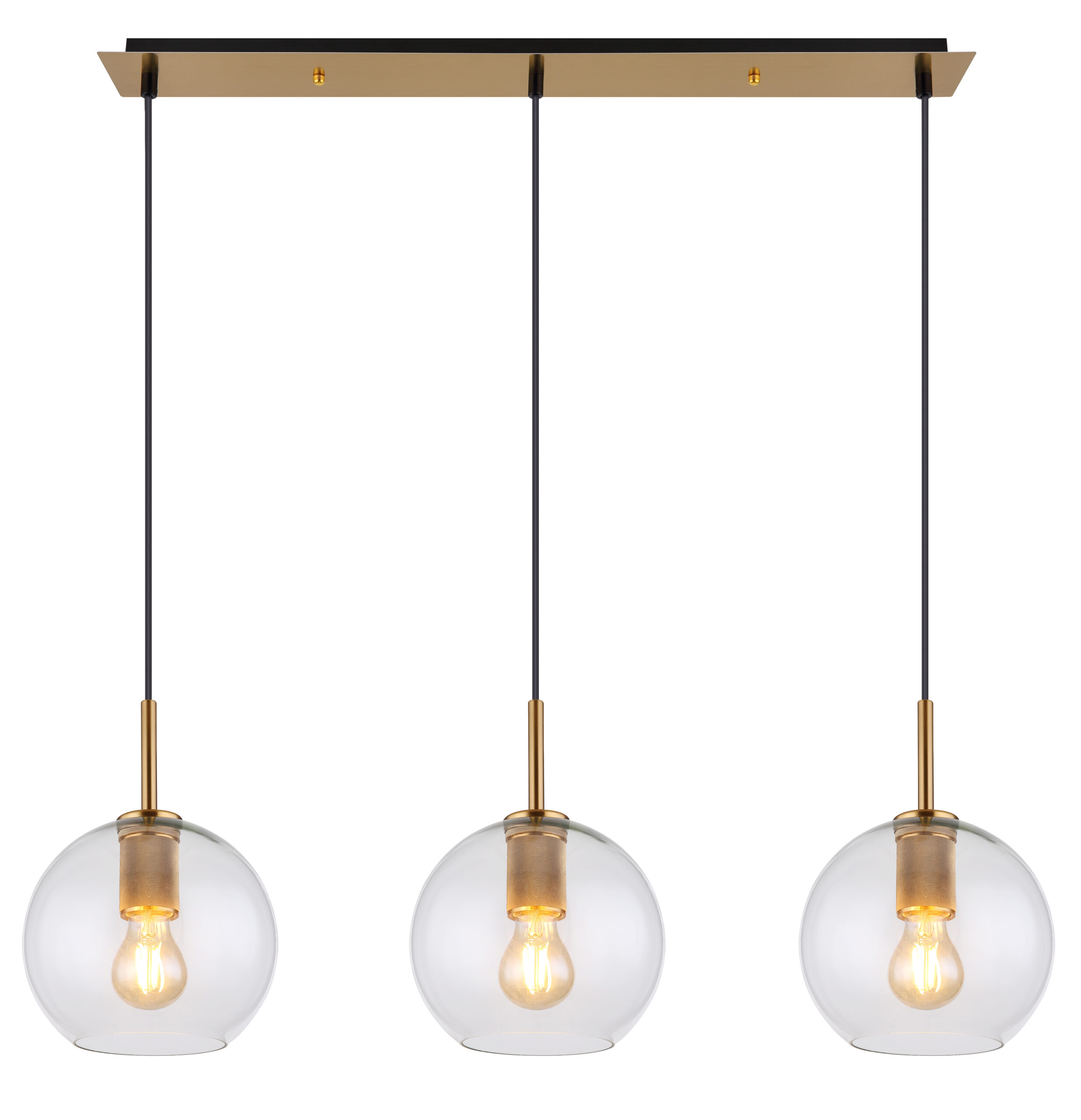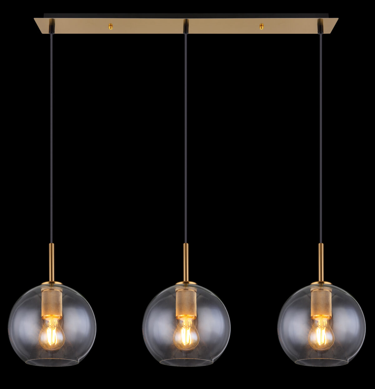 Zbog svog izduženog oblika, viseća lampa serije Adara od metala boje mesinga može se odlično montirati e.B. iznad trpezarijskog stola, koji tada dobija ujednačeno osvetljenje. Viseća lampa dužine 90 cm može biti opremljena sa tri E27 sijalice po vašem izboru, koje su zatim okružene sfernim, prozirnim staklima. Ovo vam omogućava da pojedinačno odredite boju i svjetlinu svjetla. Osim toga, staklene kuglice se mogu podesiti na maksimalnu visinu od 1,2 m uz pomoć užadi. Uz više članaka iz serije Adara možete upotpuniti cjelokupnu sliku u vašem zatvorenom prostoru.