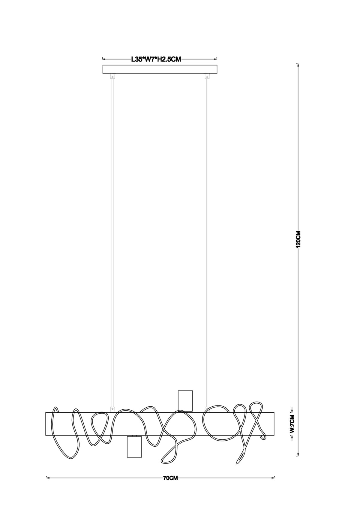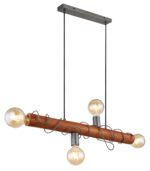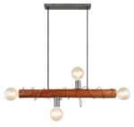 Ova rustikalna viseća lampa iz serije Alice (70×20 cm) upotpunjuje vaš enterijer sa elegantnim izvorom svetlosti. Sastoji se od smeđe drvene šipke koja visi sa stropa na dva kabla i opremljena je sa četiri E27 utičnice, dvije na krajevima i jedna okrenuta prema dolje i naprijed. Možete ih opremiti odgovarajućim lampama po vašem izboru, što vam daje mogućnost da individualno odredite boju svjetla i svjetlinu. Osim toga, štap je omotan crnom metalnom žicom, što također doprinosi savršenom izgledu svjetiljke. Visina viseće lampe može se podesiti do 120 cm tokom ugradnje. Sa ostalim modelima iste serije možete upotpuniti cjelokupnu sliku u svoja četiri zida.
