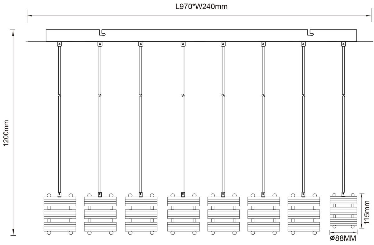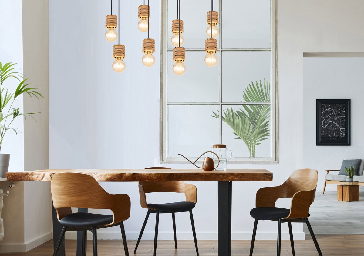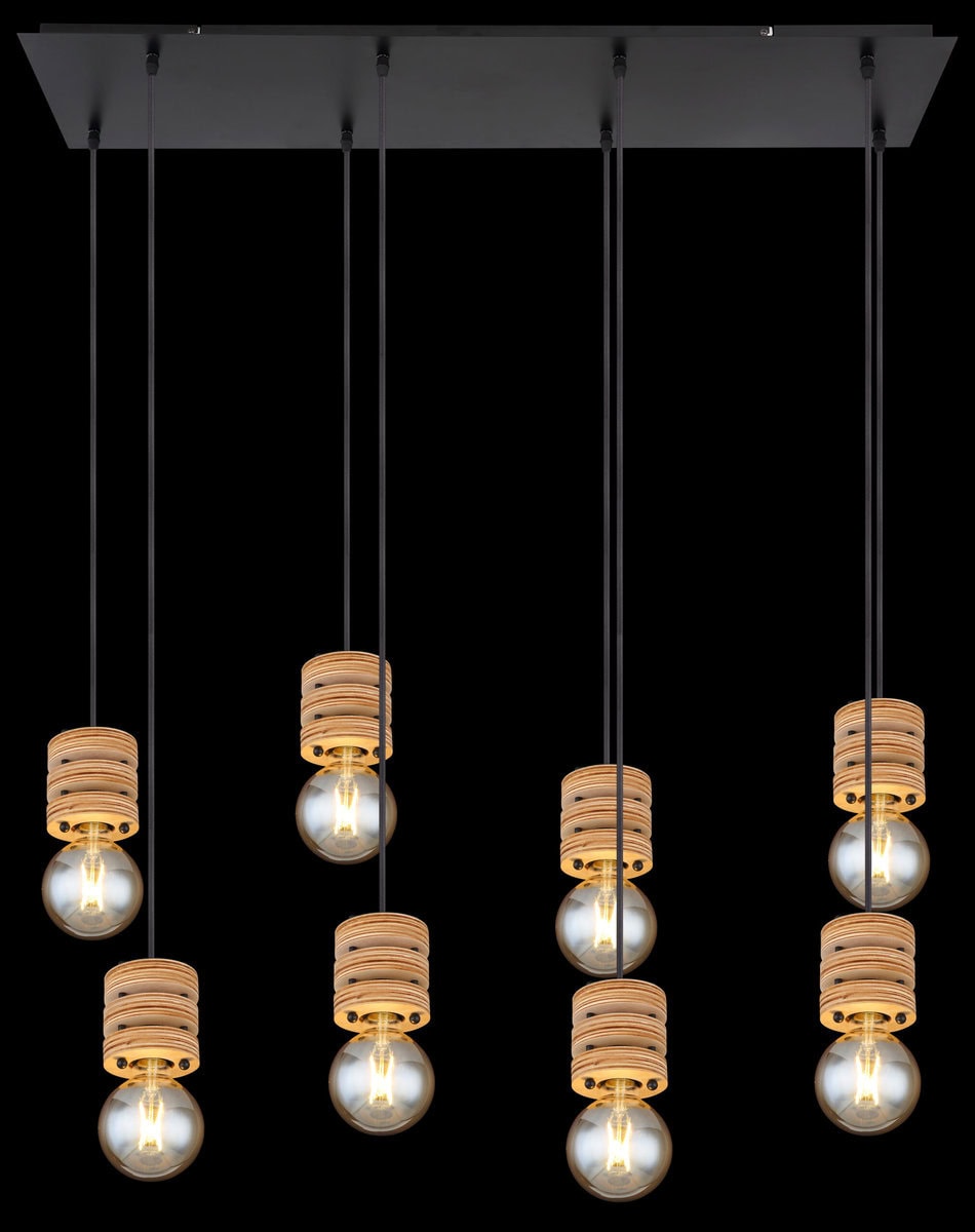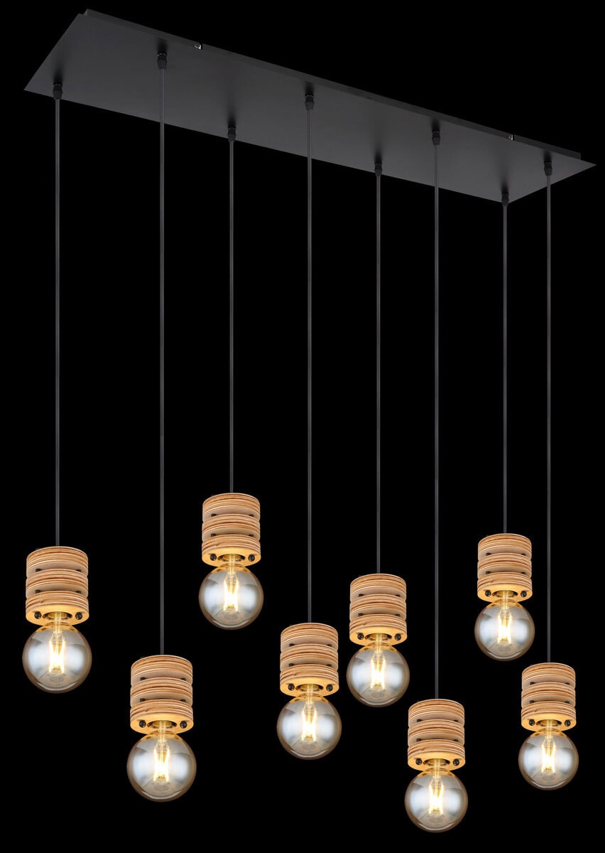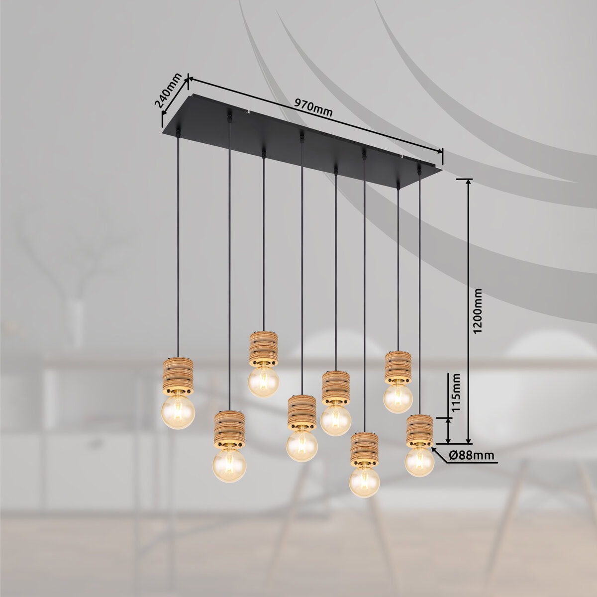 Ova moderna viseća lampa iz serije Angeline (98×24 cm) daje vam pravi štih za vaš dom. Sastoji se od osam E27 utičnica obloženih MDF prstenovima, koji su pričvršćeni na crne kablove. Možete ih opremiti odgovarajućim lampama po vašem izboru, što vam daje mogućnost da individualno odredite boju svjetla i svjetlinu. Osim toga, visina viseće lampe može se podesiti do 120 cm. Sa ostalim modelima iste serije možete upotpuniti cjelokupnu sliku u svom interijeru.