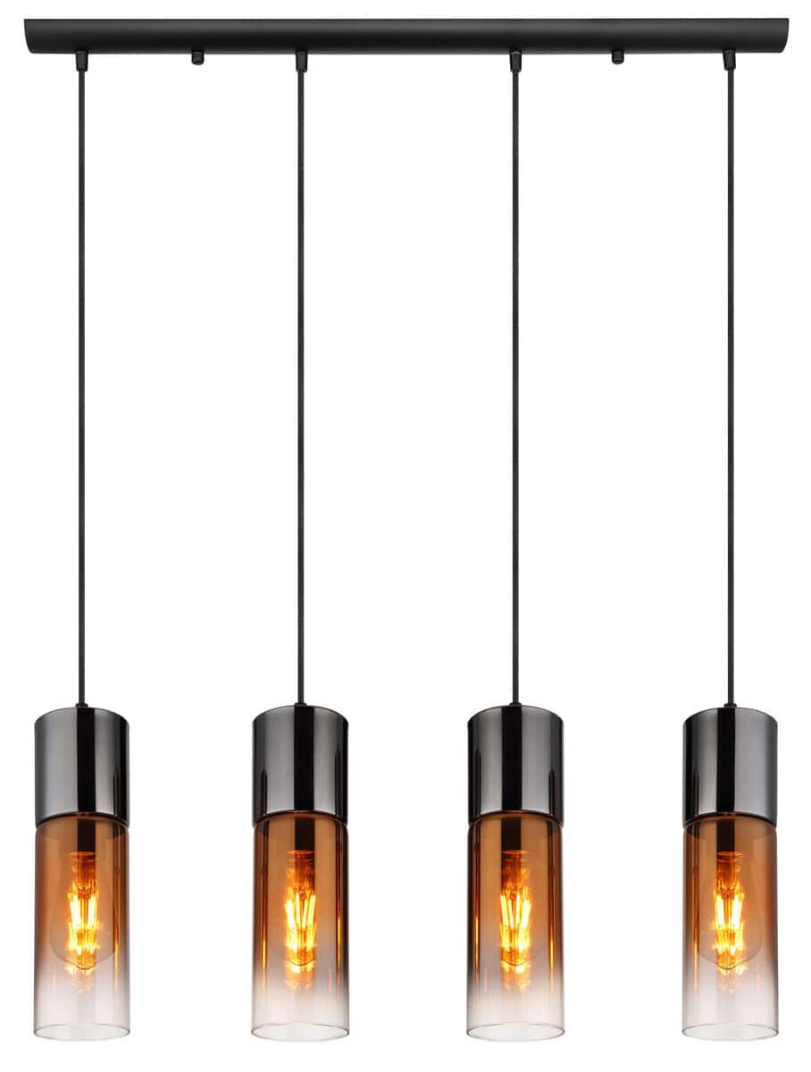 ANNIKA visilica je elegantno dizajnirana visilica koja će sa stilom i svjetlom posjetiti vaše sobe. Lampa ima ravnu stazu na koju su pričvršćene četiri vješalice sa staklenim cilindrima. Crno lakirano metalno kućište daje lampi moderan i bezvremenski izgled. Sjenilo je napravljeno od stakla i nudi razne mogućnosti dizajna: bakrene boje, prozirne ili gradijentne. Rotirajuće vješalice vam omogućavaju da lako prilagodite rasvjetu svojim potrebama. Viseća lampa ANNIKA savršen je dodatak svakoj prostoriji, od modernog dnevnog boravka do elegantne trpezarije.