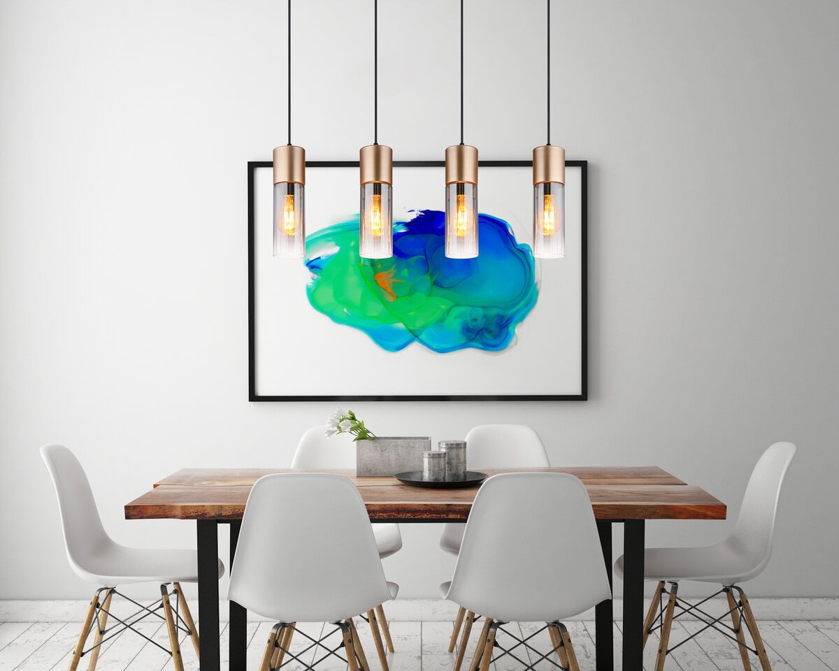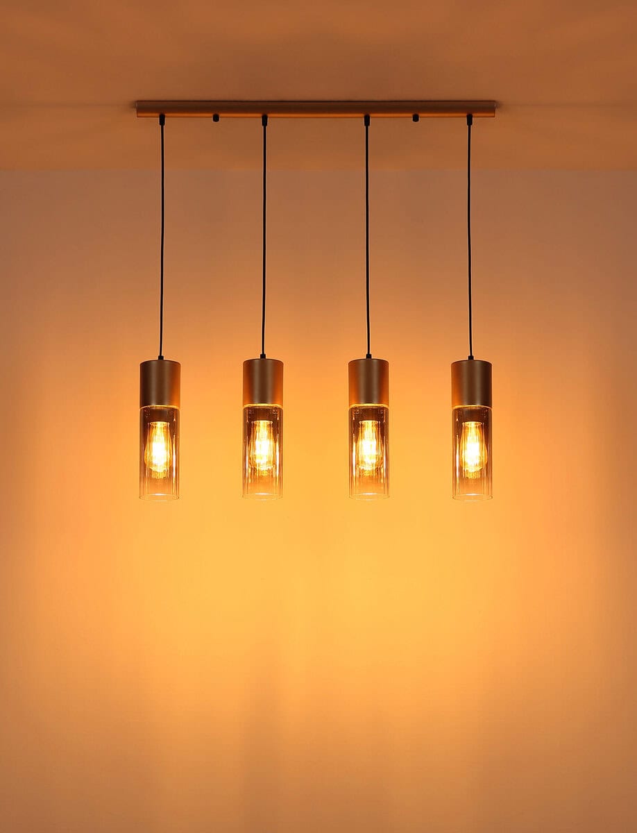 Viseća lampa ANNIKA – moderna elegancija u vašem domu Viseća lampa ANNIKA impresionira svojim jasnim, izduženim dizajnom. Ravna šina od mat metala boje kapućina pruža elegantnu osnovu za četiri cilindrična staklena sjenila, koji pružaju ravnomjerno svjetlo i stvaraju ugodnu atmosferu. Sa dužinom od 800 mm i širinom od 90 mm, lampa se savršeno uklapa u širok raspon veličina prostorija, bilo da se radi o blagovaonici, iznad kuhinjskog ostrva ili kao stilsko akcentno osvetljenje u dnevnoj sobi. E27 grla (nisu uključeni) nude mogućnost odabira sijalice po želji kako biste individualno prilagodili svjetlosno raspoloženje. Viseća lampa ANNIKA je savremeno rješenje za rasvjetu koje impresionira svojim jednostavnim, modernim dizajnom i svestranošću te oplemenjuje svaki dom.