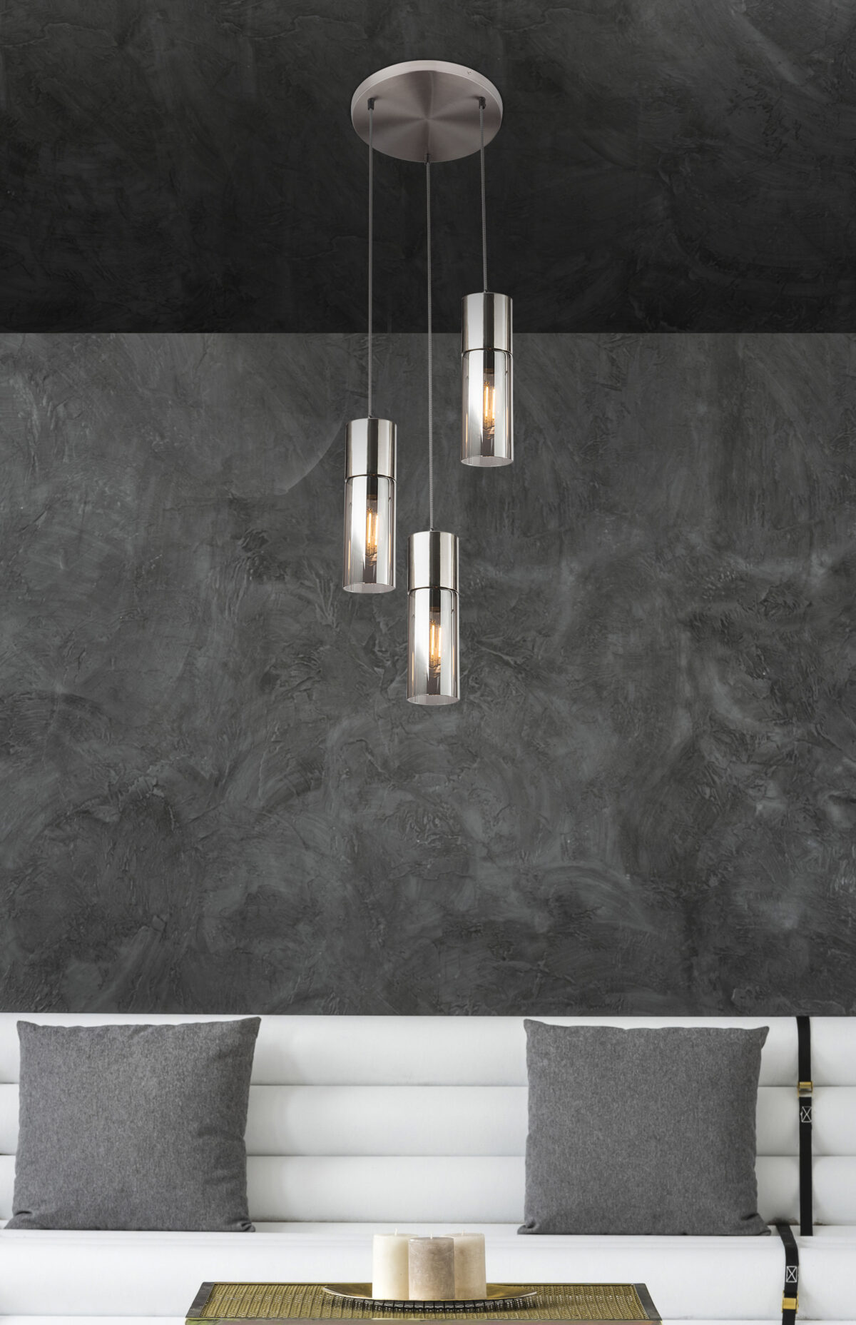 Viseća lampa Annika je atraktivna rasveta u modernim životnim prostorima. Crno-bijeli tekstilni kabel dužine 150 cm pričvršćen je na mali okrugli plafonski nosač od nikl-mat. Na donjem kraju visi uske, elegantne staklene cilindrične zastore. Zbog stakla boje dima, svjetlo izgleda vrlo ugodno toplo i time doprinosi ugodnijoj životnoj atmosferi. Viseća lampa savršeno se uklapa u savremeni stil opremanja i može se kombinovati sa drugim proizvodima iz serije. Zahvaljujući grlima E27, imate mogućnost slobodnog odabira sijalice do maksimalno 25 vati. U zavisnosti od boje i intenziteta svetlosti koju želite da imate. Preporučujemo LED, zbog uštede energije i dugovečnosti. Kombinujte ovu divnu viseću lampu sa ostalim proizvodima iz serije Annika i dopustite da budete očarani elegantnim dizajnom.