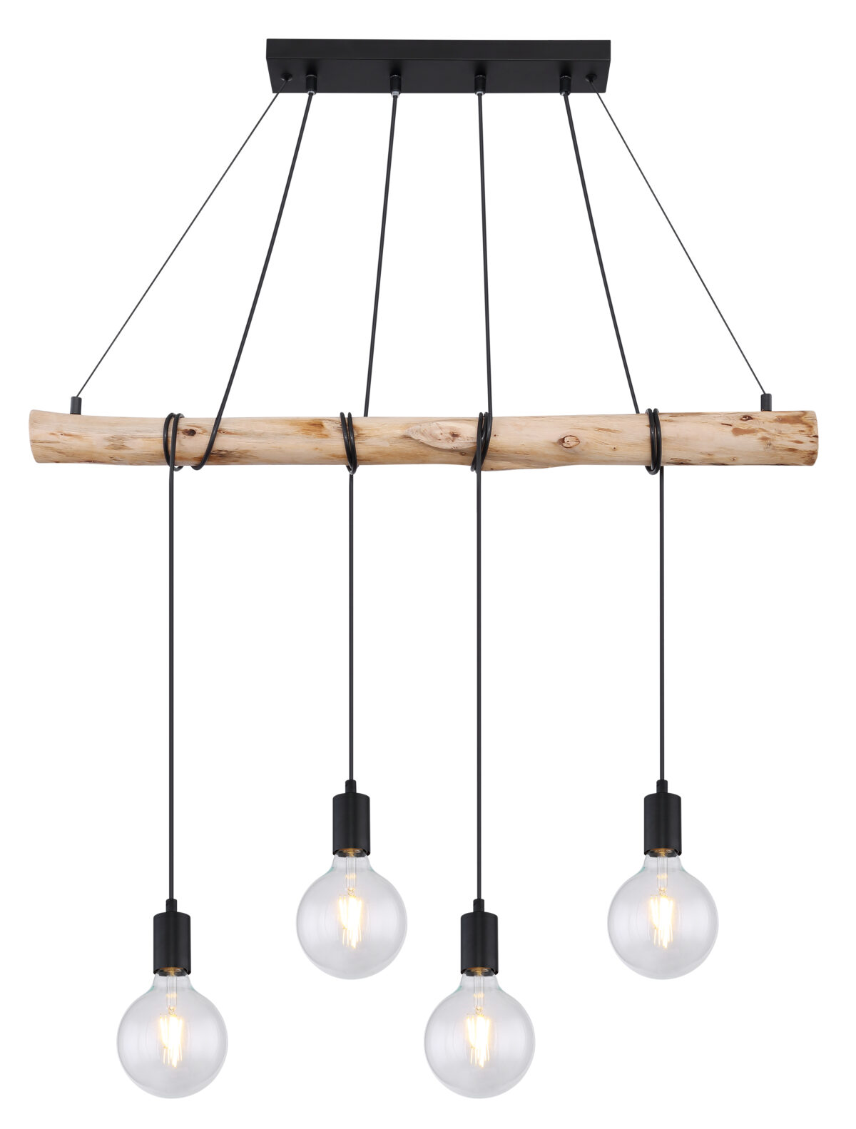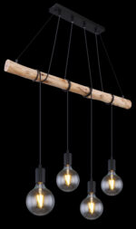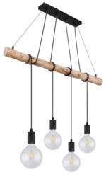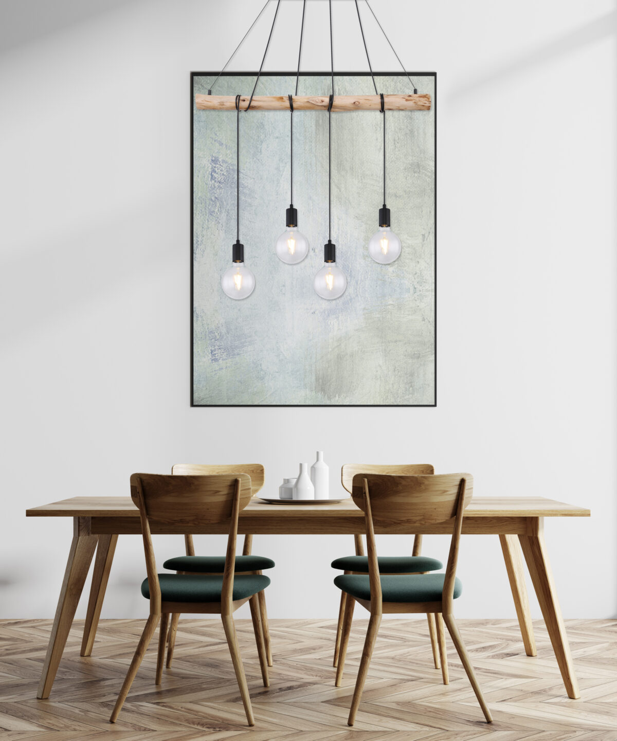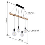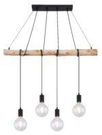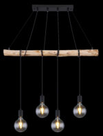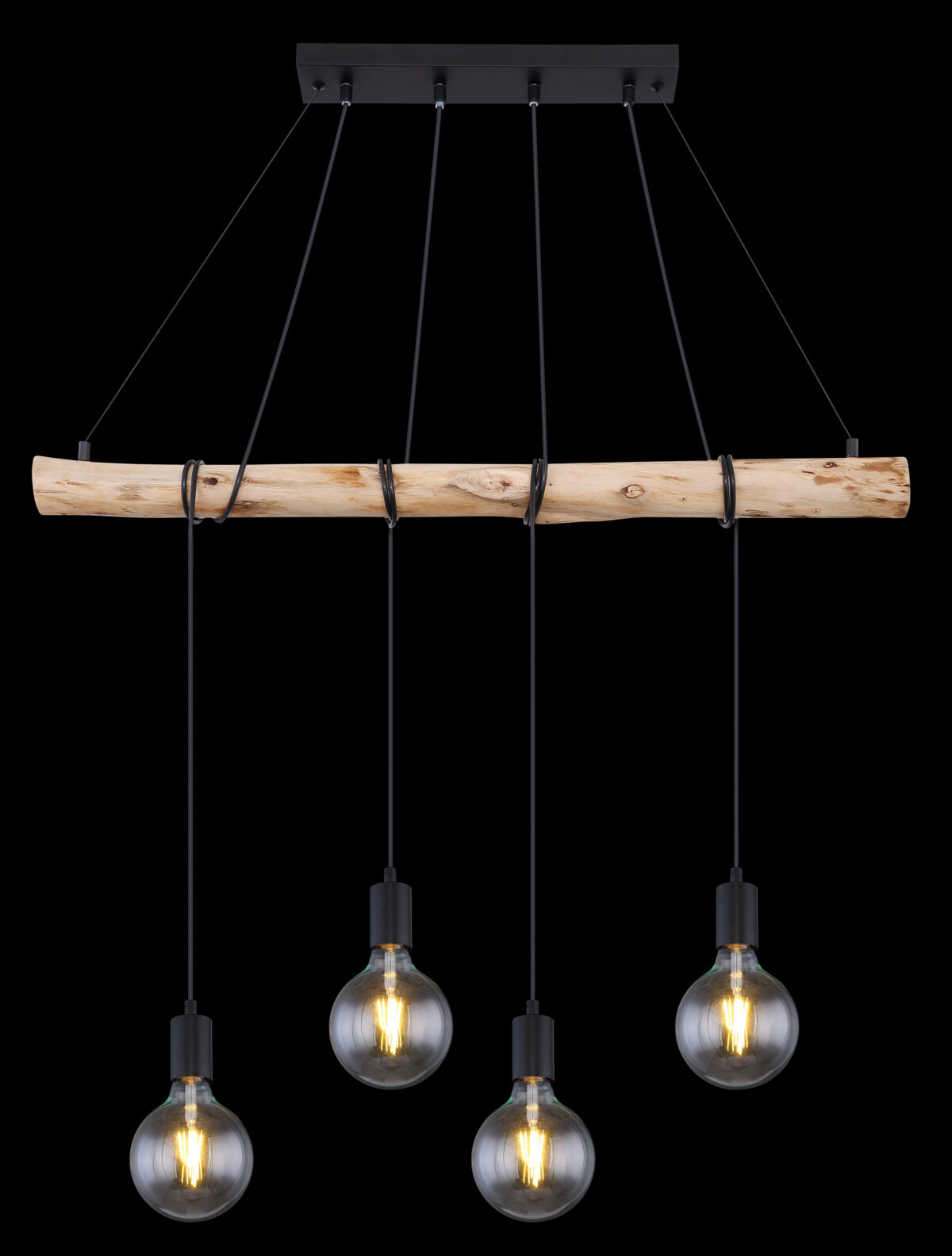 Sa ovom impresivnom drvenom visećom lampom i modernim crnim kablovima za omotavanje, dobijate moderan dom koji privlači poglede. Koristite lampu za svoju dnevnu sobu, kao ugodnu rasvjetu za svoju blagovaonicu ili iznad kuhinjskog stola. Sijalice se mogu koristiti do maksimalne snage 4×60 vati. Svaka sijalica E27 je vidljiva, što omogućava alternativno korištenje ukrasne sijalice. Preporučujemo korištenje LED žarulje za još veću održivost. Lampa impresionira svojom posebnom mješavinom materijala, dočarava prekrasne svjetlosne trenutke i osigurava ugodnu životnu situaciju.”