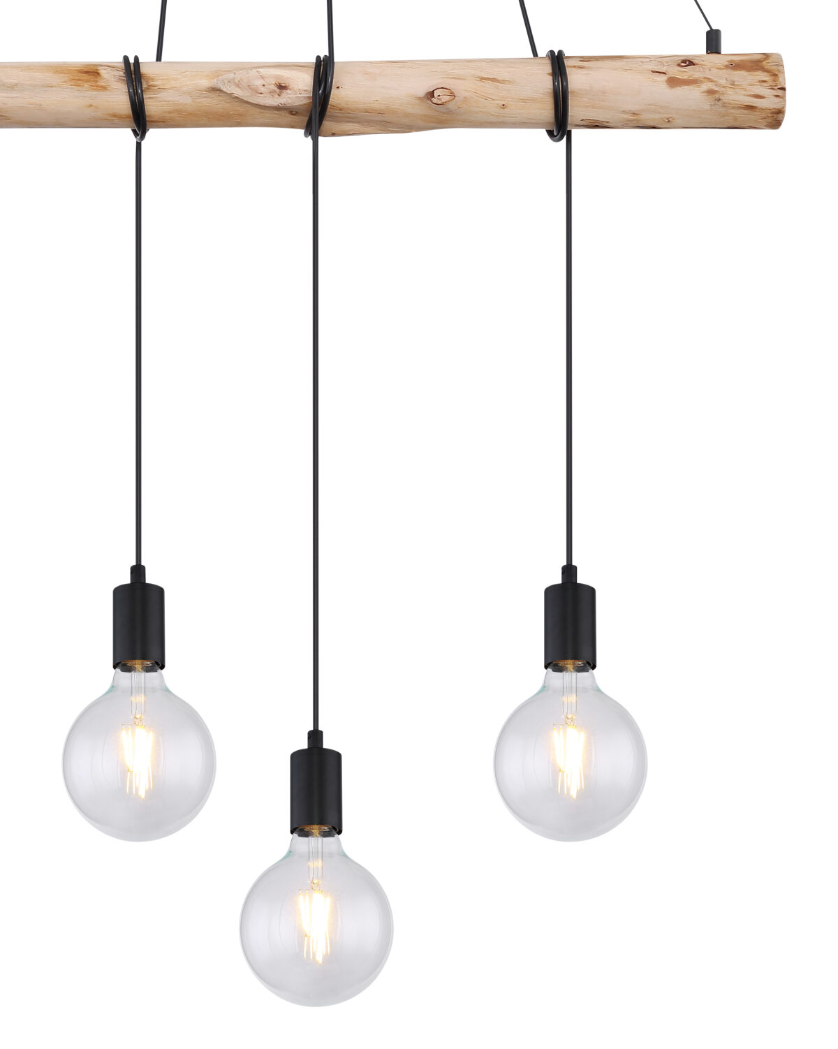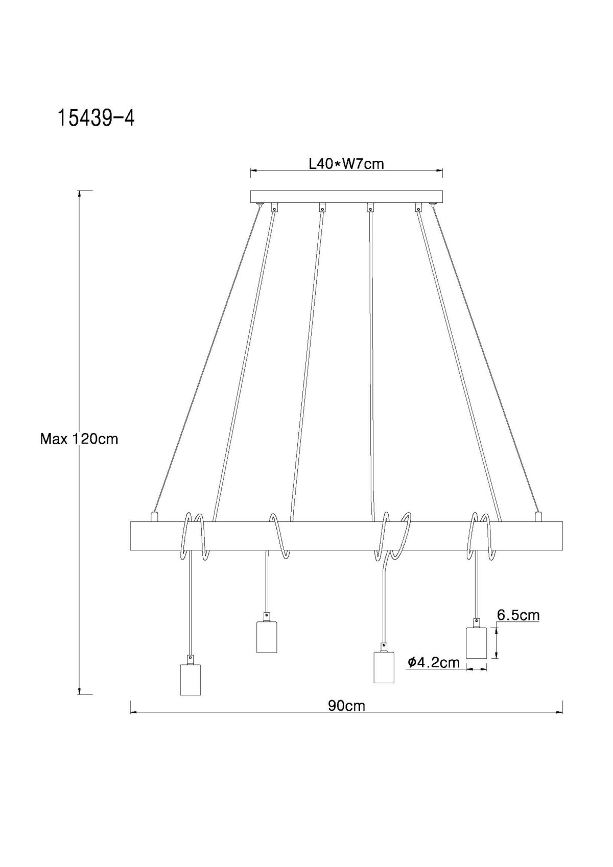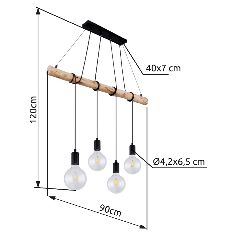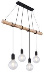 Sa ovom impresivnom drvenom visećom lampom i modernim crnim kablovima za omotavanje, dobijate moderan dom koji privlači poglede. Koristite lampu za svoju dnevnu sobu, kao ugodnu rasvjetu za svoju blagovaonicu ili iznad kuhinjskog stola. Sijalice se mogu koristiti do maksimalne snage 4×60 vati. Svaka sijalica E27 je vidljiva, što omogućava alternativno korištenje ukrasne sijalice. Preporučujemo korištenje LED žarulje za još veću održivost. Lampa impresionira svojom posebnom mješavinom materijala, dočarava prekrasne svjetlosne trenutke i osigurava ugodnu životnu situaciju.”