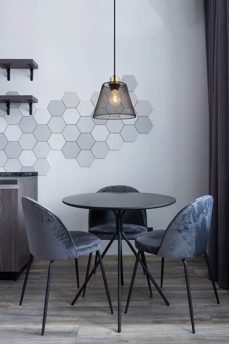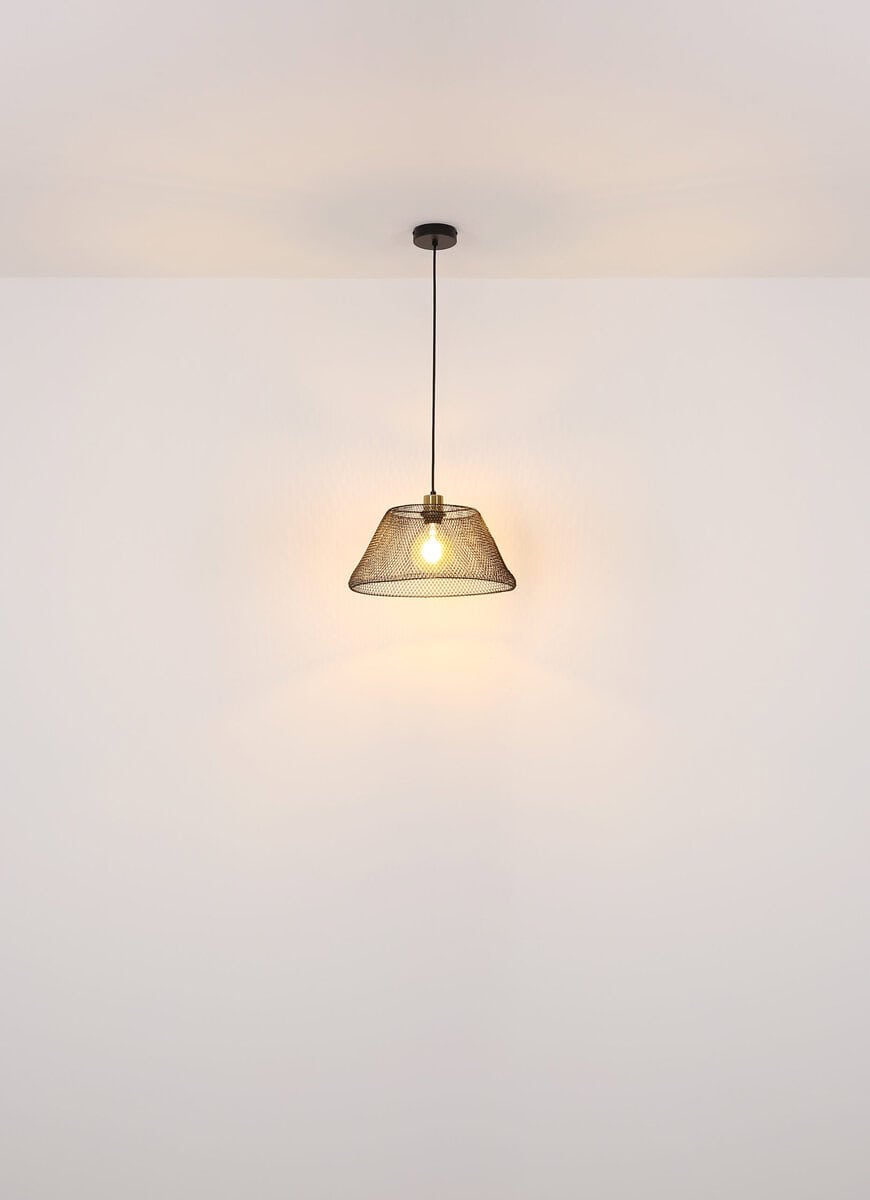 Viseća lampa BAKU nudi jedinstven dizajn, koji je definisan okruglim kućištem od crnog mat lakiranog metala. Zaobljeno tijelo zaokružuje metalna mrežasta boja u crnoj mat lakiranoj završnoj obradi i zlatnoj, antikno-optičkoj boji. Dimenzija sjenila je ø 200 mm i daje cjelini elegantan i klasičan oblik. Viseća lampa BAKU je idealan izbor za sve koji traže jedinstveno i stilizovano rešenje za svoju rasvetu. Svojim okruglim dizajnom i prekrasnom nijansom učinit će svaku prostoriju centrom pažnje.