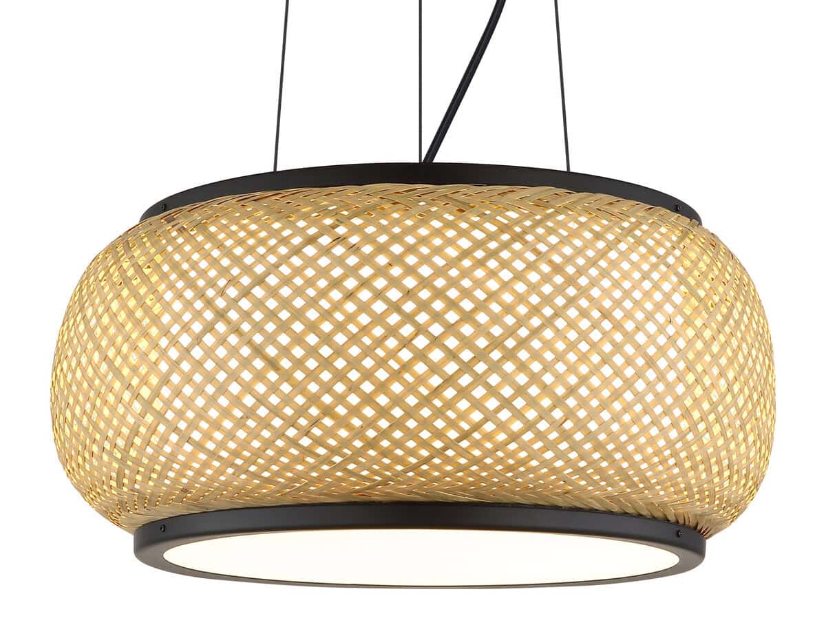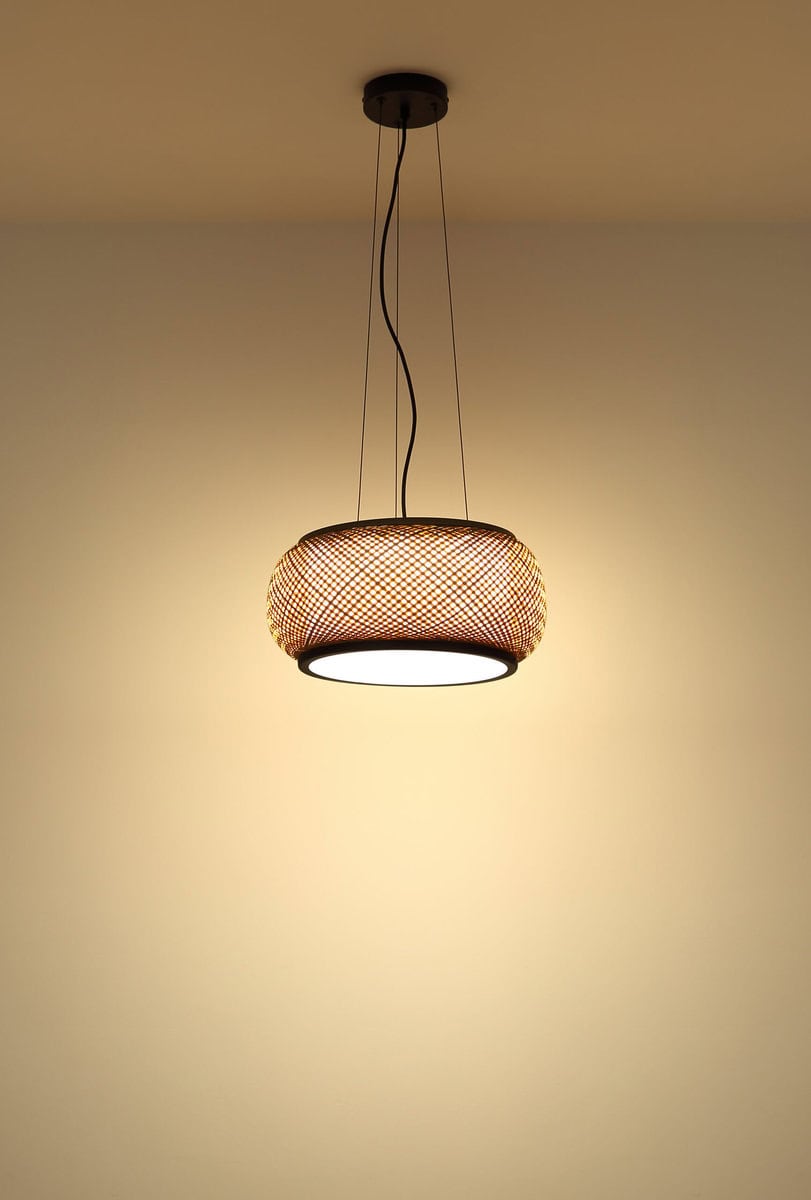 Viseća lampa BAMBORA dodaje dašak vintage stila vašem domu sa svojim bulbusnim, okruglim sjenilom izrađenim od prirodnog bambusa. Mat-crni metalni okvir stvara moderan kontrast organskom izgledu bambusa. Unutra, opal bijeli akrilni i bijeli difuzor od tkanine osigurava meko osvjetljenje bez odsjaja. Sa prečnikom od 380 mm, BAMBORA je savršena za trpezarije, dnevne sobe ili spavaće sobe koje traže ugodnu atmosferu. Integrisana LED tehnologija isporučuje 1560 lumena i, zahvaljujući funkciji CCT, omogućava beskonačno podešavanje temperature boje od 3000K (topla bela) do 6000K (dnevno belo). Memorijska funkcija zadržava željene postavke, a boje koje se mogu popraviti nude dodatnu fleksibilnost stila. Bilo da se koristi samostalno ili u više navrata, BAMBORA je idealan izbor za elegantnu rasvjetu prirodnog karaktera—dekorativni privjesak koji vješto spaja vintage dizajn sa modernom tehnologijom.