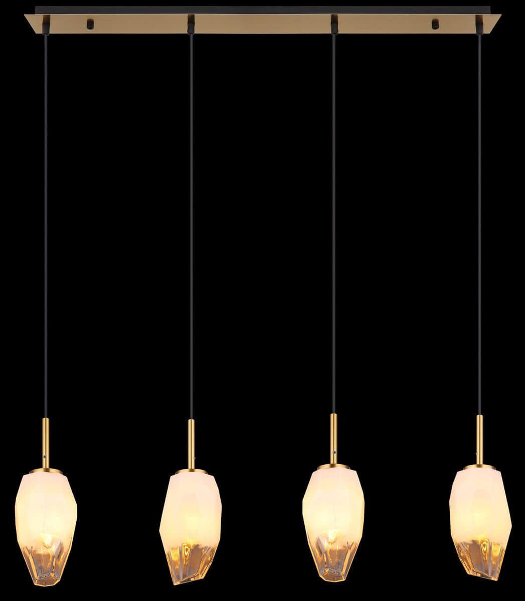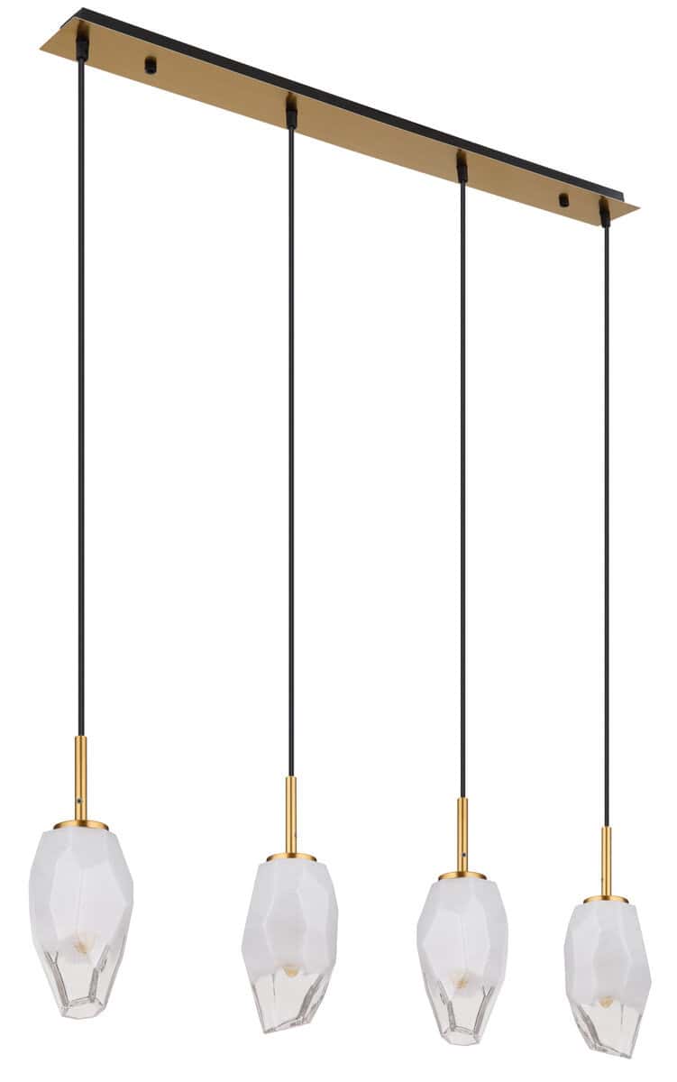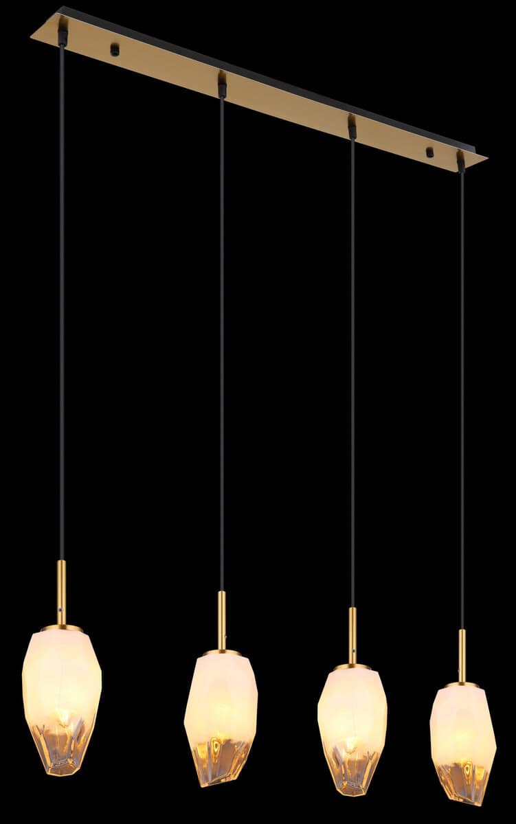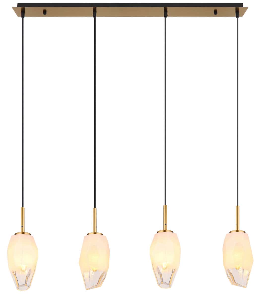 Viseća lampa serije BARCLEY od metala u mesinganoj boji sa opalom i prozirnim staklom je elegantan izbor za svaku prostoriju. Kabl u PVC crnoj boji daje lampi moderan štih. Lampa je dimenzija 900x110x1200mm, što je čini odličnim izborom za sobe srednje veličine. Za svetiljku je potrebno 4x E14 LED 7W 230V (nije uključeno) i obezbeđuje jako i efikasno osvetljenje. Opal i prozirno staklo proizvode difuzno i ugodno svjetlo. Ova viseća lampa je savršena za sve koji traže elegantno i efikasno rešenje za osvetljenje.