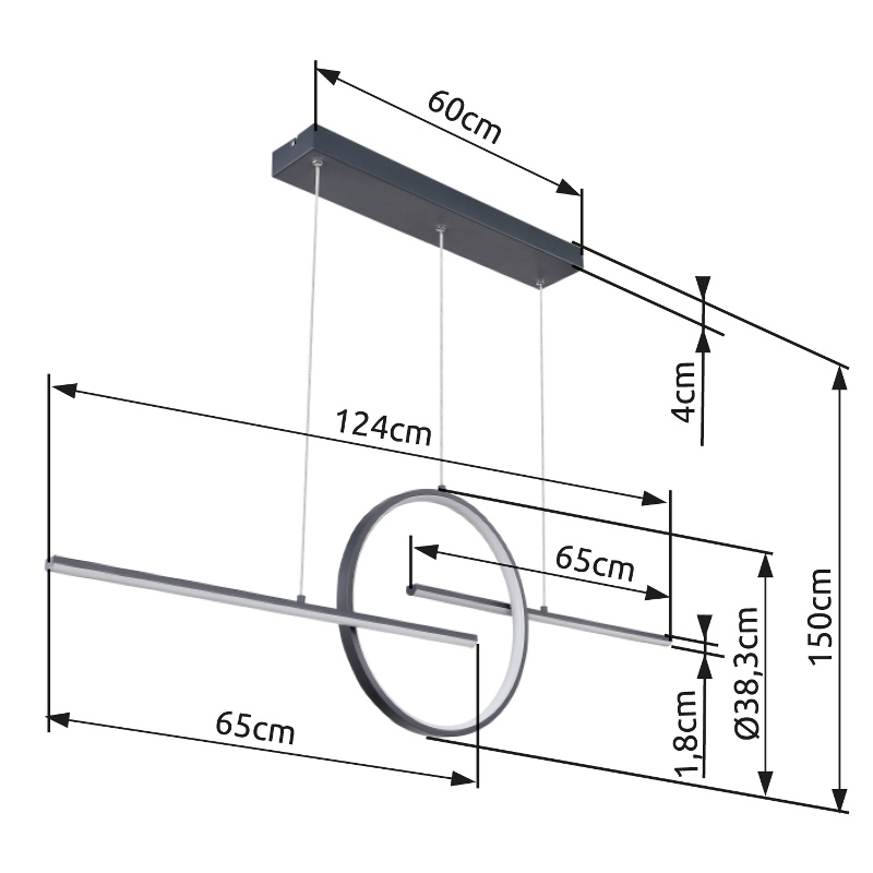 Veoma moderan i pravi optički vrhunac je LED viseća lampa BARRAL u boji grafita. Umjetnički dizajn je uvjerljiv, ali i funkcionalnost ne ostavlja ništa što se želi. Uz priloženi daljinski upravljač, tri različita nivoa svjetla mogu se podesiti i mijenjati po potrebi. Postavljena iznad trpezarijskog stola, lampa postaje prava privlačna za oko. LED ploča od 50 vati i 1300 lumena ima vijek trajanja od 20.000 sati.