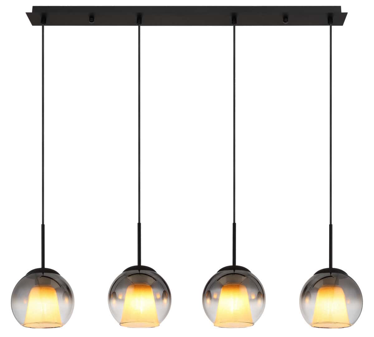 Viseća lampa BARRY sa svoje četiri elegantne staklene kugle pravi je dragulj za svaku prostoriju. Impresionira svojim modernim, izduženim dizajnom i dužinom od 1000 mm, što je idealno iznad trpezarijskih stolova ili kuhinjskih ostrva. Tijelo od mat crnog lakiranog metala daje svjetiljci savremen izgled, dok sfere od dimljenog stakla sa jasnim i gradijentnim elementima stvaraju fascinantnu igru svjetlosti. Unutrašnji detalji od kristalnog stakla osiguravaju da se svjetlost impresivno reflektira i stvara atmosfersku atmosferu. Unoseći eleganciju i stil u blagovaonicu i dnevni boravak, ova visilica je funkcionalna i dekorativna. Viseća lampa BARRY postavlja akcente i daje vašem domu dašak luksuza i udobnosti.