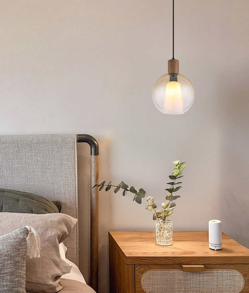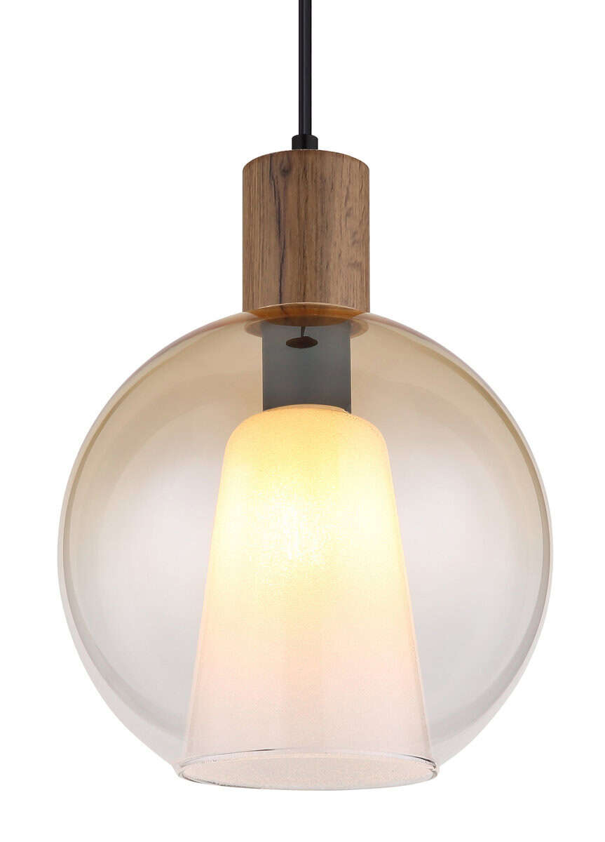 Viseća lampa Barry I je izvrstan komad koji kombinuje vintage šarm sa modernim stilom. Svojim okruglim dizajnom i atraktivnim proporcijama savršeno se uklapa u svaki interijer. Tijelo izrađeno od mat crnog metala u kombinaciji sa MDF-om u izgledu tamnog drveta osigurava bezvremensku eleganciju. Sjenila, izrađena od visokokvalitetnog ćilibara i prozirnog stakla s gradijentom dizajna, stvaraju toplu i privlačnu atmosferu u vašem domu. Osim toga, prozirni stakleni kristali postavljaju blistave akcente i poboljšavaju igru svjetla u prostoriji. Svako staklo je opremljeno unutrašnjim staklom koje ne samo da osigurava sigurnost već i optimizira distribuciju svjetlosti. Viseća lampa Barry I zahteva grlo E27 (osim E27), tako da imate priliku da izaberete pravu sijalicu i podesite raspoloženje po Vašim željama. Idealna za trpezarije, kuhinje ili udobne dnevne prostore, ova lampa će dodati dašak stila svakoj prostoriji!