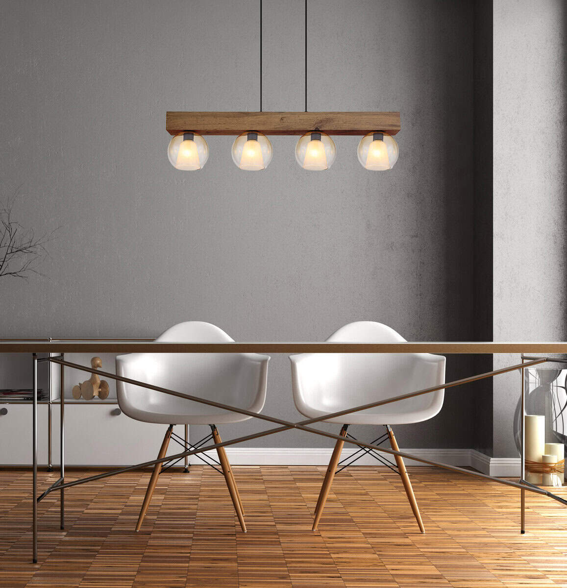 Viseća lampa Barry I je moderan rasvetni objekat koji kombinuje vintage dizajn sa modernim štihom. Sa svojim ravnim snopom i četiri pažljivo dizajnirana stakla, unosi eleganciju u svaku prostoriju. Tijelo izrađeno od mat crnog metala i MDF-a u izgledu tamnog drveta čini privlačnu kombinaciju koja blista u modernim i klasičnim konceptima opremanja. Jantarno i prozirno staklo s gradijentom stvara harmoničnu igru svjetla i stavlja prostoriju u pravo svjetlo. Prozirni stakleni kristali upotpunjuju dizajn i daju blistave akcente. Svako staklo je opremljeno unutrašnjim staklom koje pruža dodatnu zaštitu uz optimizaciju distribucije svjetlosti. Viseća lampa Barry I zahteva grlo E27 (osim E27), što vam daje slobodan izbor sijalice. Idealno za kuhinje, blagovaonice ili dnevne prostore za stvaranje ugodne i privlačne atmosfere!