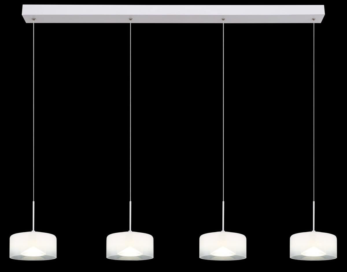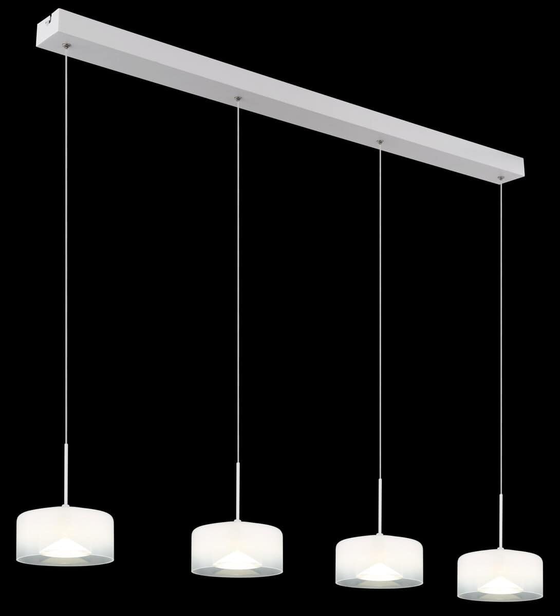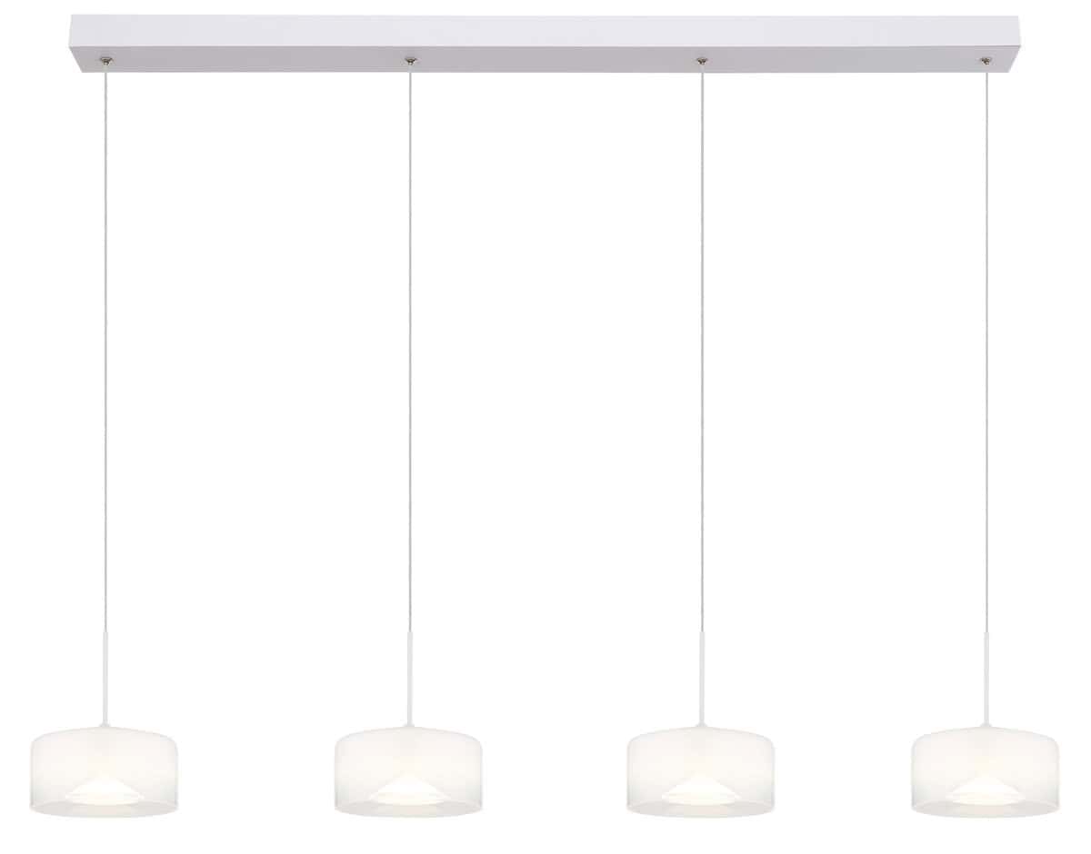 Viseća lampa BELINDA uvjerava svojom izduženošću i elegantnim dizajnom sa četiri okrugla sjenila. Kućište izrađeno od bijelog, mat metala savršeno se uklapa u opalne, prozirne staklene površine. Sa dužinom od 1050 mm i jačinom lumena od 1700, pruža svetlu, privlačnu atmosferu u velikim prostorijama. Temperatura boje od 4000 K stvara neutralno svjetlo koje je pogodno i za radne prostore i za udobne blagovaonice. Moderan svjetlosni objekt koji uljepšava svako okruženje.