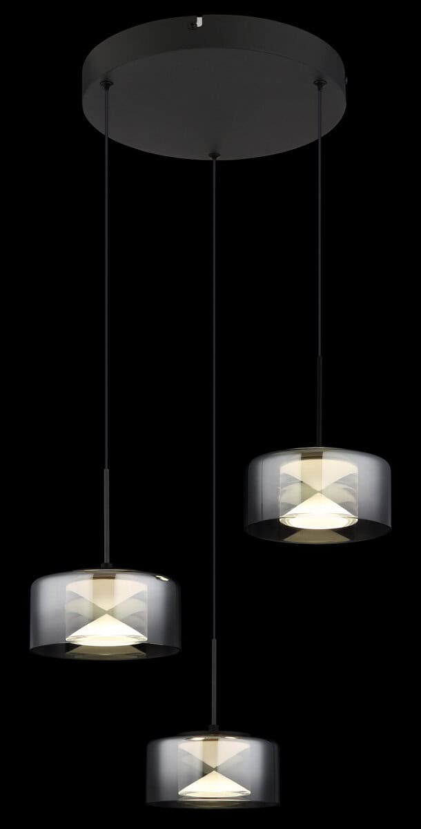 Viseća lampa BELINDA od crnog mat metala je stilski vrhunac za svaku prostoriju. Njegova tri okrugla sjenila od prozirnog stakla boje dima stvaraju ugodnu svjetlosnu atmosferu. Sa prečnikom od 400 mm i jačinom lumena od 1200, idealan je za osvetljenje trpezarija ili dnevnih soba. Temperatura boje od 4000 K daje jasno i neutralno svjetlo koje je savršeno za moderne stilove interijera. Ova lampa kombinuje funkcionalnost sa savremenim dizajnom.