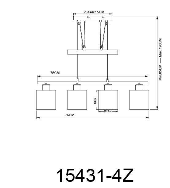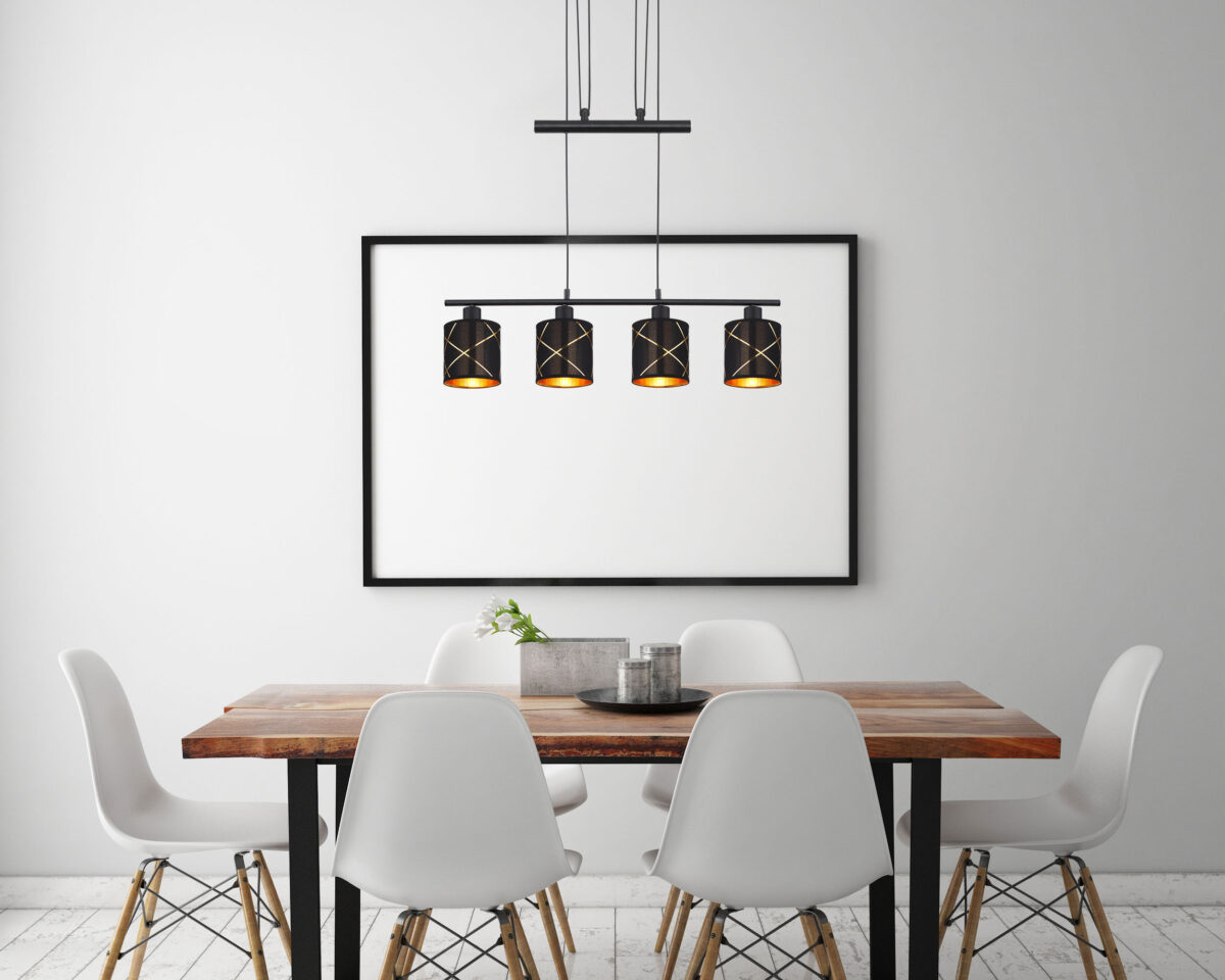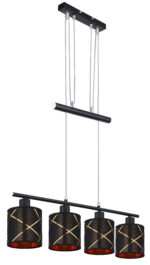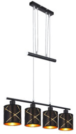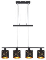 Viseća lampa sa četiri plamena ima četiri abažura sa dekorativnim štancanjem. Svjetlost ove prekrasne viseće lampe predivno se reflektira akrilom zlatne boje pričvršćenim na unutrašnjost abažura. Ova unutrašnja lampa visi oko 140 cm u prostoriji. E27 konac vam daje slobodan izbor intenziteta svjetlosti i boje pri odabiru izvora svjetlosti (osim 4xE27, 25 vati). Zbog dugotrajnosti ili uštede energije preporučujemo LED sijalice. Ova tradicionalna lampa je posebno pogodna za spavanje, dnevne i trpezarije. Ostali modeli ove serije upotpunjuju vaš životni prostor.