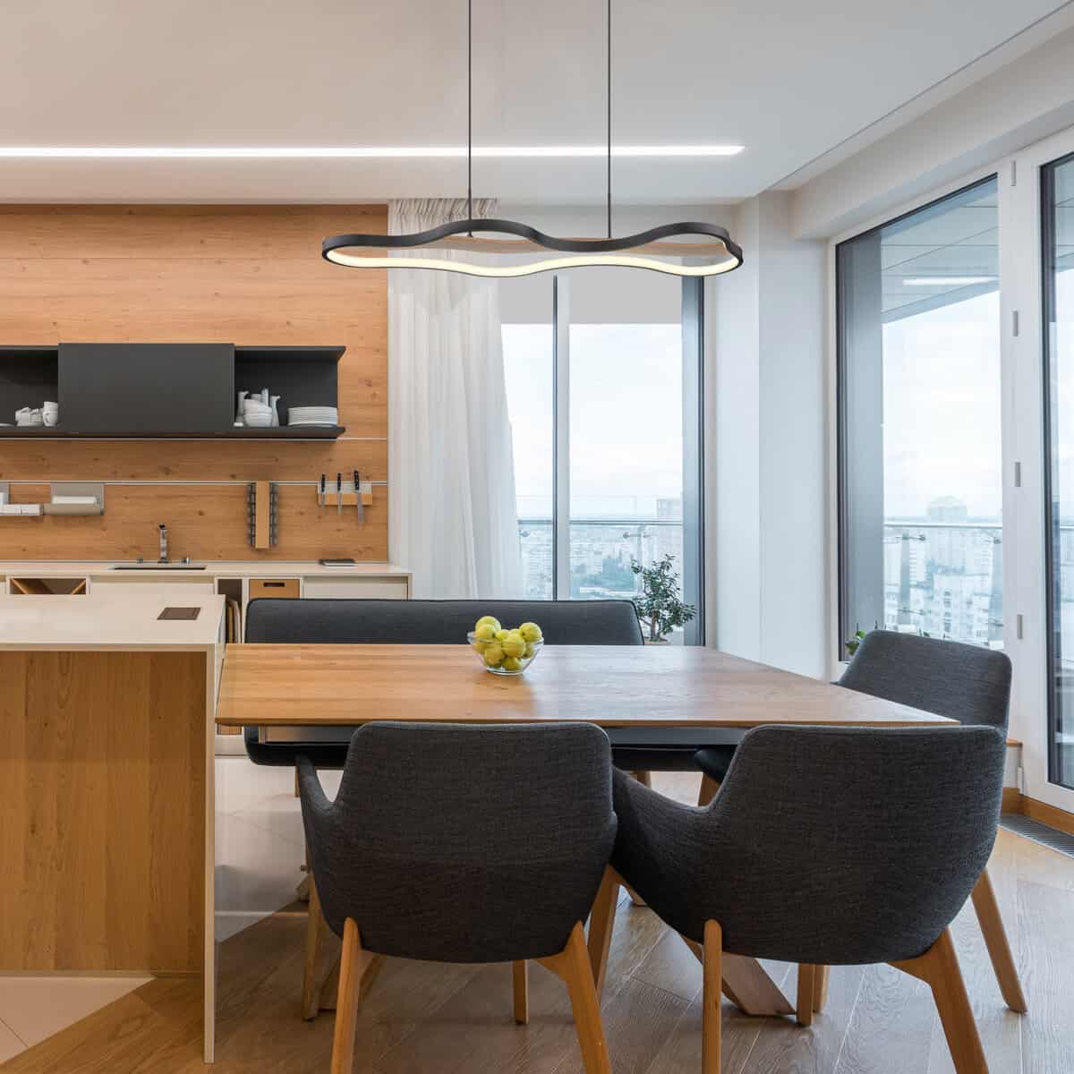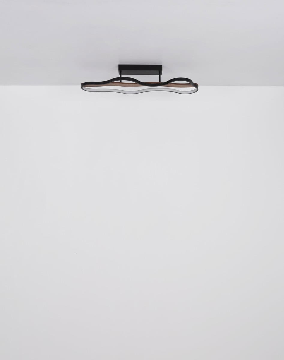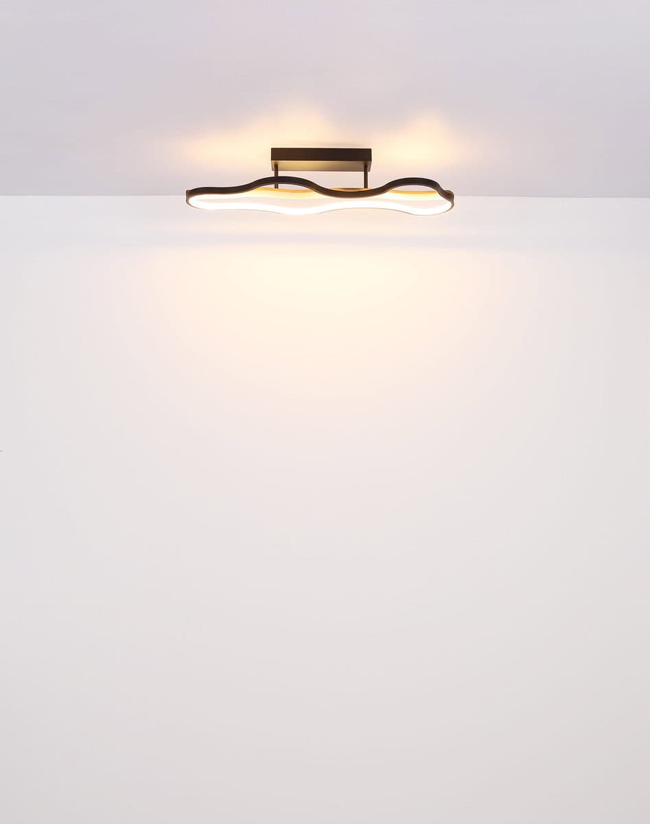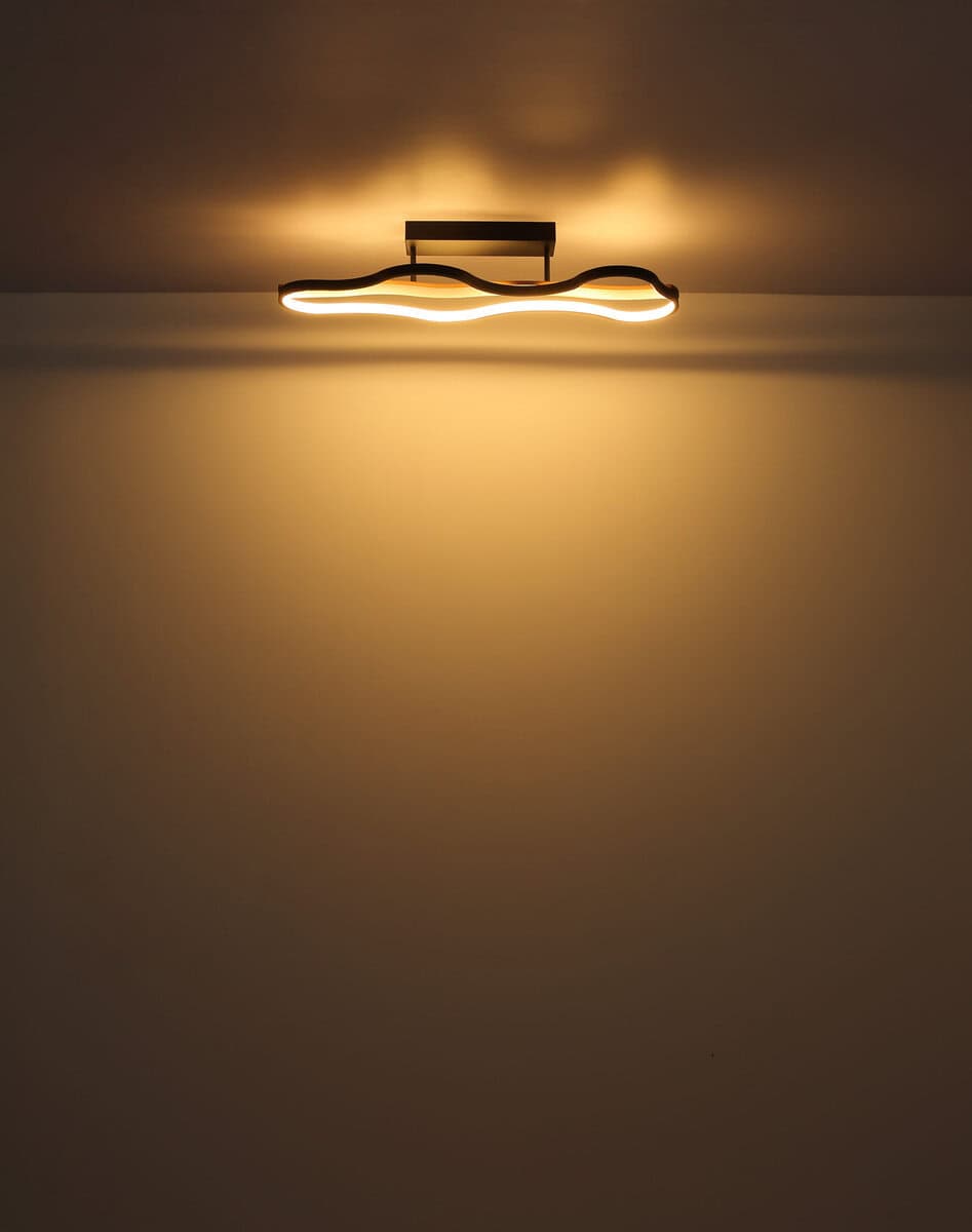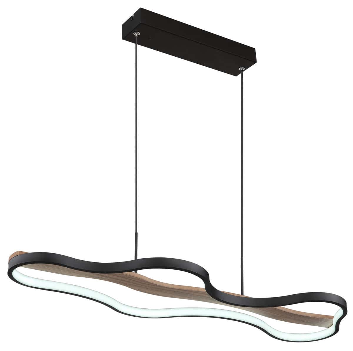 Viseća lampa BEZZY impresionira svojim jedinstvenim oblikom oblaka i zakrivljenim dizajnom. Ona nije samo izvor svjetlosti, već i dekorativni element u vašem domu. Tijelo visilice BEZZY izrađeno je od mat crnog metala i tamno smeđeg drveta, što lampi daje moderan i moderan izgled. Sjenilo visilice BEZZY izrađeno je od crnog, mat aluminija i opal silikona. Kao rezultat, svjetlo je bez odsjaja i ravnomjerno se raspršuje. Viseća lampa BEZZY dolazi sa praktičnim daljinskim upravljačem koji vam omogućava da individualno prigušite intenzitet svetlosti. Također možete popraviti različite boje, a lampa ima memorijsku funkciju. Sa dužinom i širinom od 806 mm x 290 mm, viseća lampa BEZZY idealna je za sobe srednje veličine. Sa snagom od 1100 lumena, nudi dovoljno osvetljenja za prijatno osvetljenje. Temperatura boje (CCT) može varirati od 2700K do 6000K. Sa BEZZY visećom lampom možete stvoriti elegantnu i modernu atmosferu u svom domu i istovremeno uživati u praktičnim funkcijama za individualni dizajn rasvjete.