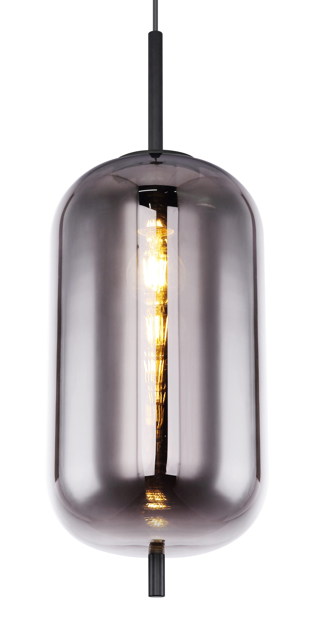 Ova visilica BLACKY (Ø 22 cm) izrađena je od crnog metala sa staklom u boji dima. Viseće staklo je individualno u svojoj prezentaciji. Ova umjetnička lampa prečnika 120 cm ima grlo E27 (maks. 60 vati), što omogućava slobodan izbor sijalica. Zbog dugotrajnosti i uštede energije preporučujemo LED sijalice. Ova viseća lampa je idealna za vaš dnevni boravak i trpezariju.