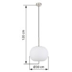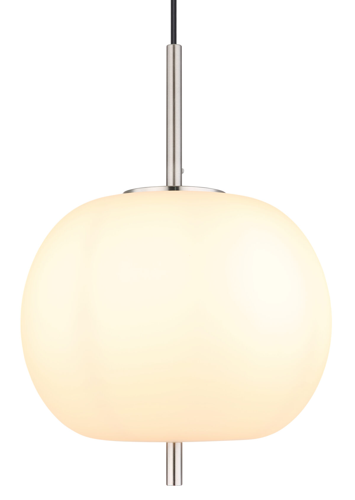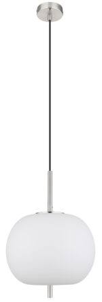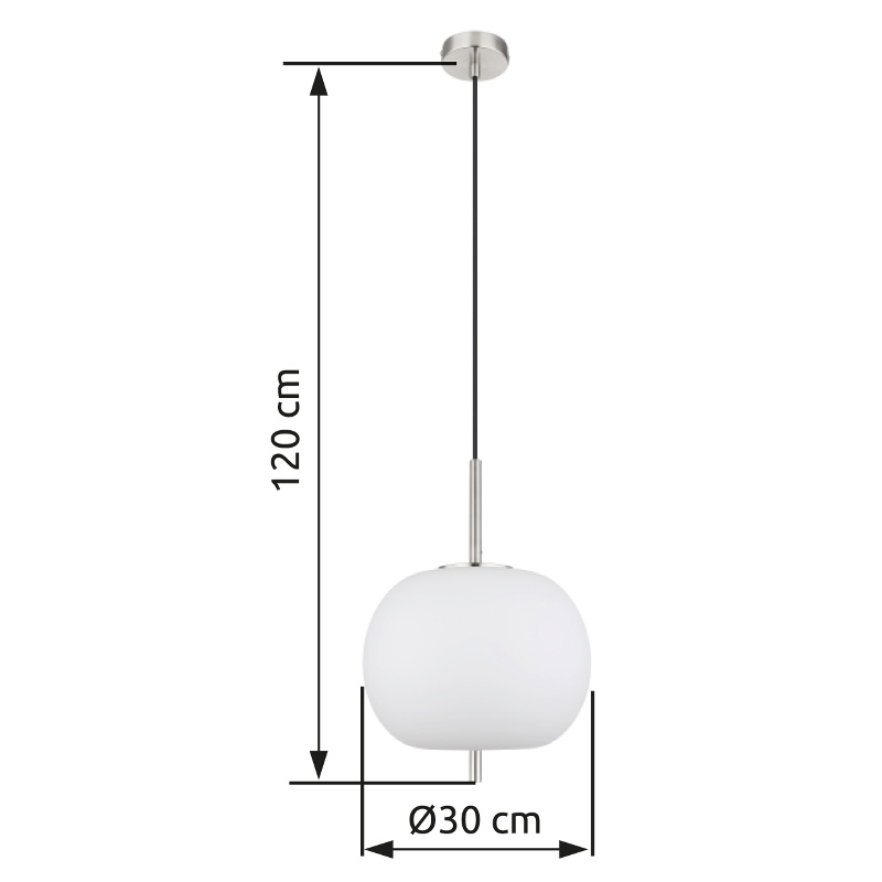 Ova sjajna viseća lampa BLACKY I-serije inspiriše jednostavnim dizajnom. Kabl dužine 1,2 m viri iz okruglog plafonskog priključka u boji nikla (Ø 9 cm) i završava na E27 utičnici, koja je opremljena sa oblikom opalnog sjenila (Ø 30 cm). E27 utičnica vam omogućava da sami odredite boju svjetla i svjetlinu do maksimalne snage od 60 vati. Zbog dugovečnosti i uštede energije preporučujemo LED sijalice.