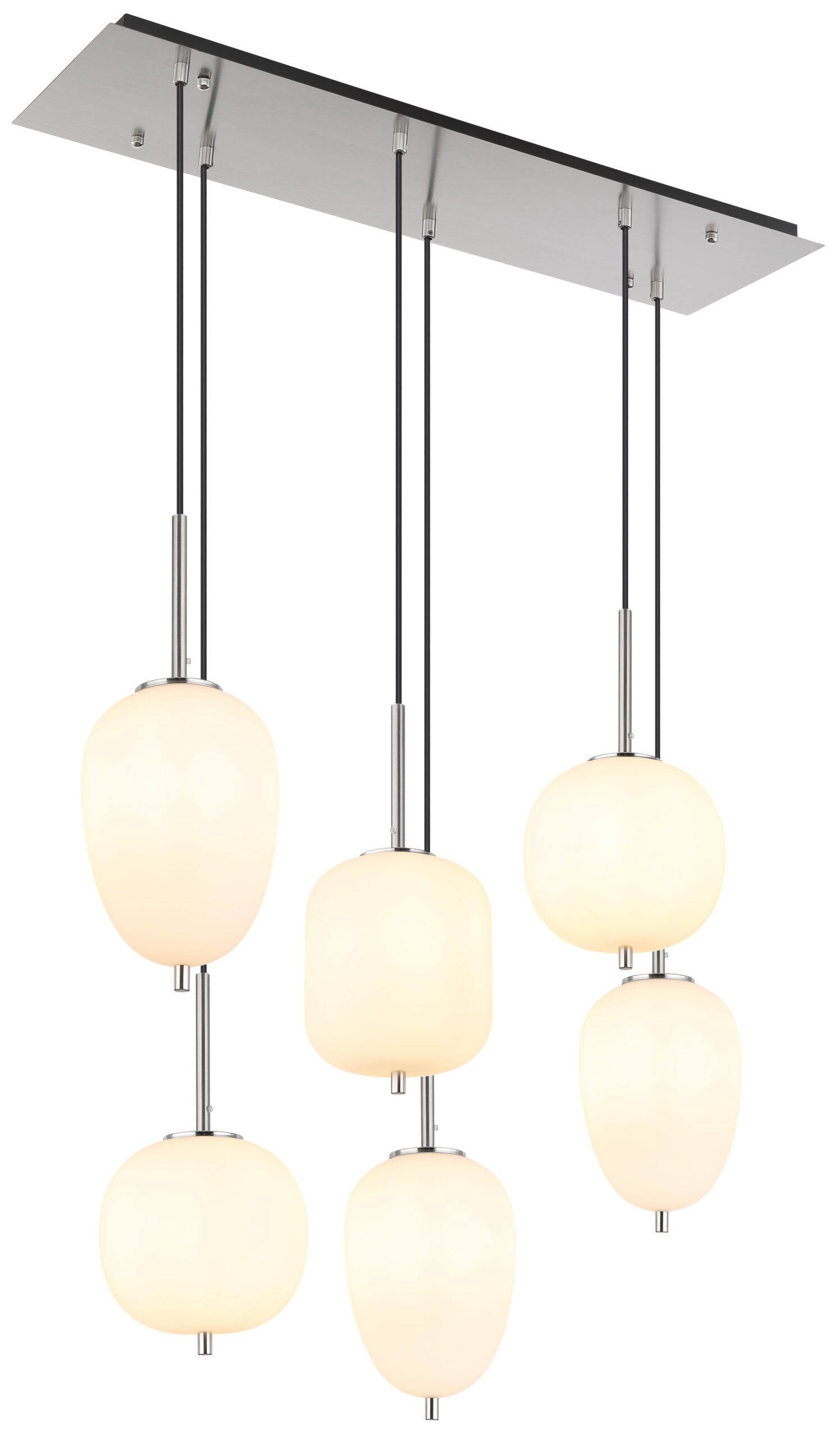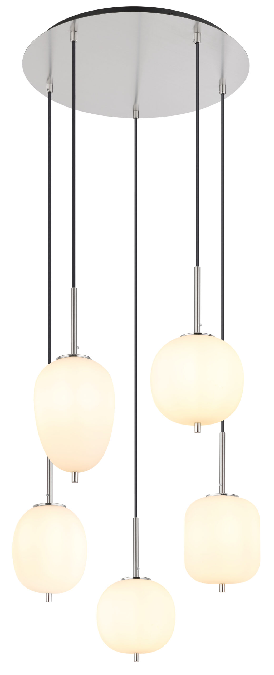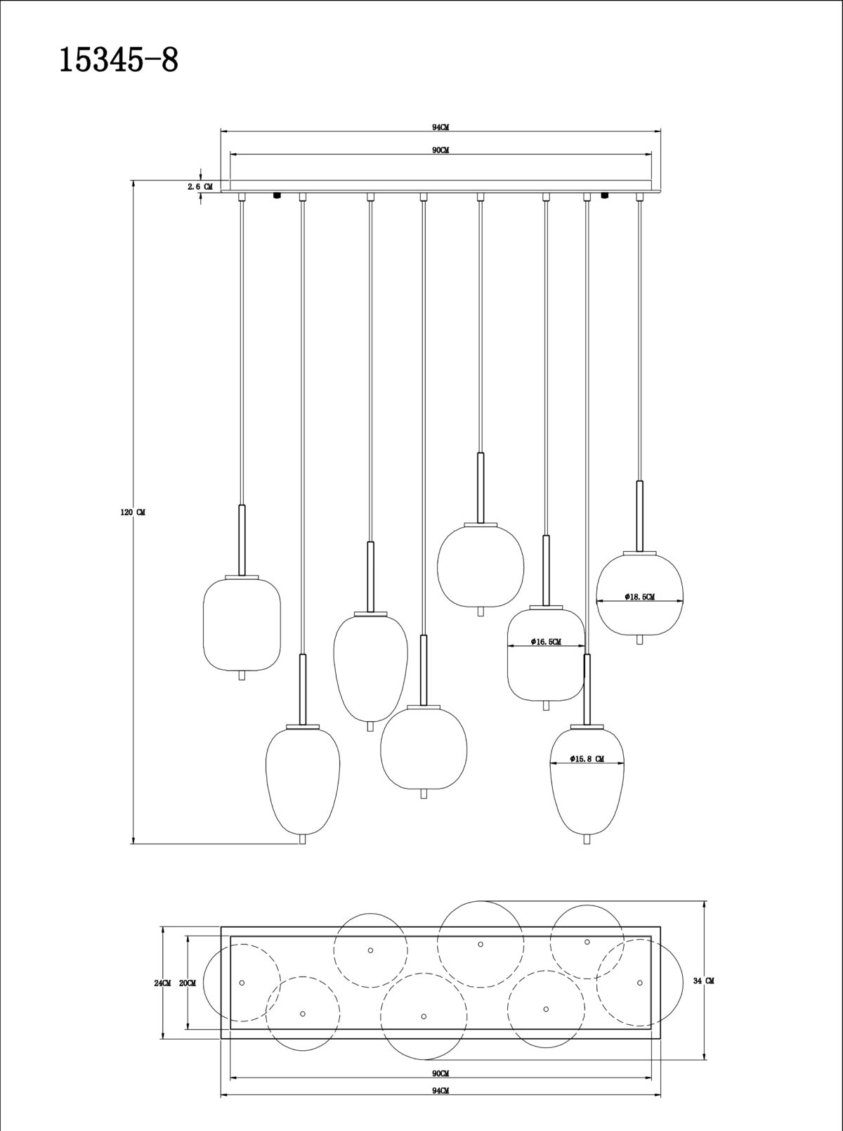 Ova viseća lampa BLACKY izrađena je od crnog metala sa staklima u boji dima. Osam visećih čaša su individualne po svojoj prezentaciji i veličini. Ova umjetnička lampa promjera 120 cm ima osam E14 grla (sa maks. 40 vati), što omogućava slobodan izbor sijalica. Zbog dugotrajnosti i uštede energije preporučujemo LED sijalice. Ova viseća lampa je idealna za vaš dnevni boravak i trpezariju.