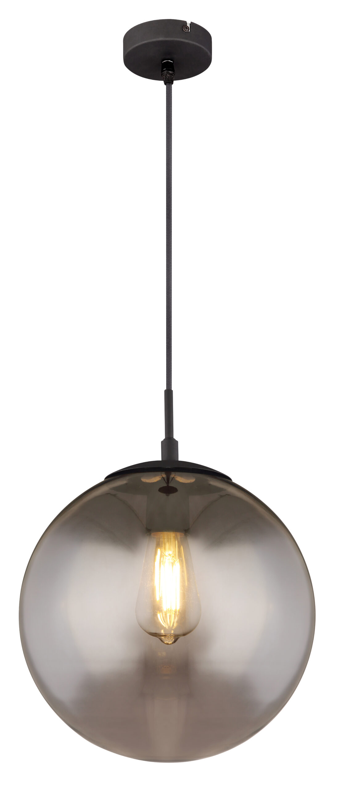 Ova crna ljepotica BLAMA impresionira svojim elegantnim dizajnom. Staklo u boji dima (Ø 30cm) visi 120cm u prostoriji. Zahvaljujući grlu E27, moguć je slobodan izbor sijalice. Ova viseća lampa je idealna za spavaće i dnevne sobe. Ostali modeli ove serije upotpunjuju vaš životni prostor.