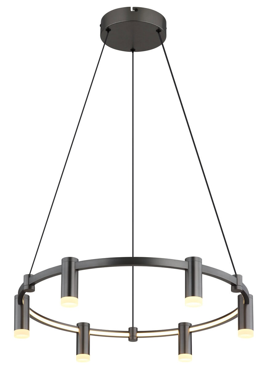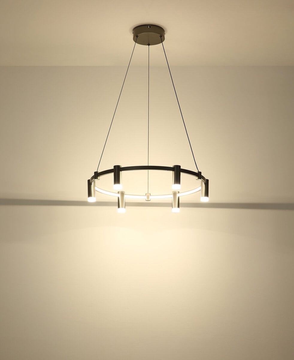 Viseća lampa CASTELA impresionira svojim modernim, okruglim dizajnom i visokom funkcionalnošću. Sa prečnikom od 620 mm, idealan je za velike trpezarijske stolove, dnevne ili radne prostore. Elegantan prsten s integriranim reflektorom osigurava ravnomjerno osvjetljenje i dodaje stilski naglasak svakoj prostoriji. Kućište izrađeno od mat antracit metala daje lampi elegantan i bezvremenski izgled. Sjenilo je izrađeno od mat aluminija, opal akrila i bijelog silikona – harmonična kombinacija za ugodno svjetlo bez odsjaja. Integrirani LED daje svjetlosni tok od 2610 lumena i može se fleksibilno podesiti u temperaturi boje od 2700 K do 6000 K (CCT). Zahvaljujući memorijskoj funkciji i fiksnim postavkama boja, svjetlo se može prilagoditi i sačuvati prema vašim potrebama. CASTELA je više od obične viseće svjetiljke – to je moderan rasvjetni objekt s inteligentnom tehnologijom za stilski osviještene životne prostore. LED uključen.