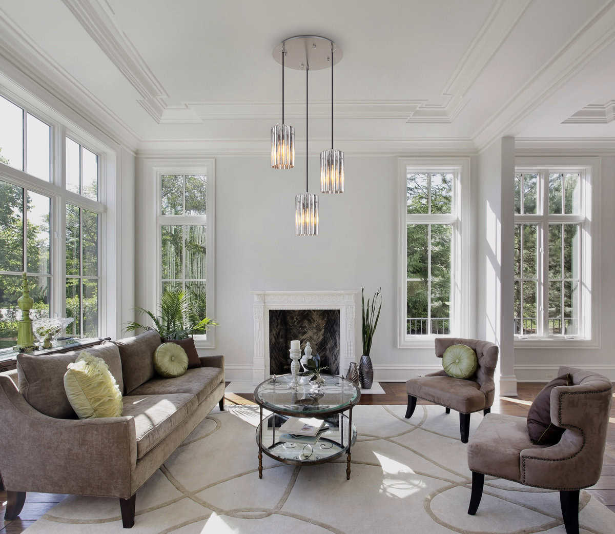 Viseća lampa CAYDEN uvjerava svojim modernim dizajnom i elegantnim, okruglim staklenim cilindrima. Užljebljena struktura čaša i mat niklovano tijelo stvaraju elegantno svjetlosno rješenje za blagovaonicu, dnevni boravak ili kao dekorativni element. Prozirna sočiva obrađena satenom osiguravaju ravnomjernu distribuciju svjetlosti. Sa E27 utičnicom nudi fleksibilnost u izboru izvora svjetlosti.