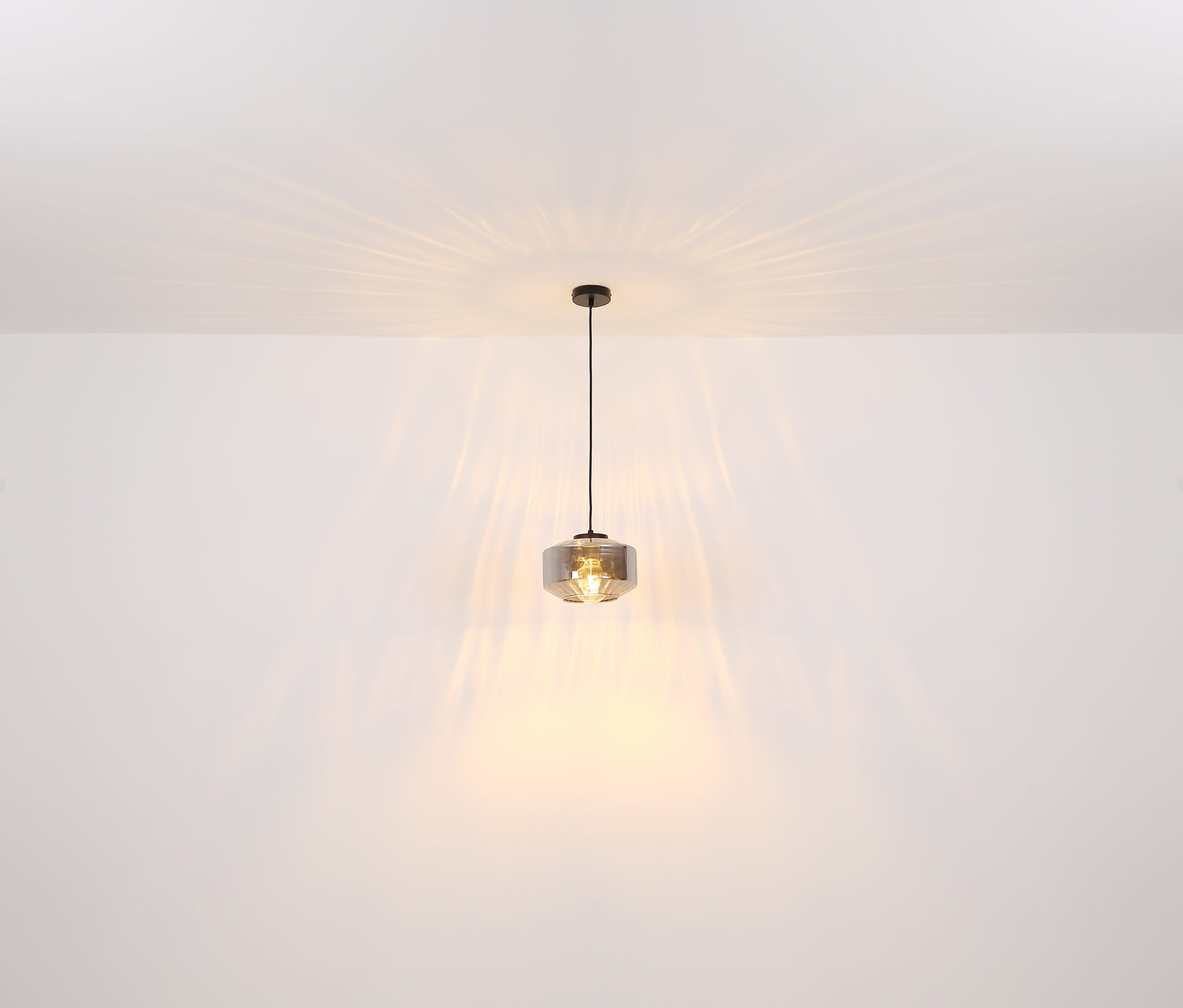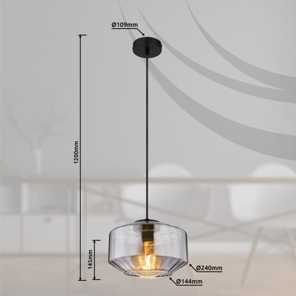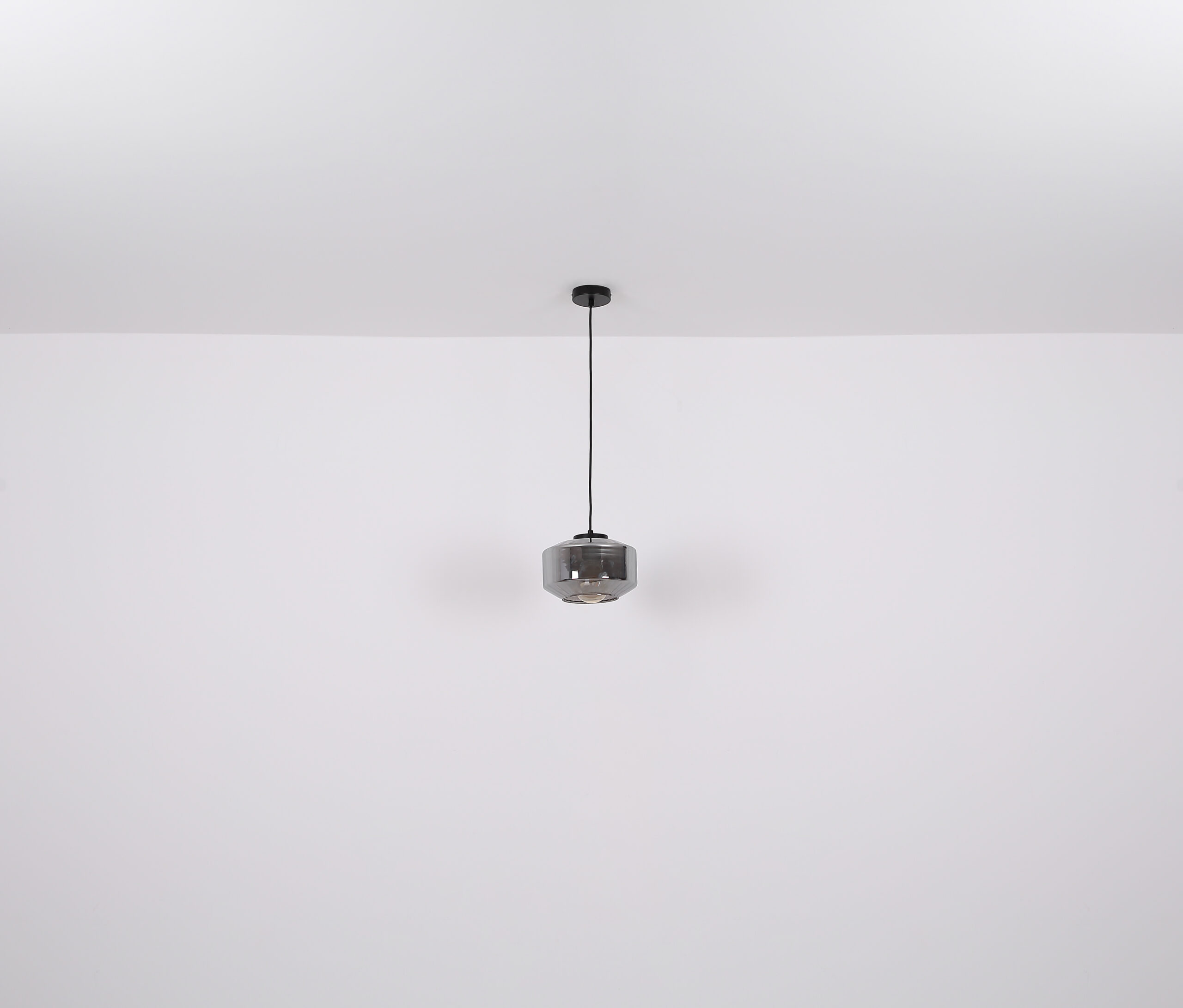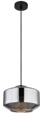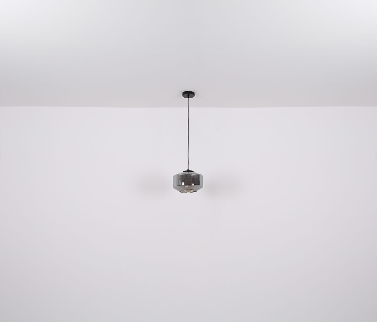 Ova jednostavna viseća lampa inspirira svojim prekrasnim dizajnom. Kabl dužine 1,2 m viri iz okruglog crnog plafonskog priključka i završava se na E27 utičnici sa staklenim abažurom u obliku dima (Ø 24 cm). E27 utičnica vam omogućava da sami odredite boju i svjetlinu do maksimalne snage od 40 vati. Zbog dugovečnosti i uštede energije, preporučujemo LED sijalice.