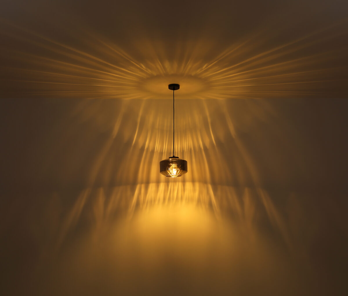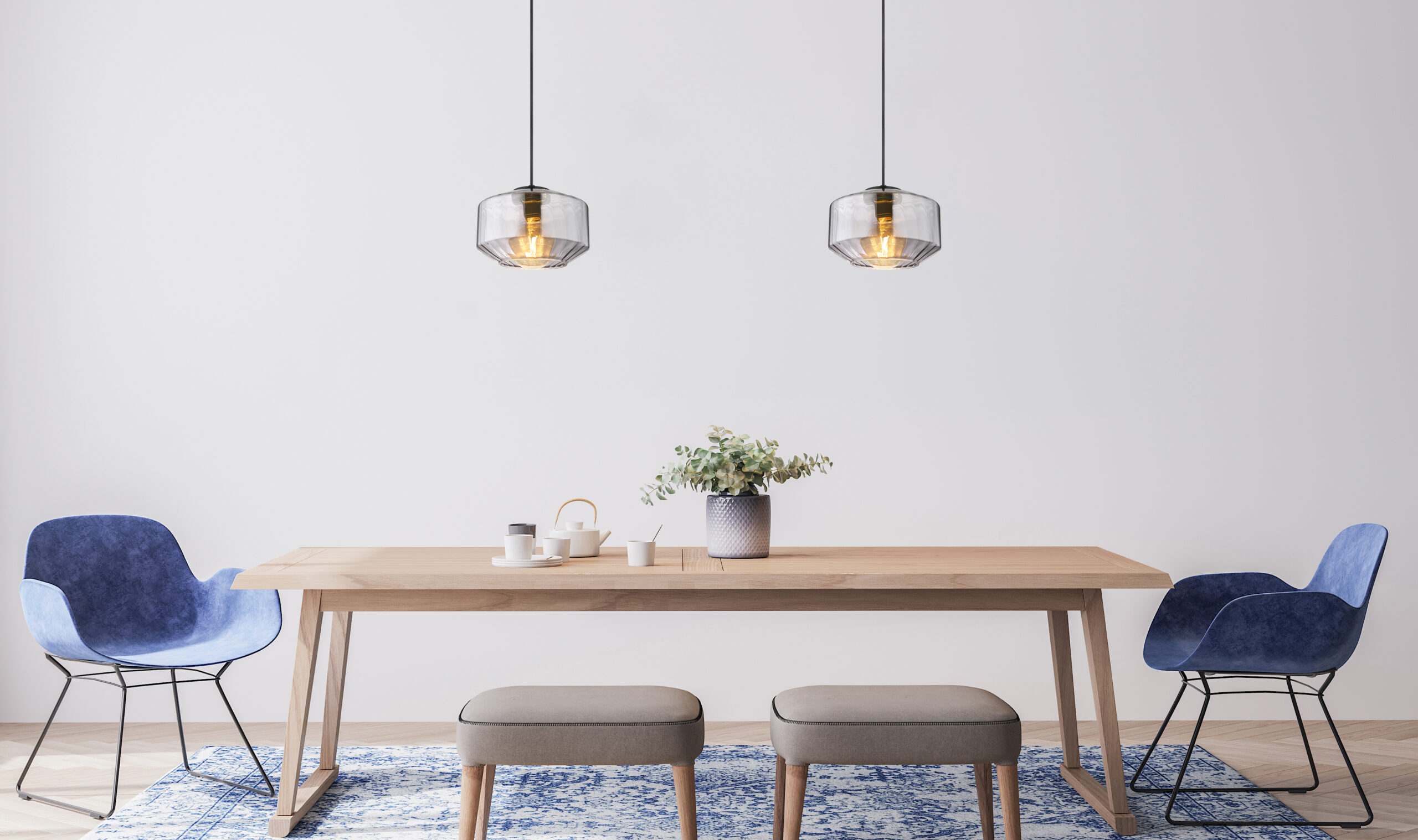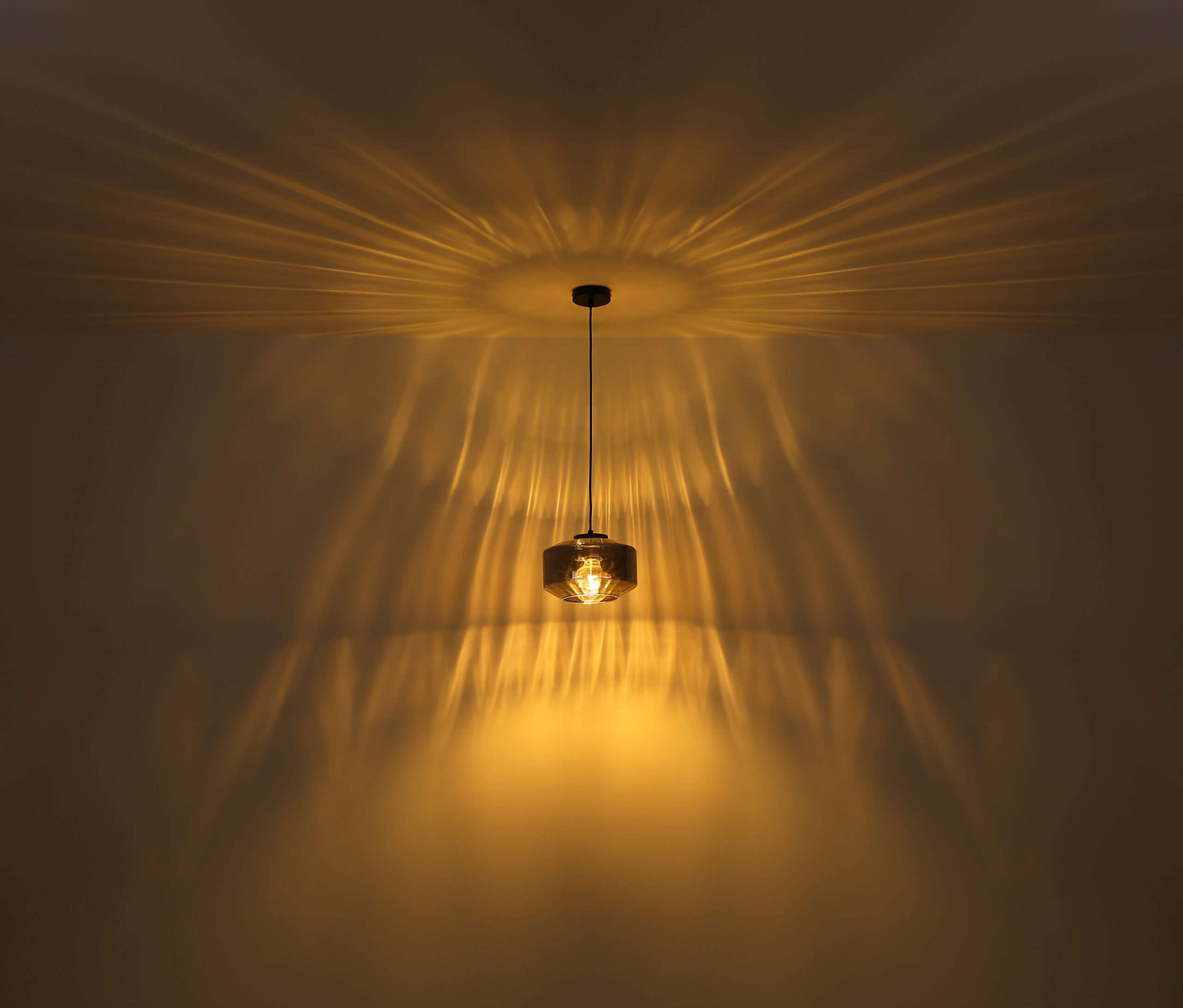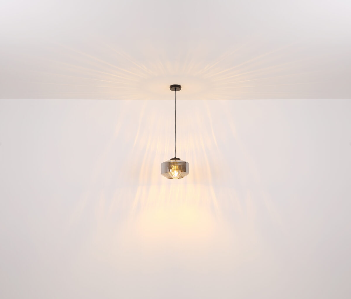 Ova jednostavna viseća lampa inspirira svojim prekrasnim dizajnom. Kabl dužine 1,2 m viri iz okruglog crnog plafonskog priključka i završava se na E27 utičnici sa staklenim abažurom u obliku dima (Ø 24 cm). E27 utičnica vam omogućava da sami odredite boju i svjetlinu do maksimalne snage od 40 vati. Zbog dugovečnosti i uštede energije, preporučujemo LED sijalice.