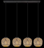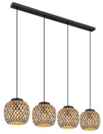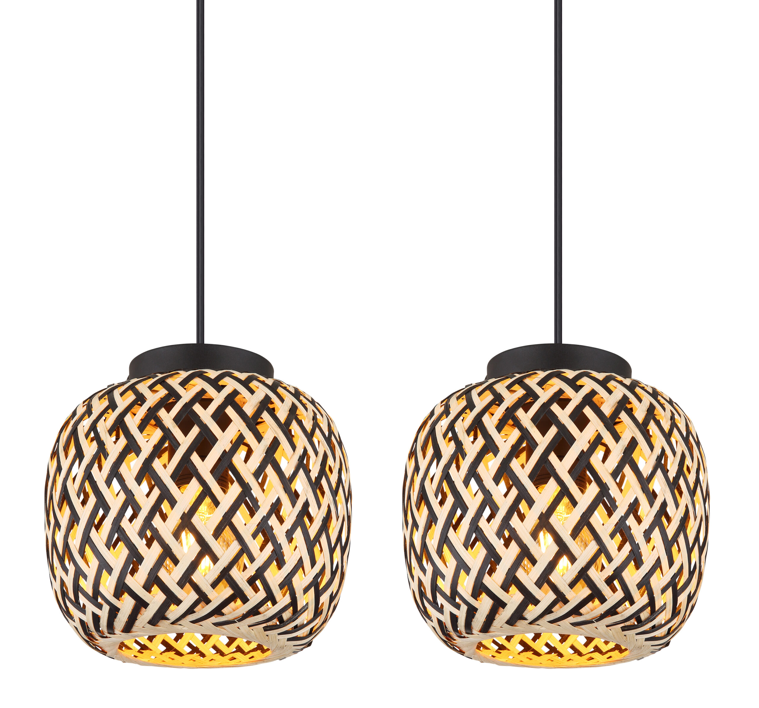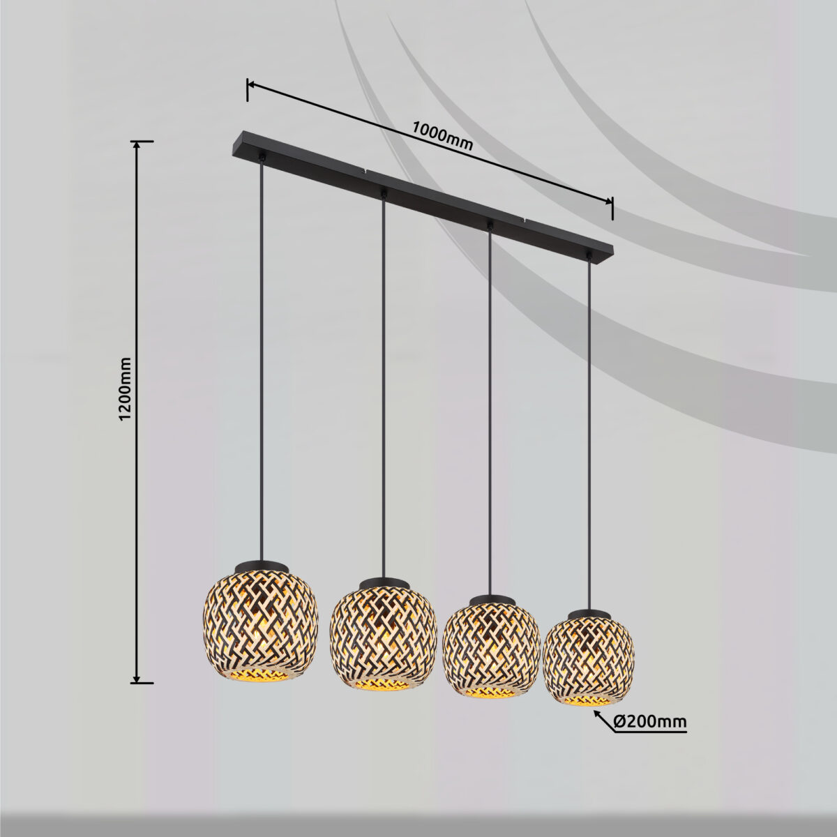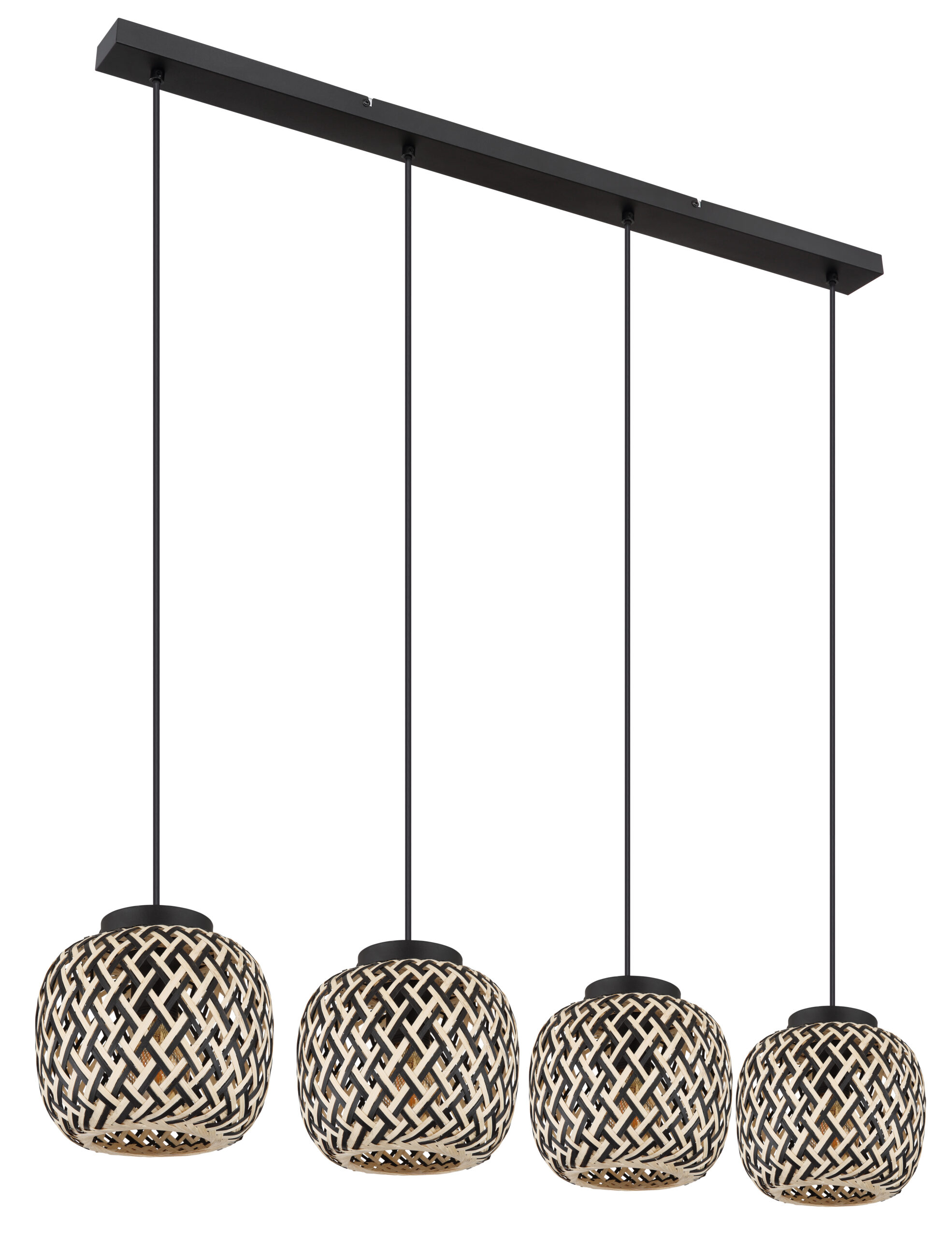 Ova prekrasna visilica serije COLLY inspirira sjajnom izradom od bambusa i metala. Četiri crna kabla dužine 1,2 m, svaki sa E27 utičnicom, vode na uskom plafonskom priključku (1 m) od crnog mat metala. Svaki od njih je opremljen sa sjenilom od bambusa (Ø 20 cm) u crnoj i prirodnim bojama i daju vam priliku da odredite boju svjetla i svjetlinu do maksimalne snage od 15 vati.
