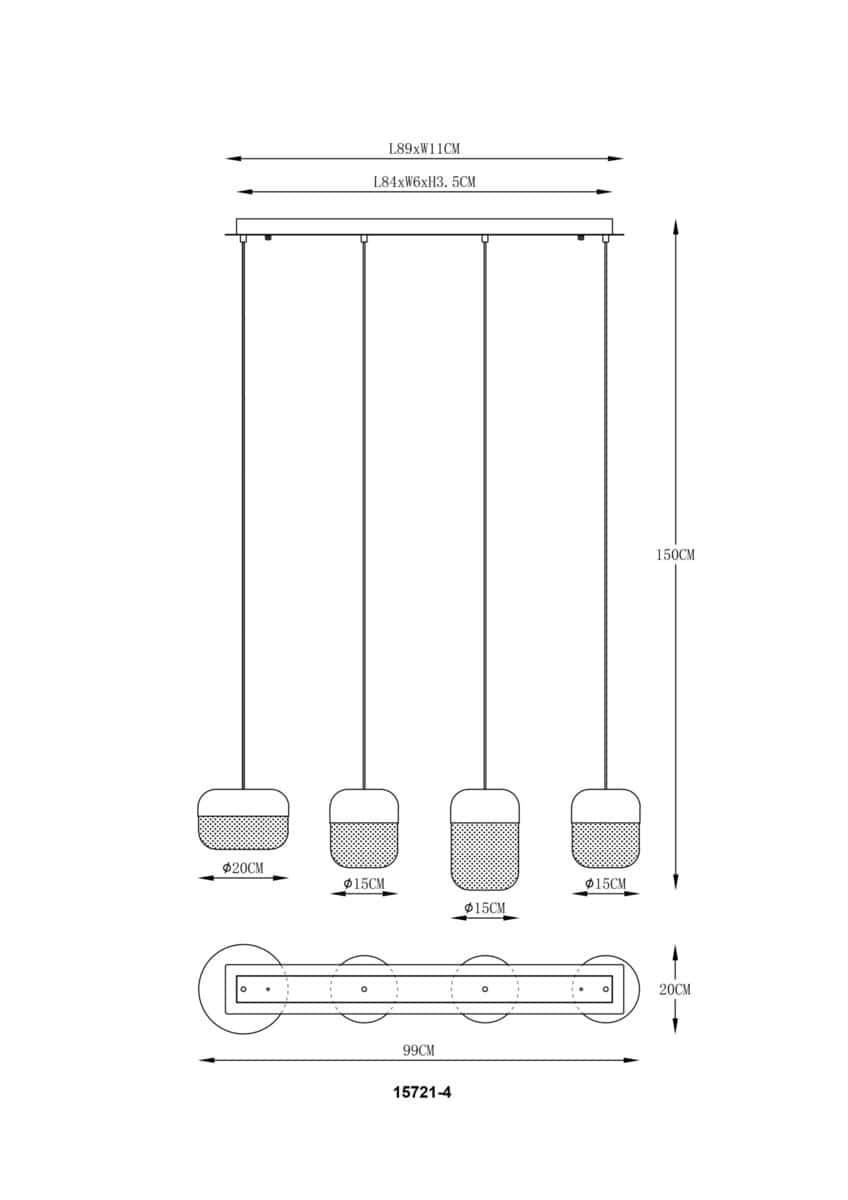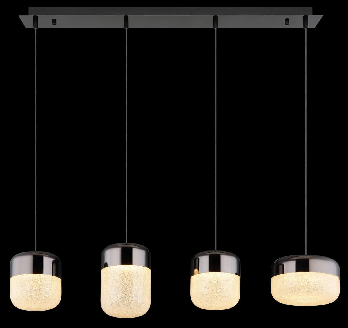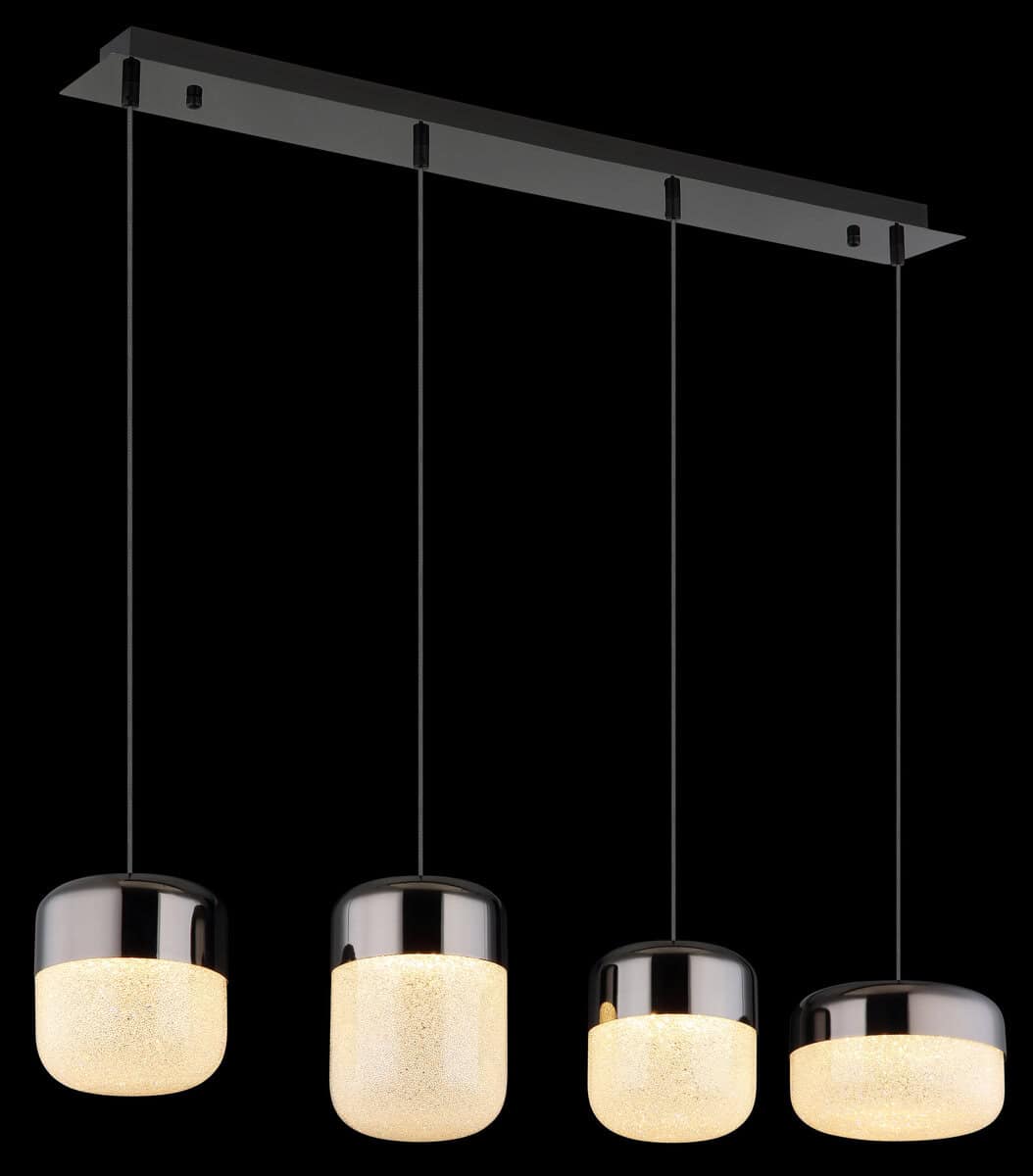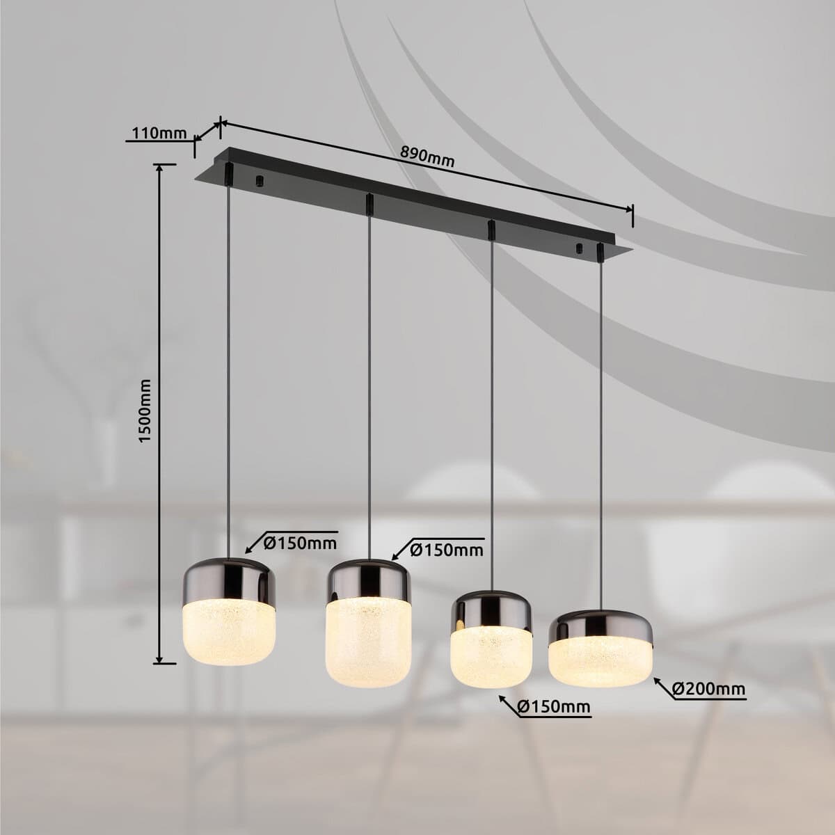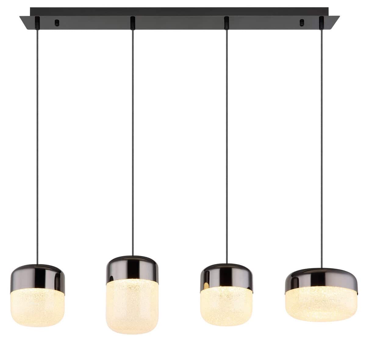 Izduženi visilica METAL DARK GREY s ravnom stazom i 4 bulbusa okrugla stakla moderan je i moderan izbor za svaku prostoriju. Tijelo izrađeno od mat grafitnog metala i prozirnog stakla i K9 kristalnih sjenila daju ovoj visećoj lampi elegantan izgled. Sa dužinom od 990 mm i širinom od 200 mm, nudi dovoljno svetla sa snagom od 40 W i izlaznom snagom od 2611 lumena sa prijatnom bojom svetla od 3000K. Idealna za trpezarijski sto, kuhinjsko ostrvo ili dnevni boravak, ova viseća lampa stvara ugodnu atmosferu. Moderan dizajn i visokokvalitetna izrada čine ih privlačnim za oko u svakoj prostoriji. Unesite moderan ambijent i ugodno svjetlo u svoj dom uz ovu viseću lampu.