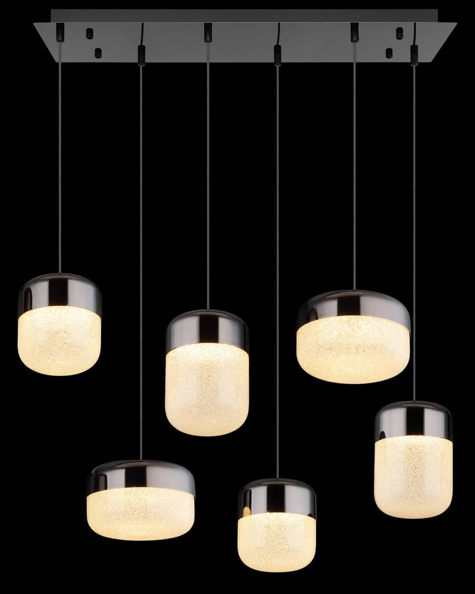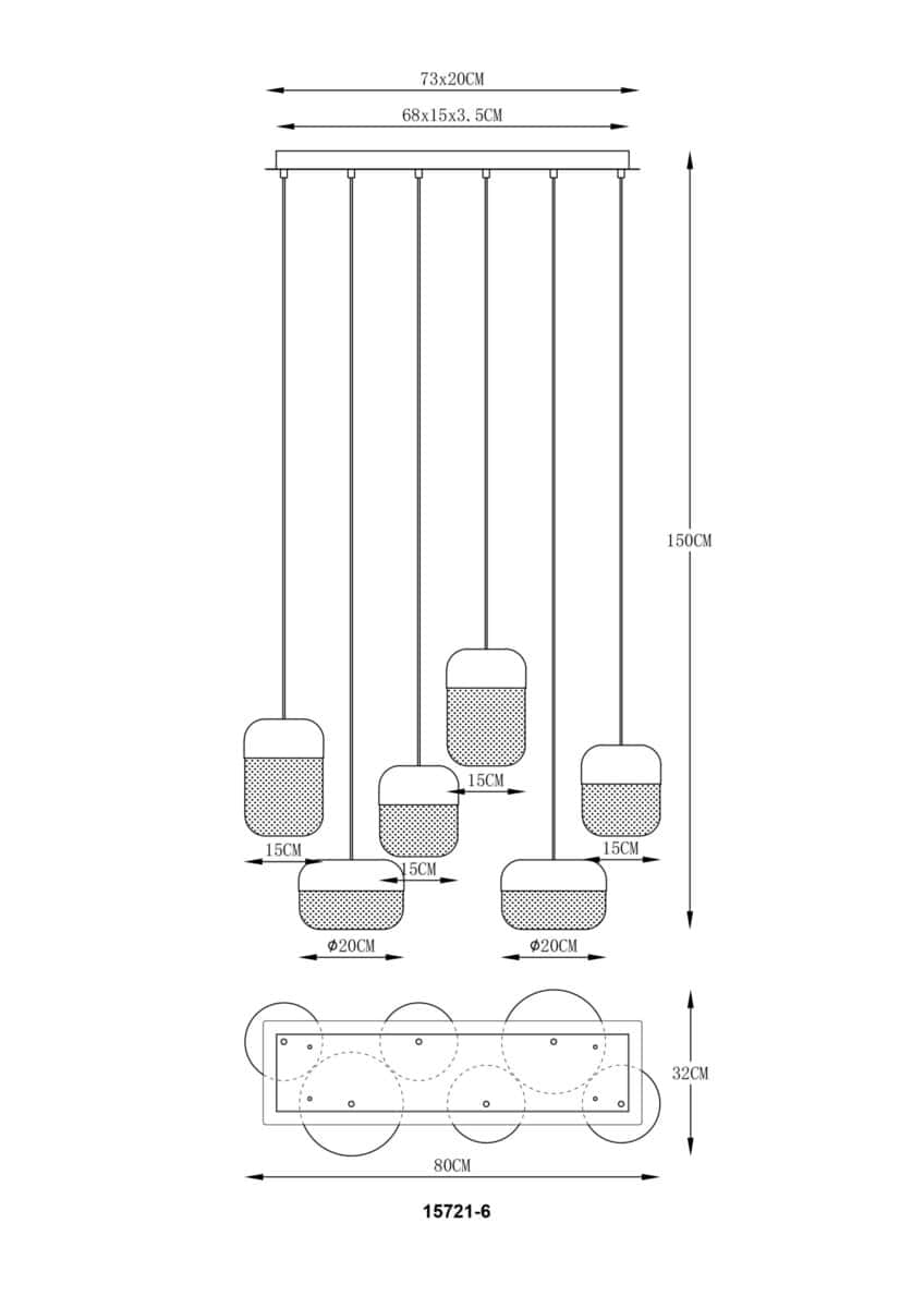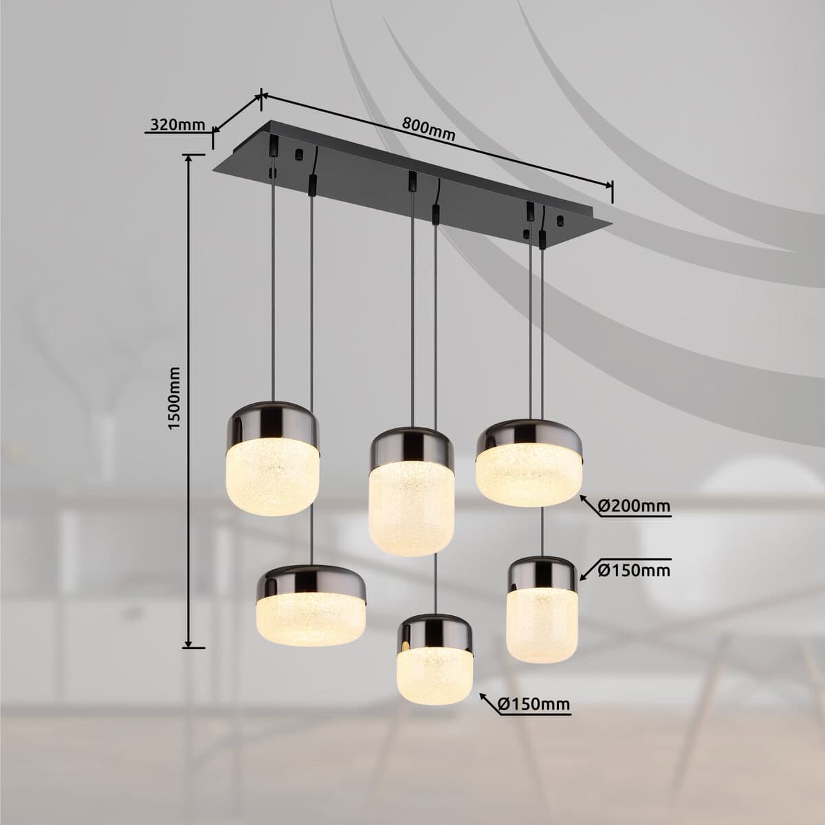 Pravougaona visilica METAL DARK GREY impresionira svojim oblikom sa 6 sijalica, okruglih stakla i šik je dodatak svakoj prostoriji. Kućište od mat grafitnog metala kao i prozirno staklo i K9 kristalne nijanse daju ovom modelu elegantan izgled. Sa dužinom od 800 mm i širinom od 320 mm, pruža izdašno osvetljenje sa snagom od 60 W i zračenjem od 3565 lumena sa prijatnom bojom svetla od 3000K. Ova viseća lampa je idealna za trpezarijski sto, kuhinjsko ostrvo ili dnevni boravak i stvara ugodnu atmosferu. Zahvaljujući modernom dizajnu i visokokvalitetnoj izradi, privući će oči u svakoj prostoriji. Uljepšajte svoj dom ovom elegantnom visećom lampom i uživajte u ugodnom svjetlu dopadljivog izgleda.