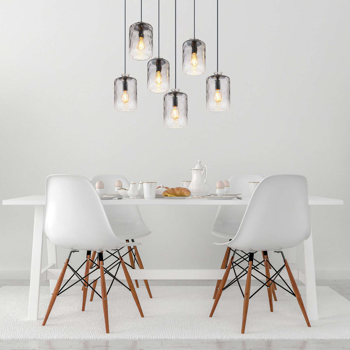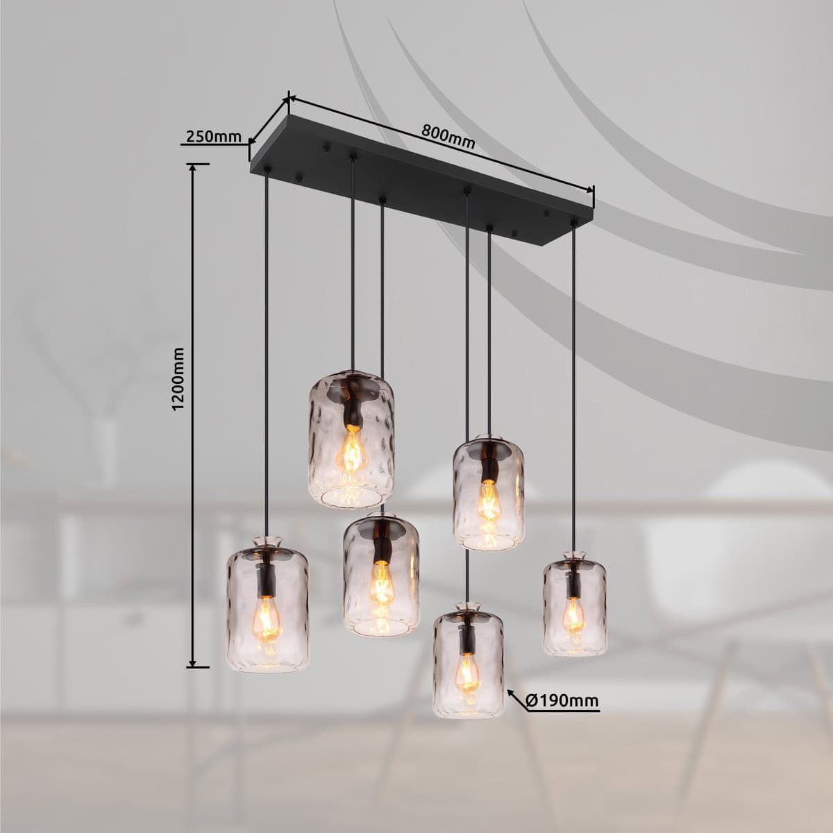 Lampa je izrađena od crnog mat metala i ima prozirno staklo u boji dima. Kabl je izrađen od crnog PVC-a i ima dužinu od 1500mm. Dimenzije visilice su 945x390x1500mm. Lampa se isporučuje bez sijalica, ali su joj potrebne 6x E27 60W 230V sijalice. Sa ovom visećom lampom možete kreirati elegantnu rasvjetu u svojoj sobi. Savršen je za upotrebu iznad trpezarijskog stola ili u dnevnoj sobi. Mat crna završna obrada daje lampi moderan i elegantan izgled. Staklo u boji dima osigurava ugodnu distribuciju svjetlosti i stvara ugodnu atmosferu. Naručite ovu visilicu sada i unesite moderan dizajn u svoj dom!