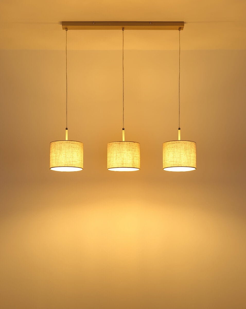 Izduženi visilica DELEON kombinuje klasičnu eleganciju sa suptilnim šarmom vikendice. Tri nijanse tkanine krem boje ravnomjerno su raspoređene duž ravne staze od mat metala boje pijeska, stvarajući skladnu, toplu svjetlosnu atmosferu. Kromirani metalni elementi dodaju elegantne akcente, ističući tradicionalni dizajn lampe. Sa dužinom od 900 mm i širinom od 200 mm, DELEON je idealan za trpezarijski deo, iznad kuhinjskog stola ili kao udoban fokus u dnevnoj sobi. Dizajniran za tri E27 sijalice (nisu uključene), omogućava vam da odaberete intenzitet svjetla kako bi savršeno odgovarao vašoj životnoj situaciji. Bilo da je rustikalan, klasičan ili moderan, DELEON se s lakoćom prilagođava i donosi auru dobrodošlice svakom prostoru. Bezvremenski rasvjetni komad za ljubitelje tradicionalnih oblika i prirodnih materijala.