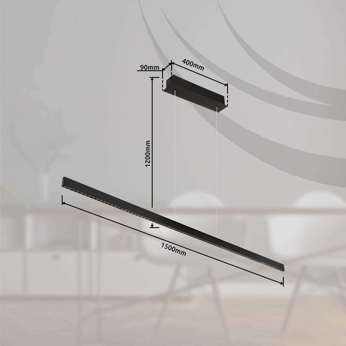 Doživite ovu visilicu i okupajte svoju sobu impresivnom svjetlošću. Mat crni lakirani metalni okvir u kombinaciji sa plemenitim mat crnim aluminijumom daje ovoj lampi moderan i istovremeno elegantan izgled. Sa praktičnim prekidačem za uključivanje/isključivanje na dodir i beskonačno promjenjivim prigušivačem na dodir, možete podesiti svjetlinu po svom ukusu. Funkcija memorije čuva vaše željene postavke za upotrebu bez napora. Zahvaljujući mogućnosti podešavanja visine (DxŠxV: 1500x90x1200mm), lampa se savršeno prilagođava vašim potrebama. Snažni LED (53W, 230V) proizvodi jako svjetlo sa intenzitetom svjetlosti od 655-6550lm izvora i 477-4770lm izlaza. Uz prijatnu temperaturu boje od 4000K, ova viseća lampa stvara toplu i ugodnu atmosferu. Dozvolite sebi da budete inspirisani lepotom i blistavom svetlošću ove viseće lampe i unesite dašak luksuza u svoju sobu.