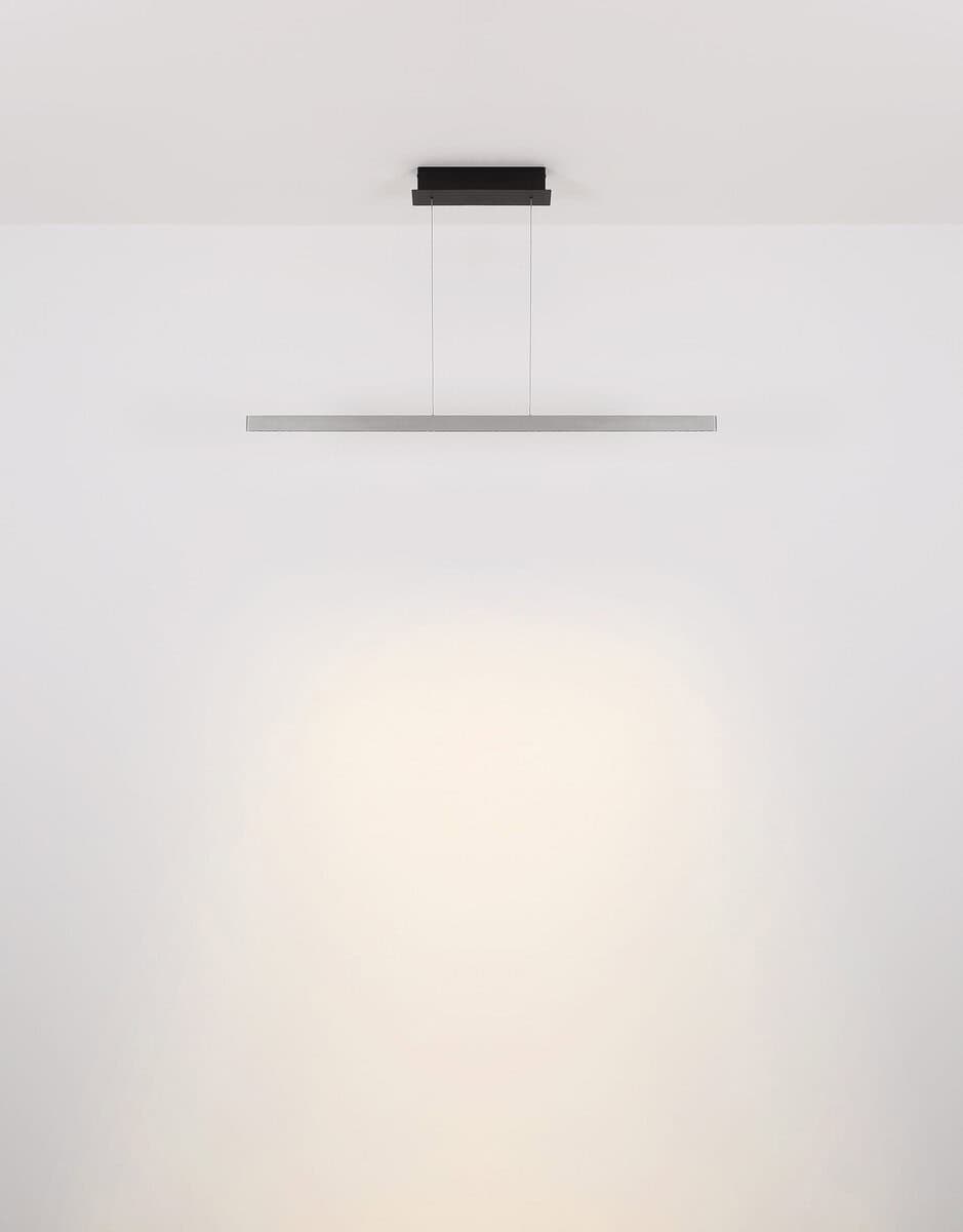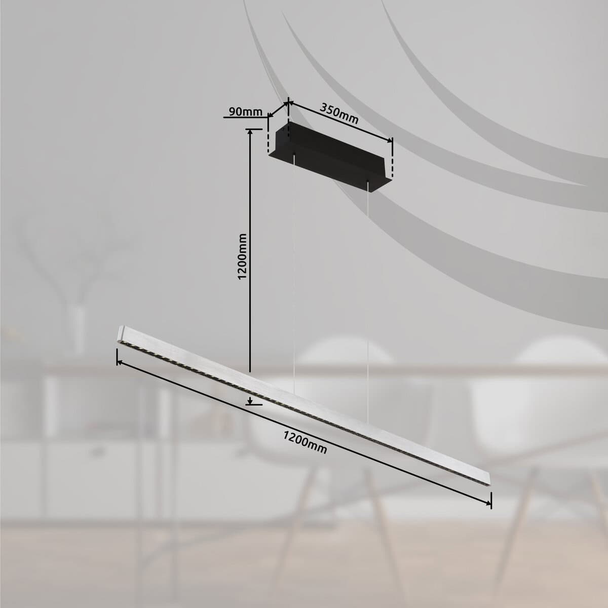 Otkrijte fascinantnu viseću lampu od mat crnog metala i brušenog aluminijuma. Ova svetiljka kombinuje moderan dizajn sa inovativnom funkcionalnošću. Pomoću praktičnog prekidača za uključivanje/isključivanje na dodir i beskonačno promjenjivog dimera na dodir, možete podesiti svjetlinu po svom ukusu. Funkcija memorije čuva vaše željene postavke za praktičnu upotrebu. Zahvaljujući mogućnosti podešavanja visine (DxŠxV: 1200x90x1200mm) lampu možete savršeno prilagoditi svojim potrebama. Snažni LED (43W, 230V) proizvodi jako svjetlo sa intenzitetom svjetlosti od 525-5250lm izvora i 387-3870lm izlaza. Uz prijatnu temperaturu boje od 4000K, ova viseća lampa stvara toplu i ugodnu atmosferu. Dajte izjavu u svojoj sobi sa ovom impresivnom visećom lampom.