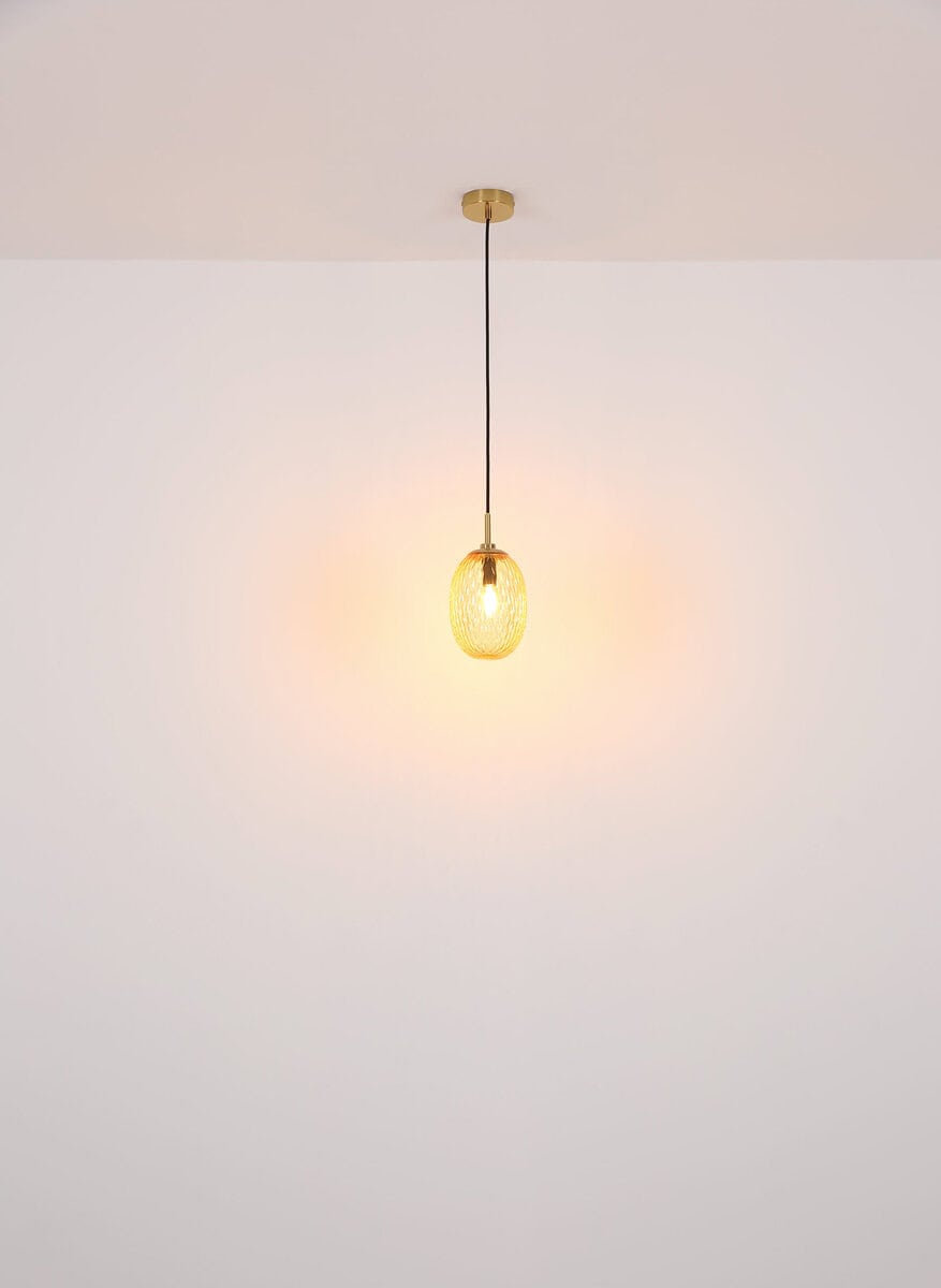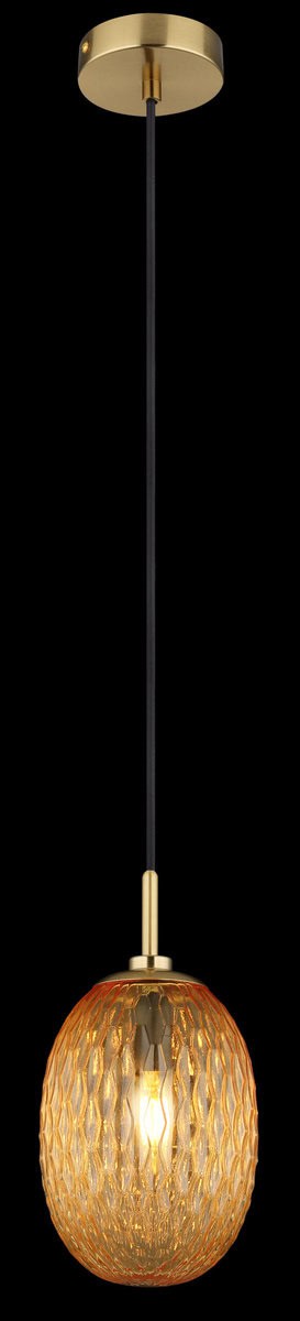 Viseća lampa DEVIN predstavljena je u okruglom obliku sa lukovičastim staklom koje nosi elegantan dekorativni ukras. Mat metalno kućište zlatne boje daje mu sofisticiran izgled, dok je staklena nijansa završena u toplom jantarnom tonu. Ova viseća lampa je idealna za sobe kojima je potrebno udobno, ali moderno osvetljenje. DEVIN pripada kategoriji visilica i svojim dizajnom nudi uspješnu kombinaciju modernog stila i bezvremenske elegancije. Pogodan je i za privatni život i za komercijalna okruženja kao što su restorani ili barovi. Viseća lampa je jednostavna za ugradnju i omogućava vam da obogatite svoj dizajn enterijera svojim toplim svetlom i privlačnim dizajnom.