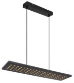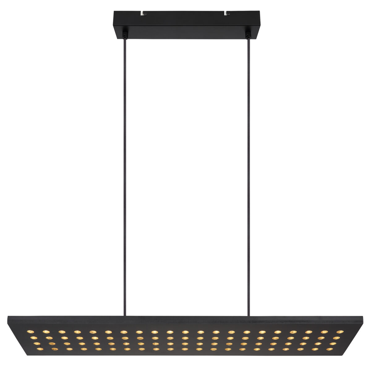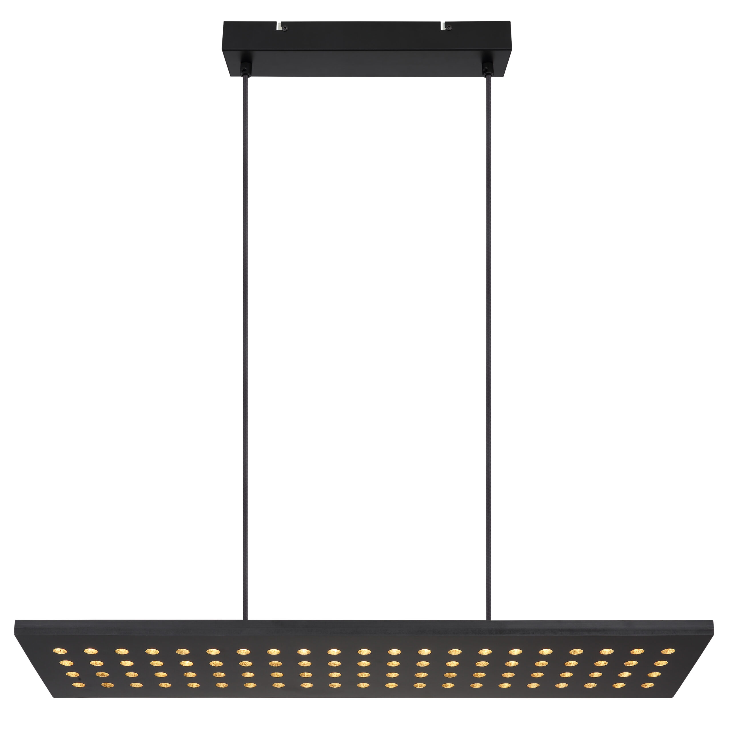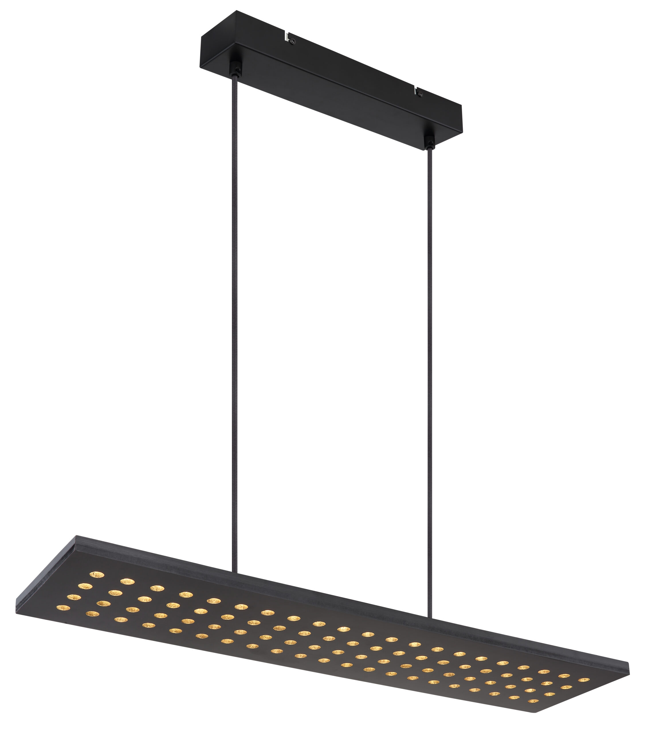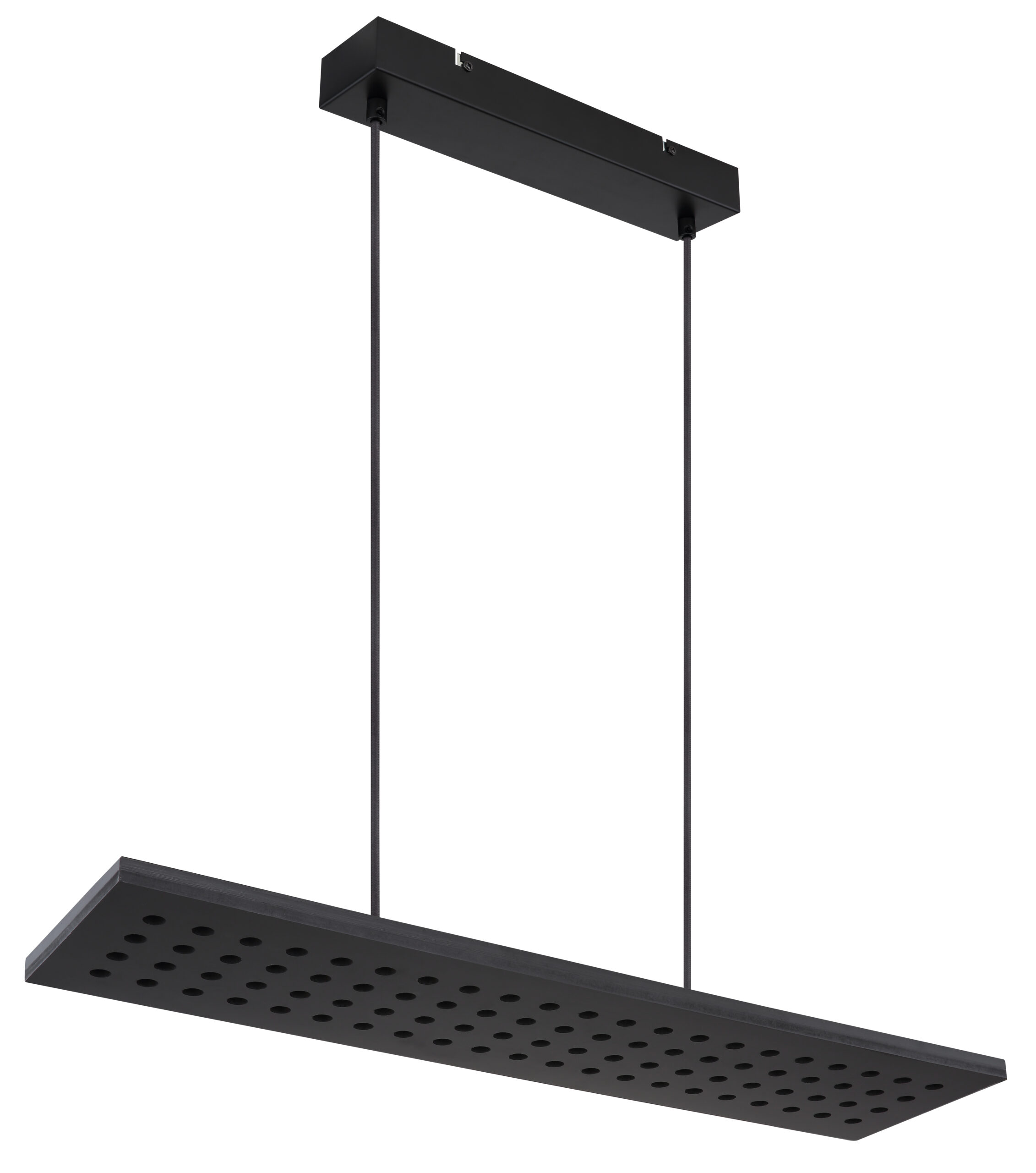 Ova viseća lampa iz serije Dolores (80×20 cm) je prekrasan dodatak vašem interijeru. Sastoji se od crne drvene ploče, koja visi na dva kabla širine do 120 cm od plafona i opremljena je brojnim okruglim probojima. Zahvaljujući tome, uključene LED sijalice daju 2000 lumena jakog svetla sa prijatnom bojom svetla od 3000 Kelvina (toplo belo). Sa više članaka iz iste serije, ukupna slika u vaša četiri zida može biti upotpunjena.