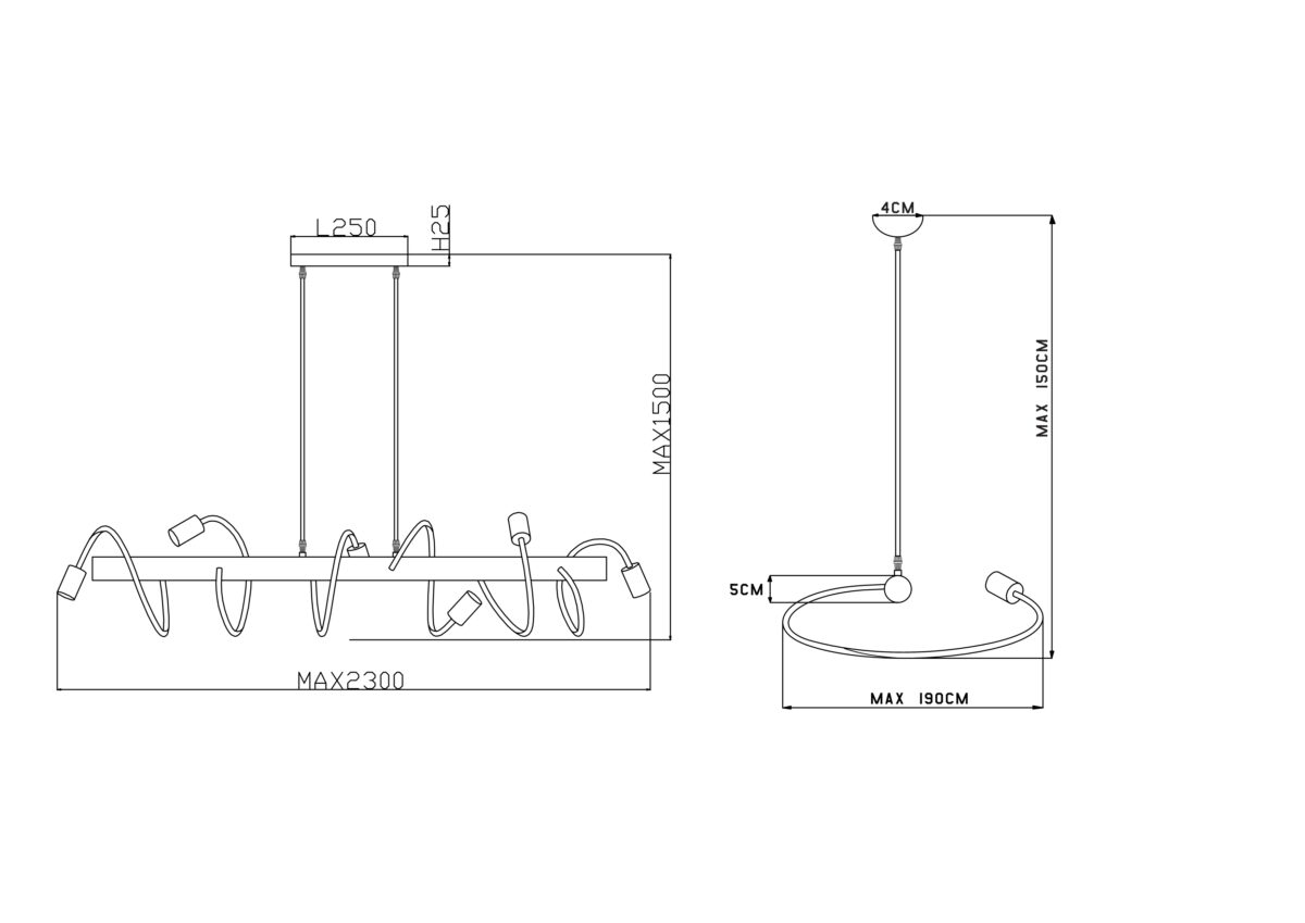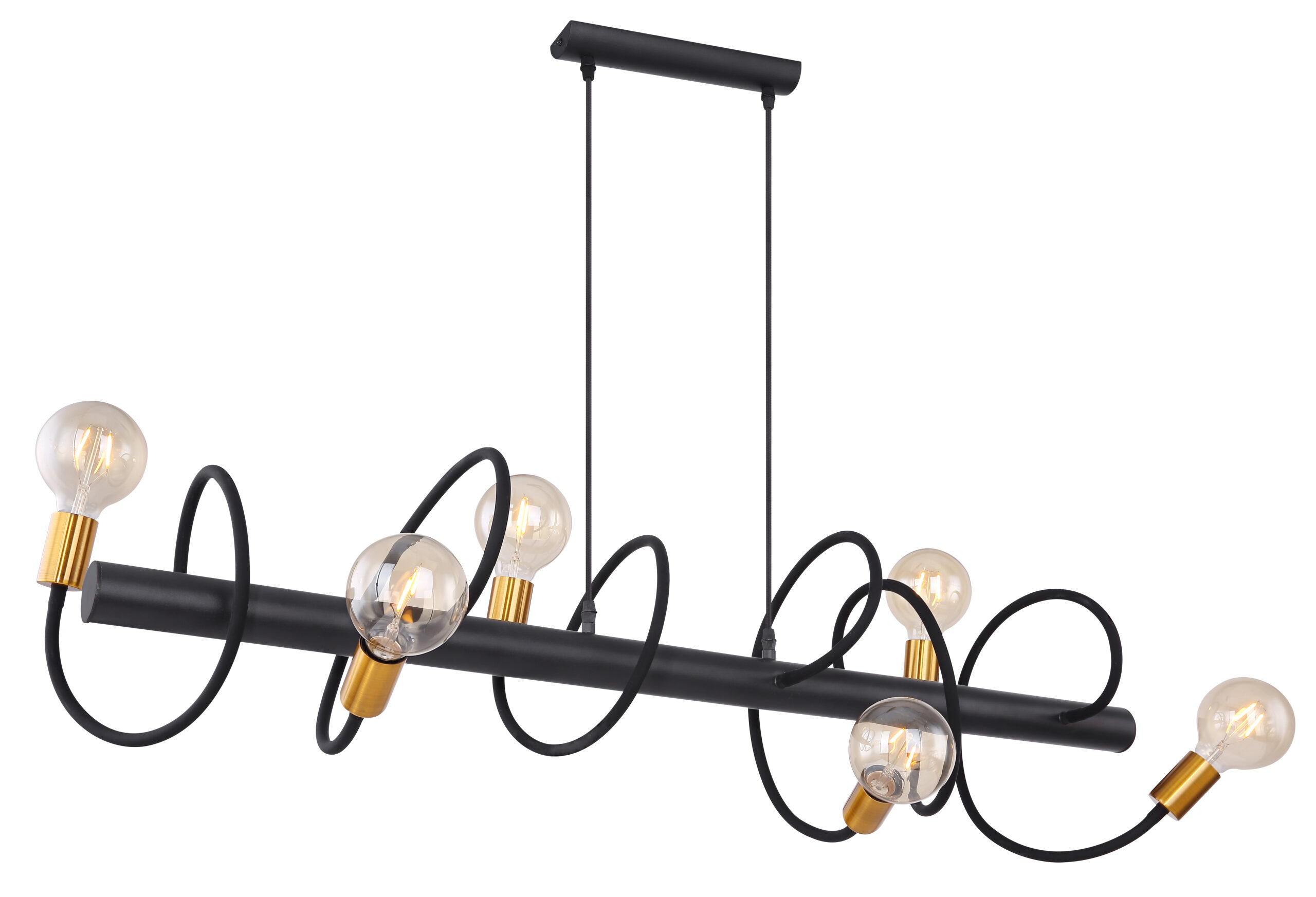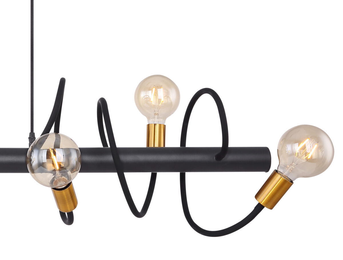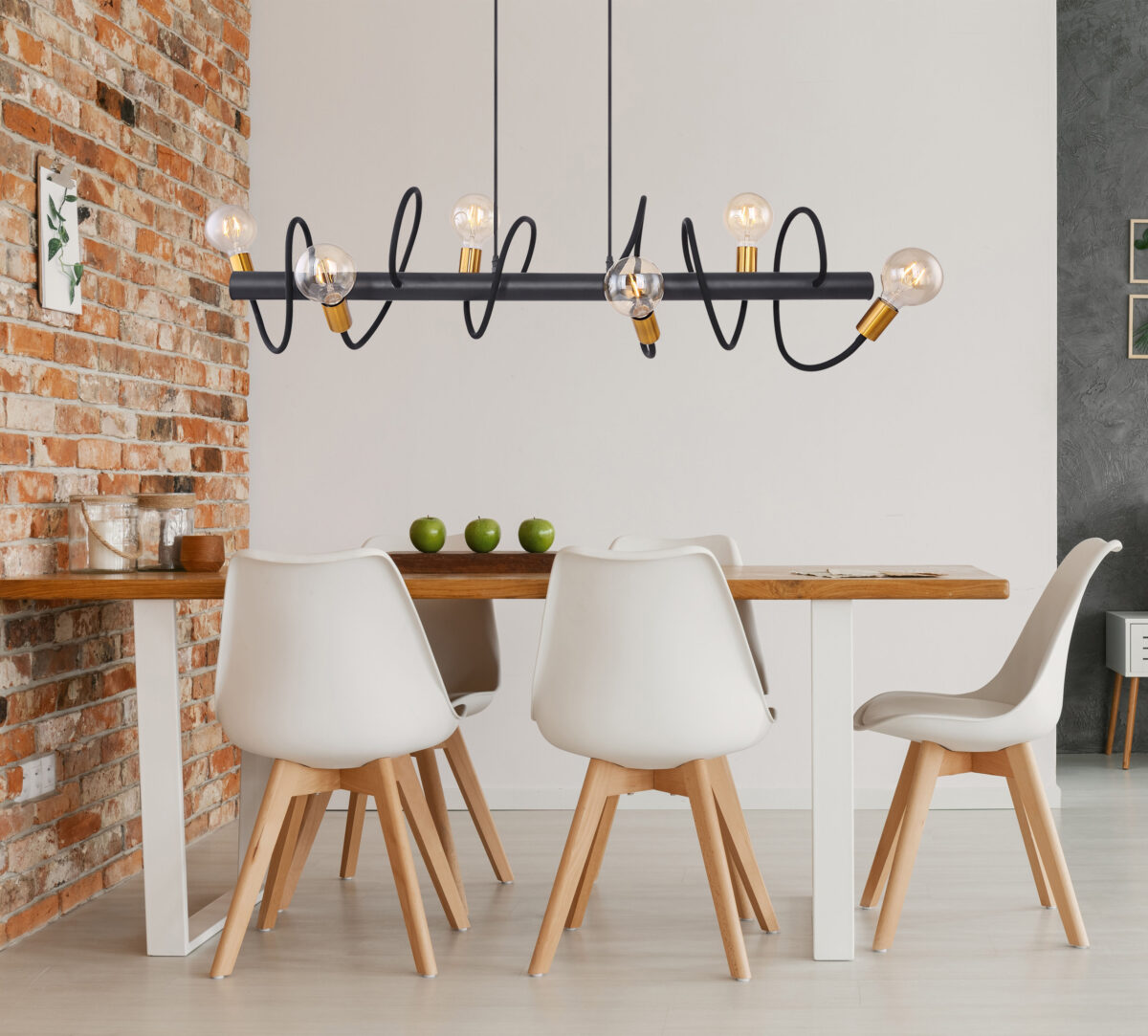 Viseća lampa EDDY ističe se svojim starinskim i istovremeno jednostavnim dizajnom. Kombinacija materijala crnog i zlatnog metala daje ovoj stolnoj lampi tipičan starinski stil. Na dvije viseće, crne tekstilne sajle nalazi se šina sa koje se šest flekso krakova koji se nalaze na njoj mogu pojedinačno podesiti. E27 grla koja se nalaze na njemu omogućavaju slobodan izbor sijalica do 60 vati. Sa ostalim modelima ove serije možete dodatno uljepšati životni prostor.