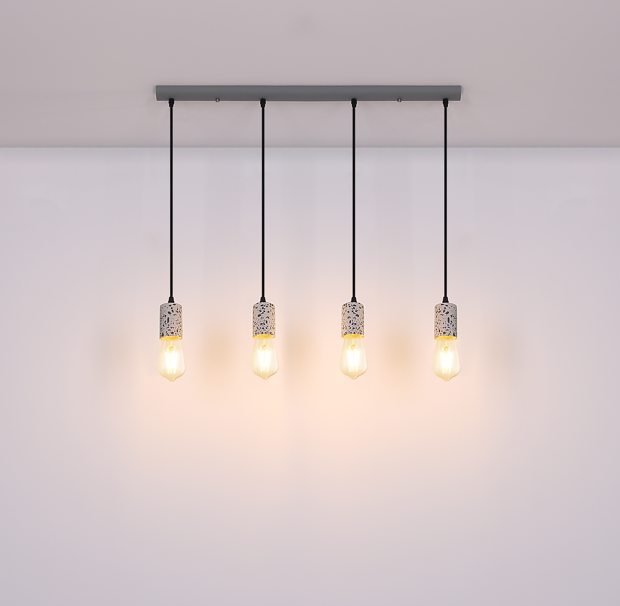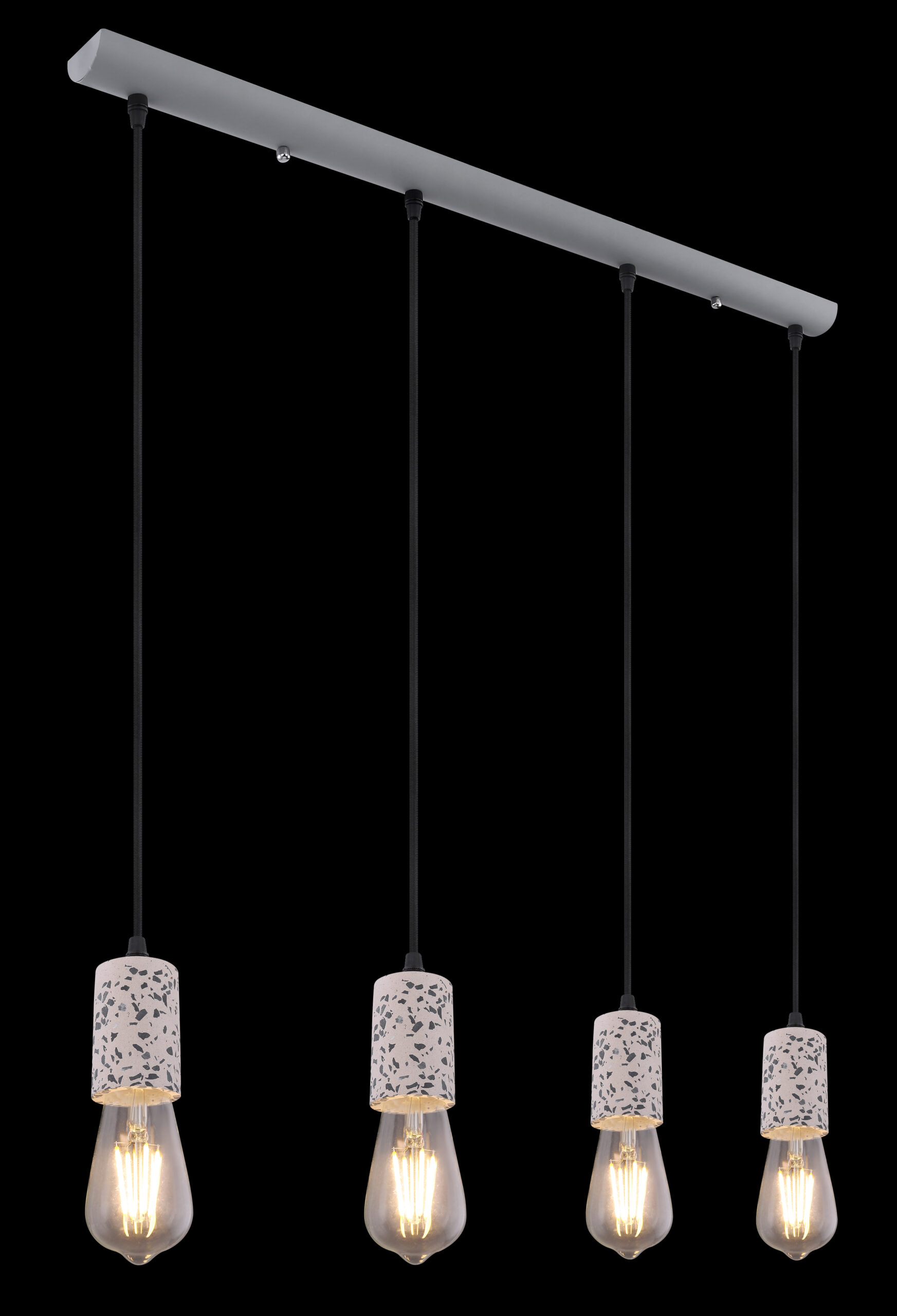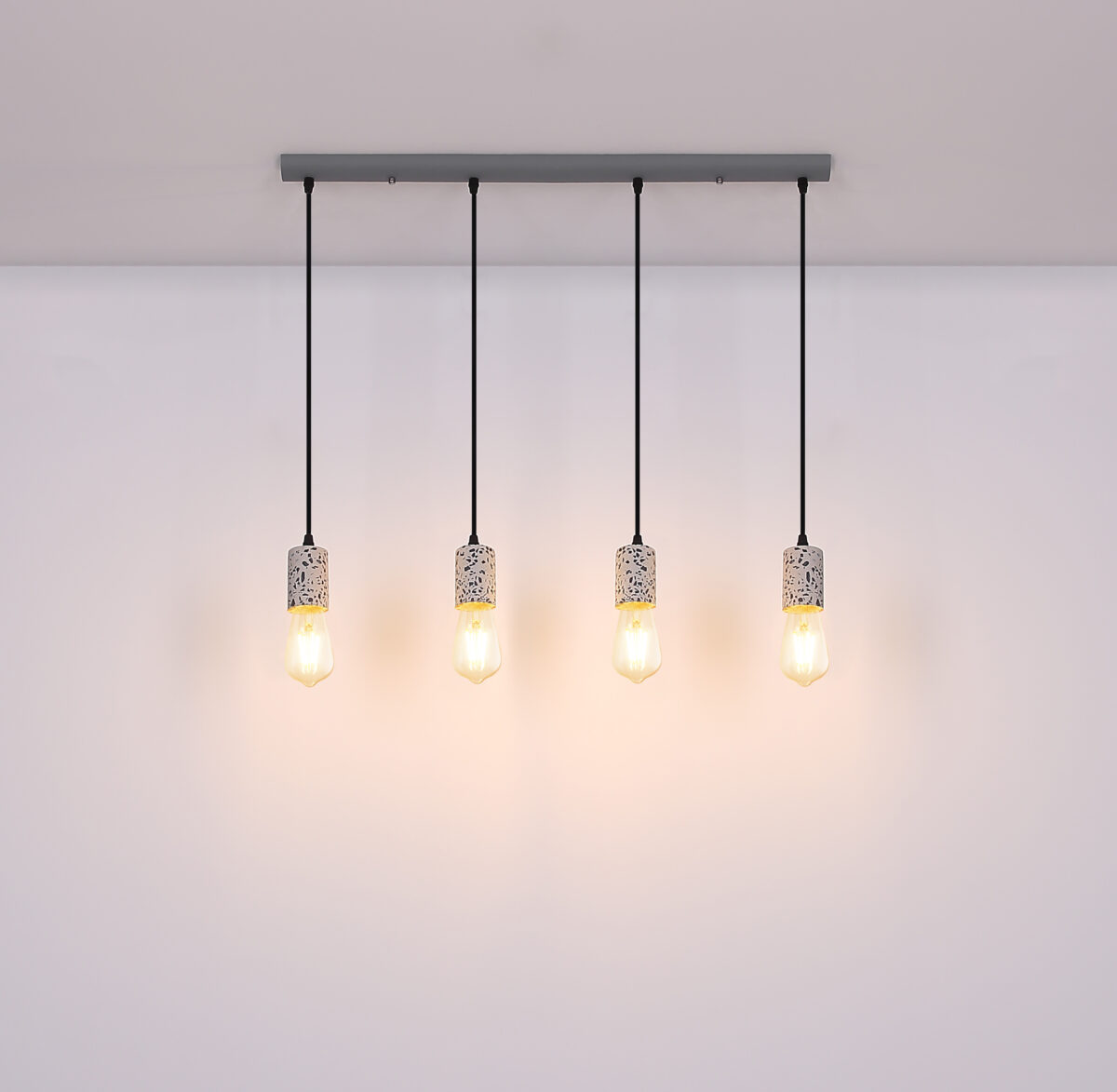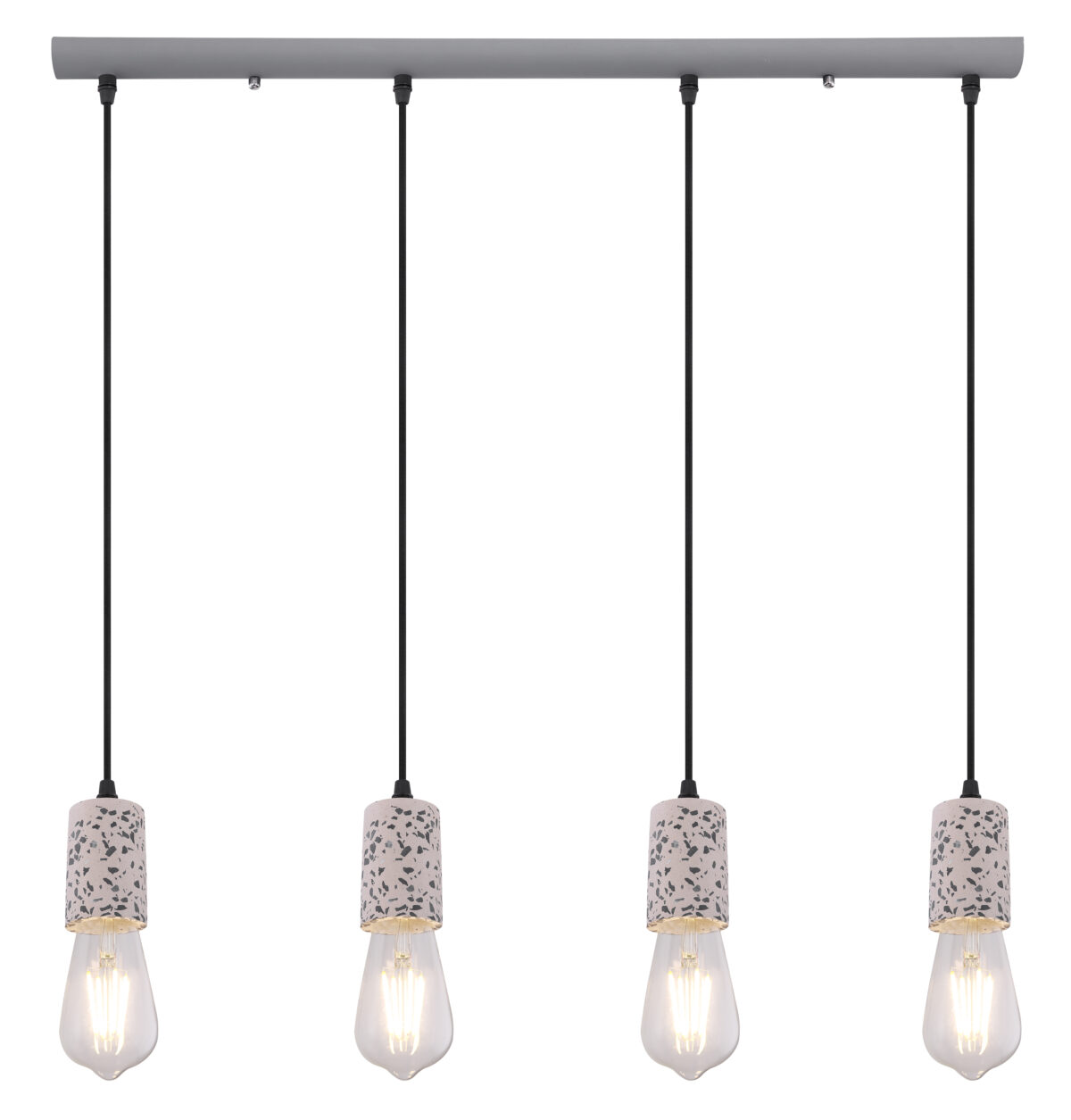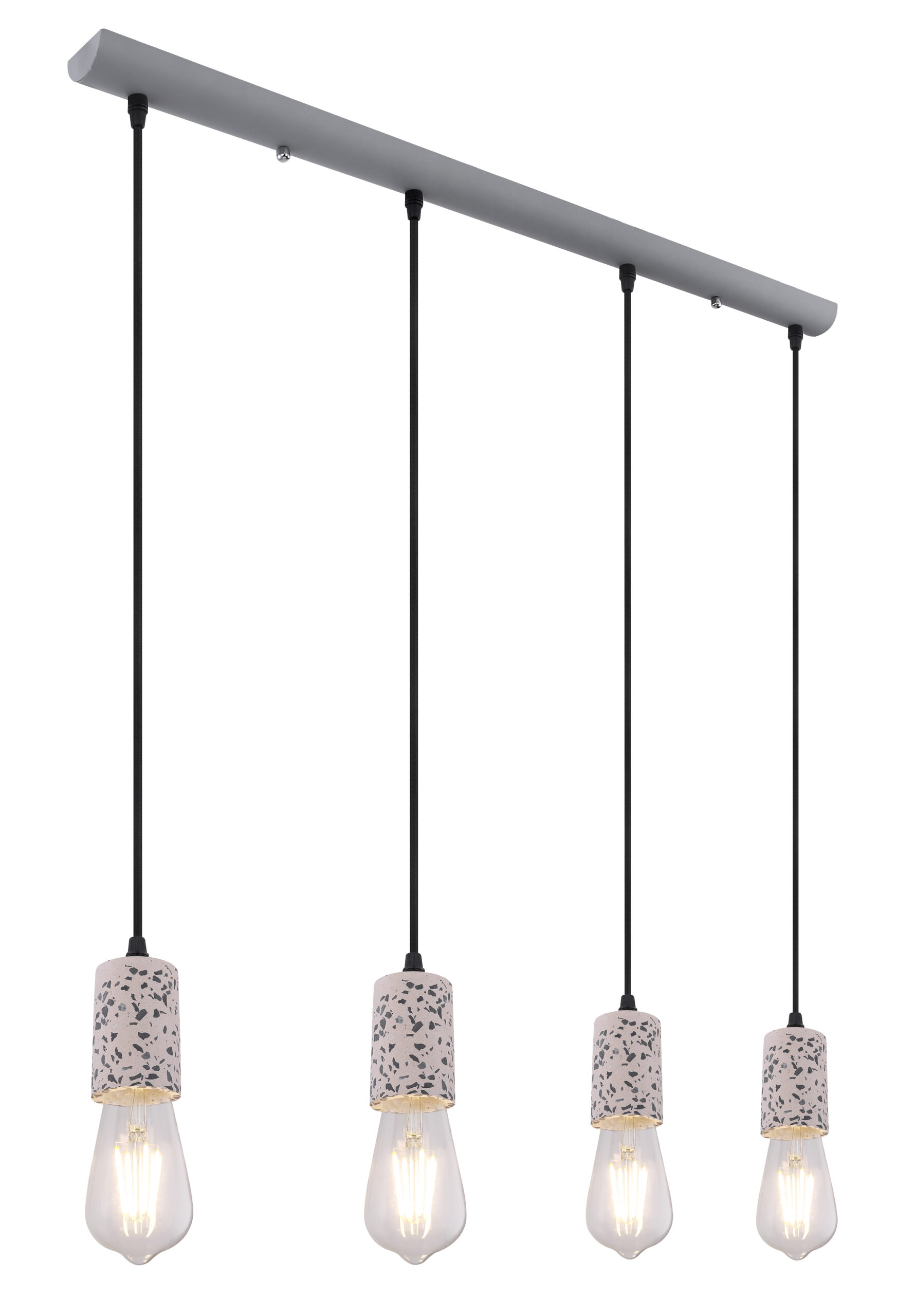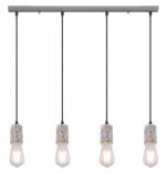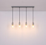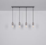 Viseća lampa sa četiri plamena pokazuje se u ekskluzivnom dizajnu. Četiri okvira sa teraco kamenim kaputom vise na četiri vješalice. Ravna, siva metalna šina na plafonu pruža sveobuhvatnu ukupnu sliku. Ova lampa dužine 80 cm osvjetljava prostor vaše blagovaonice i viri 120 cm u prostoriju. Zbog slobodnog izbora sijalica (4x E27 / max. 40W) možete sami odrediti intenzitet svjetlosti i boju svjetla ove unutrašnje lampe. Zbog dugotrajnosti i uštede energije preporučujemo LED sijalice. Ostali modeli ove serije vam omogućavaju da dodatno uljepšate svoj životni prostor.