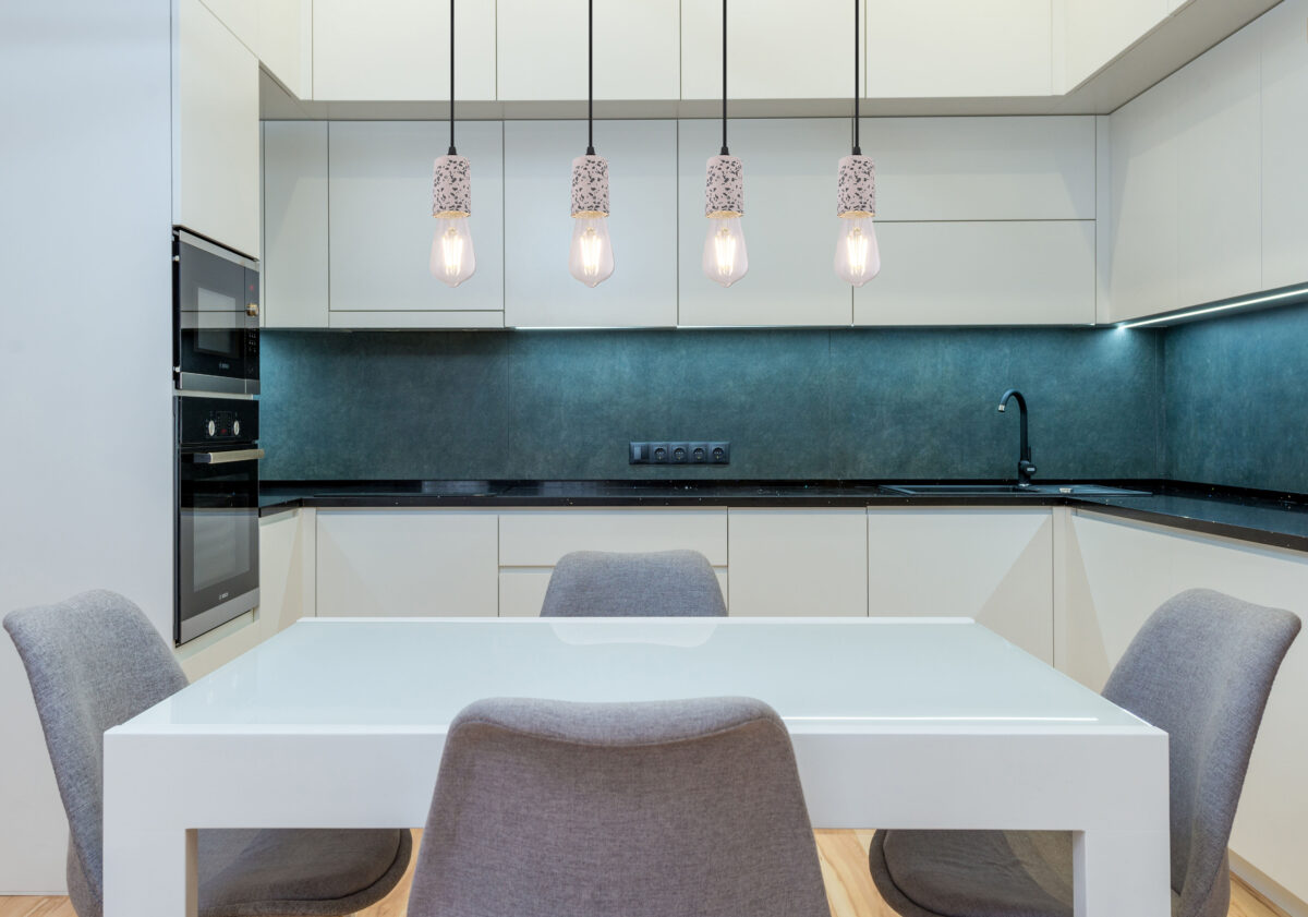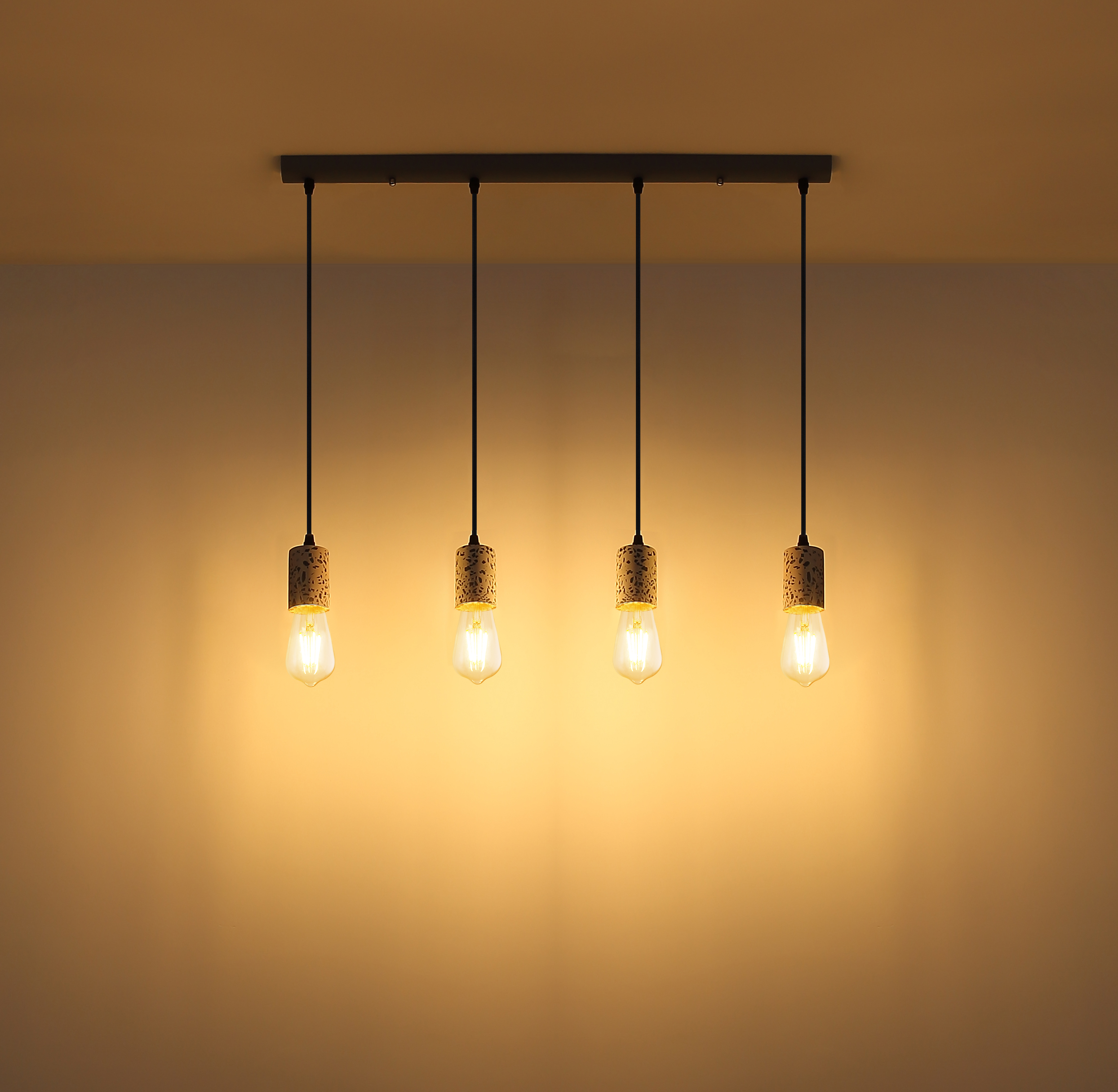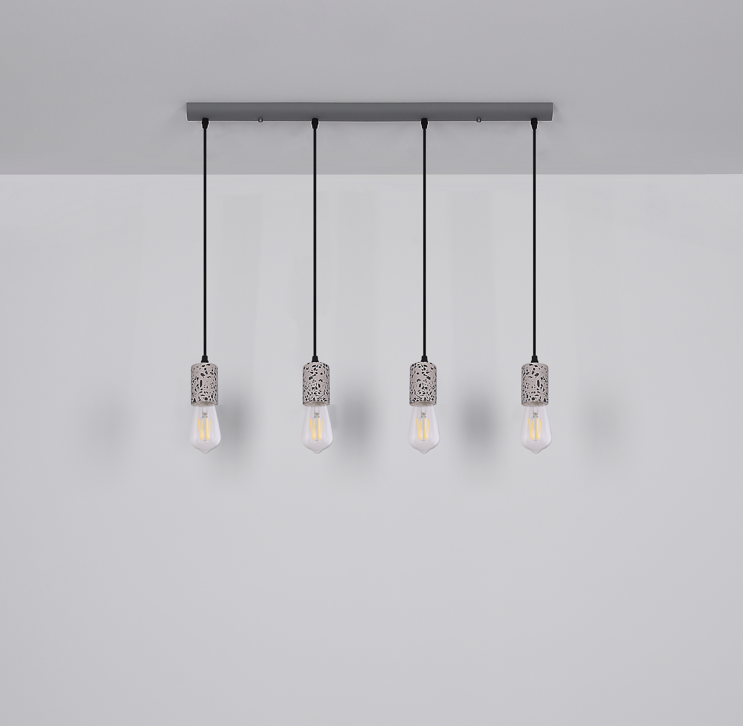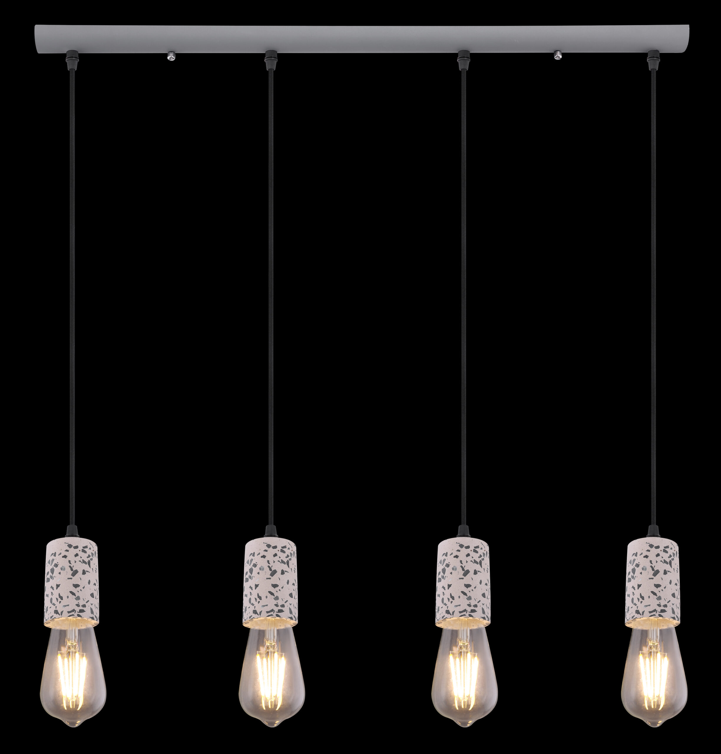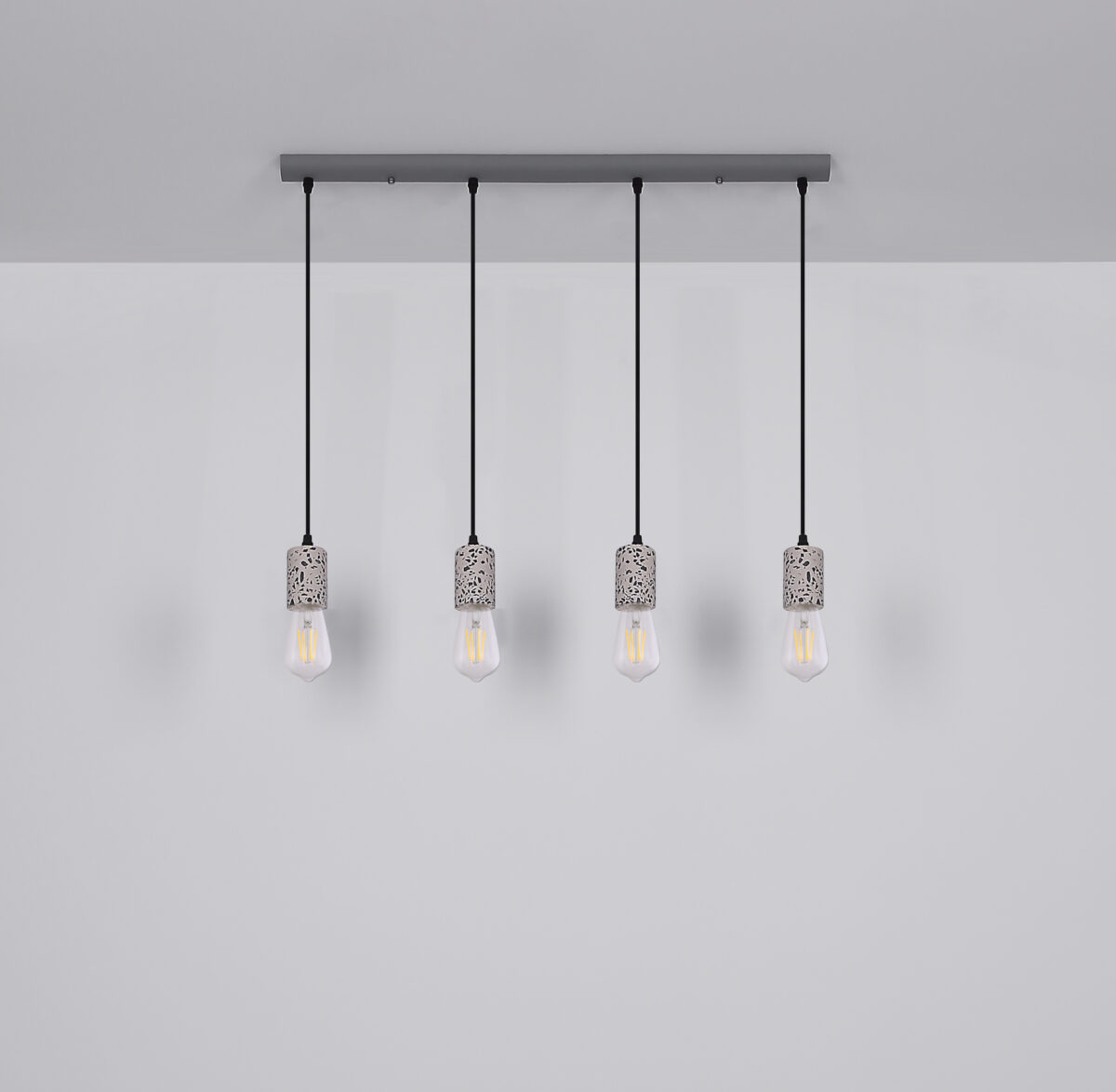 Viseća lampa sa četiri plamena pokazuje se u ekskluzivnom dizajnu. Četiri okvira sa teraco kamenim kaputom vise na četiri vješalice. Ravna, siva metalna šina na plafonu pruža sveobuhvatnu ukupnu sliku. Ova lampa dužine 80 cm osvjetljava prostor vaše blagovaonice i viri 120 cm u prostoriju. Zbog slobodnog izbora sijalica (4x E27 / max. 40W) možete sami odrediti intenzitet svjetlosti i boju svjetla ove unutrašnje lampe. Zbog dugotrajnosti i uštede energije preporučujemo LED sijalice. Ostali modeli ove serije vam omogućavaju da dodatno uljepšate svoj životni prostor.