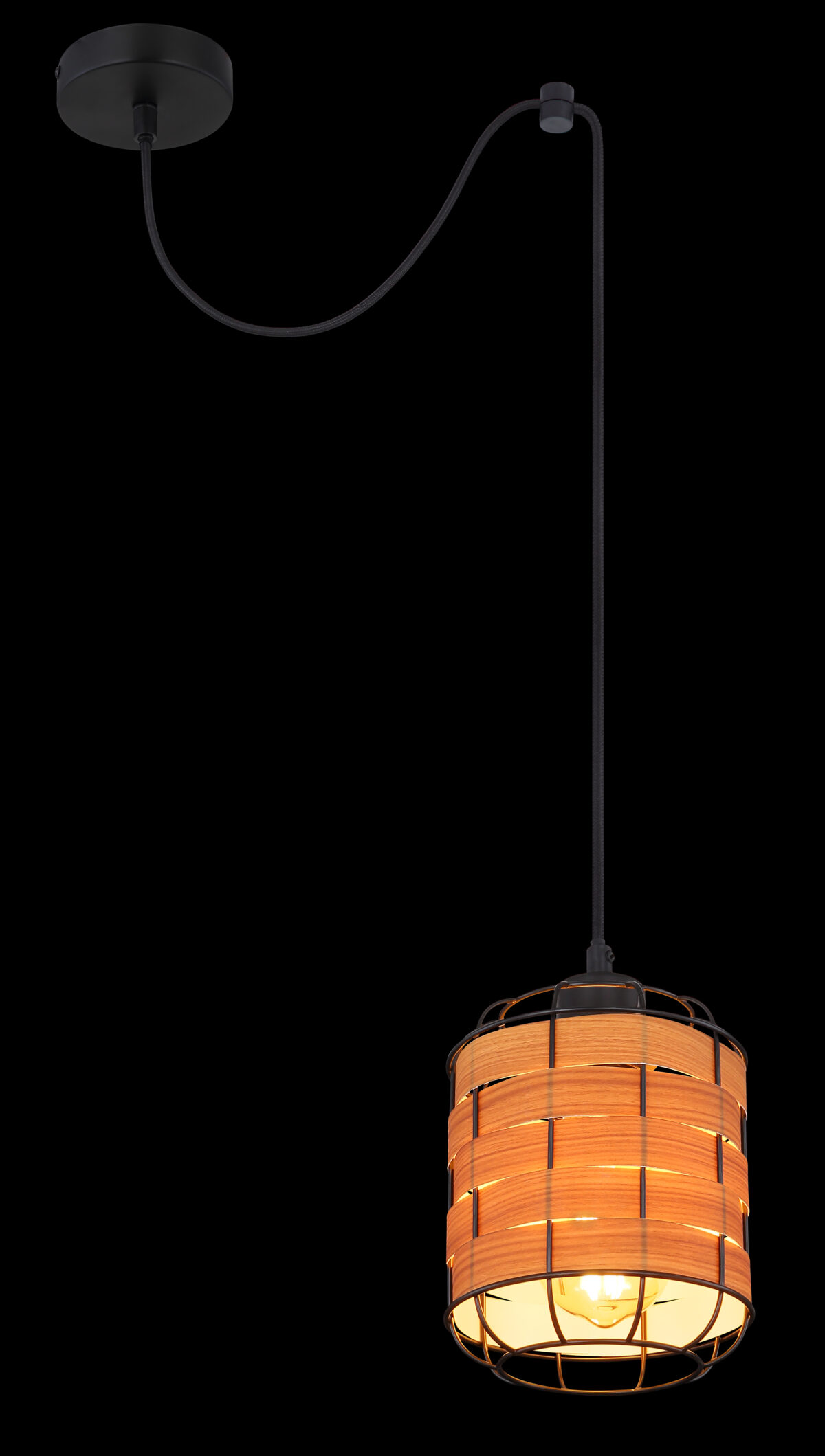 Ova sjajna viseća lampa iz Elmar serije inspiriše svojim prekrasnim dizajnom i postaje centar vaše sobe. Iz crnog mat tekstilnog kabla podesivog po visini maksimalne dužine 2m viri grlo E27 koje se može opremiti sijalicom po vašem izboru, do maksimalne snage 40W. Utičnica E27 prekrivena je oblikovanim okruglim metalnim kavezom s plastičnim umetcima i na taj način daje svjetiljci pravi dodir.
