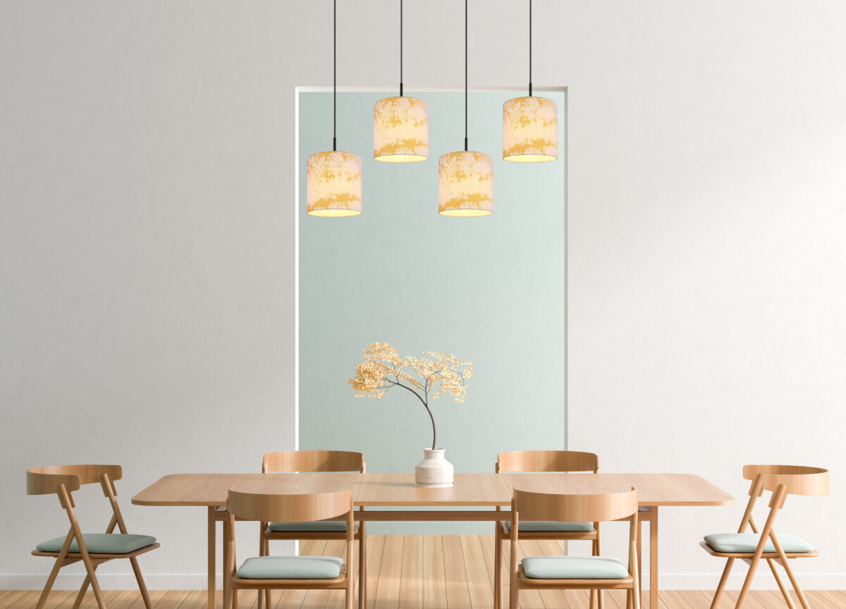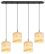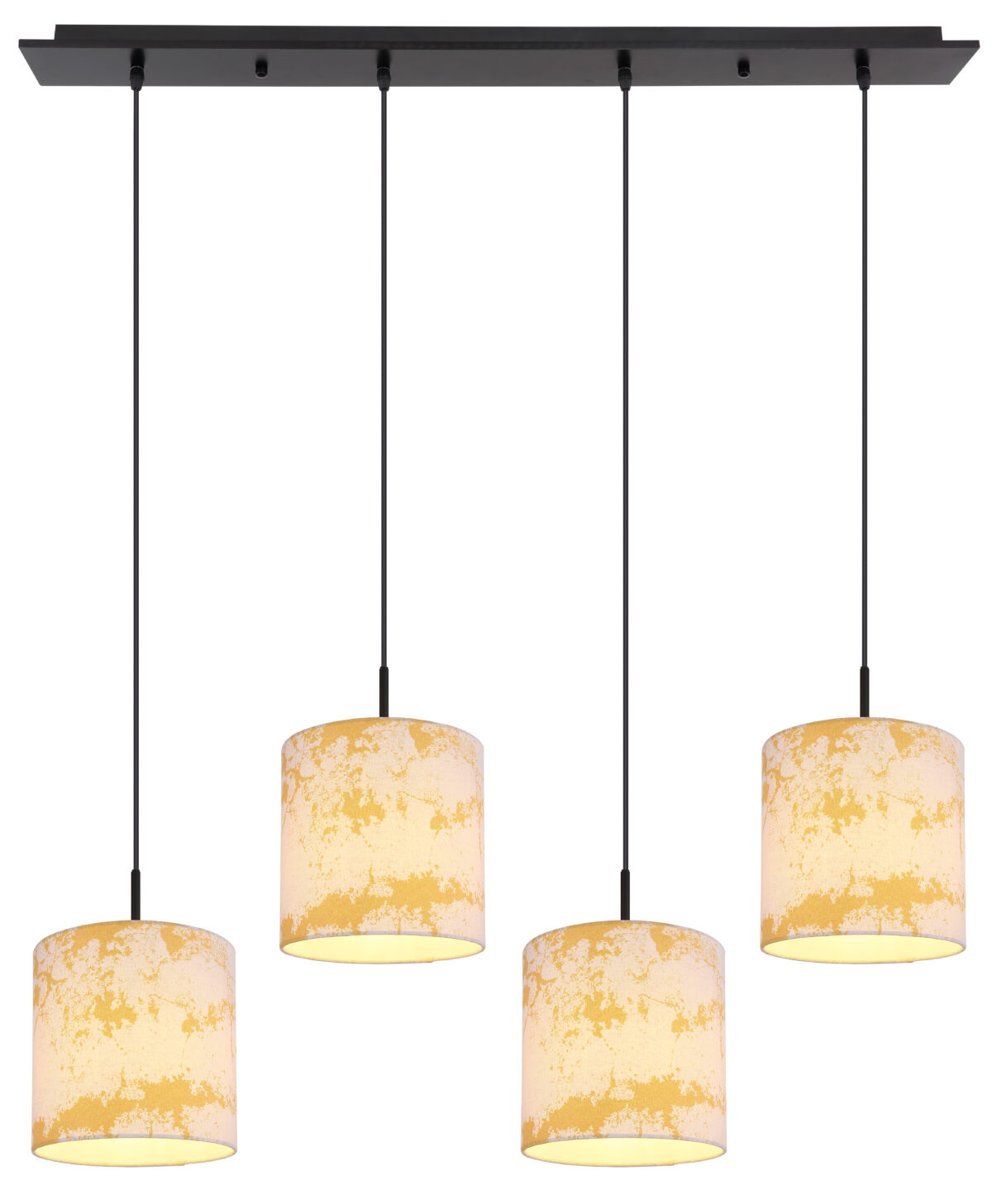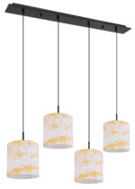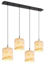 Ova atraktivna visilica iz Engelbert serije ima maksimalnu visinu od 150 cm i postaje centar vaše sobe zahvaljujući svojim prekrasnim tekstilnim bojama s uzorcima. Na šinu dužine 100 cm okačite četiri kabla različitih dužina sa E27 grlom koji vam omogućava da koristite sijalicu po vašem izboru koja vam omogućava da individualno odaberete osvetljenost i boju svetla.