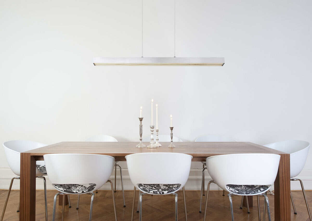 Uz modernu viseću lampu od brušenog aluminija i opal plastike, možete unijeti elegantan dizajn u svoj dom. Svjetiljka ima beskonačni dimer na dodir koji vam omogućava individualno podešavanje svjetline. Boje se mogu popraviti, a memorijska funkcija čuva željene postavke. Visina lampe je podesiva po visini i dužini i može se podesiti od 95 do 150 cm dužine i od 80 do 150 cm visine. Sa veličinom od 1500x75x1500mm, lampa se savršeno uklapa u svaku prostoriju. Uključuje LED sijalice sa 39W, 4000lm izvorom i 2800lm izlazom, kao i podesivom bojom svjetla od 2700-6000K. Naručite ovu svestranu viseću lampu danas i dodajte moderan i stilski štih svom domu.